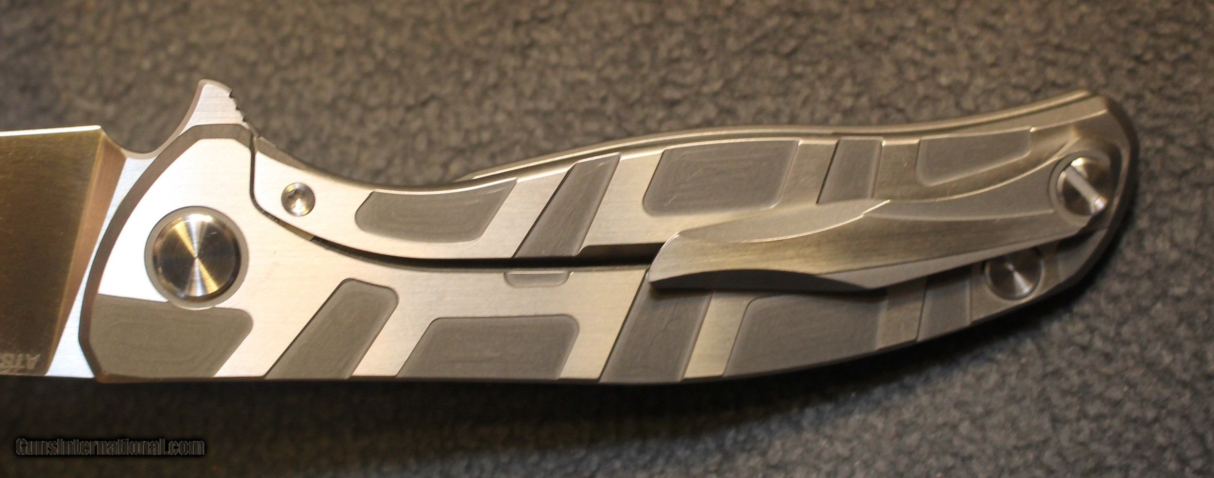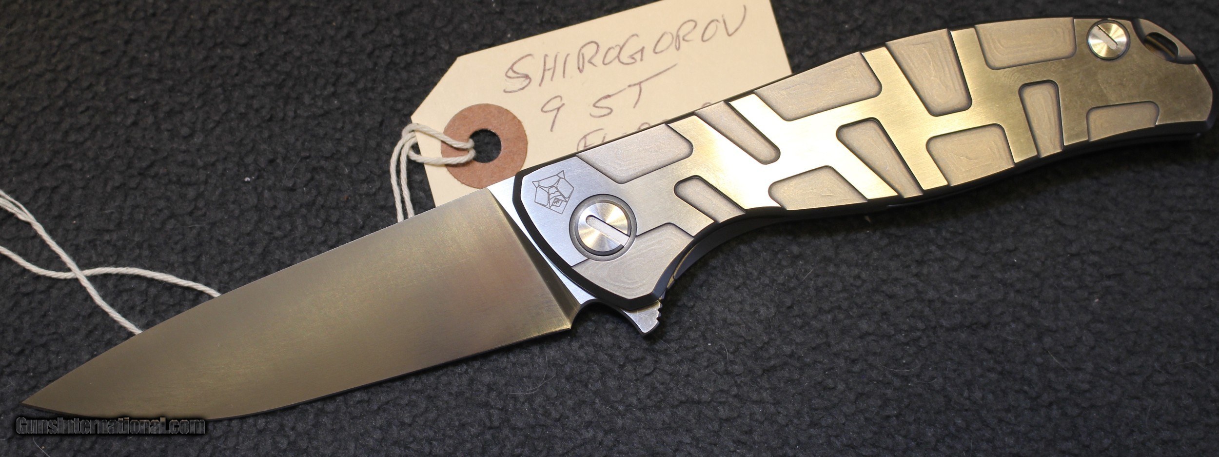 Description: Shirogorov F95T Custom Flipper Knife There is only the knife. Nothing else. Copied from a similar listing describing the knife from Arizona Custom Knives............................... Model F95 T by Shirogorov Overview This Model 95 framelock flipper from Shirogorov has a flat ground and tumbled blade with a milled and tumbled titanium frame with matching tip up clip. Excellent lockup, crisp detent, and perfect seating. Product Details Blade Length 3.875 Overall Length 8.75 Closed Length 5 Weight (oz) 4.6 Source Previously owned Additional Specs Knife Type Tip Up Carry, Tip Up Clip Blade Material M390 Blade Details Drop Point Handle Material Metallic Other Details Tactical End of copy from the original listing on this knife............ NOTE: Look close at the pictures as the item you see is the one you get. As is means AS IS so There is NO, Refund. This came from the estate of an FFL/SOT Gun Smith, Gun Store that is out of business. The estate was an avid collector. This is from the collection or was inventory of 100 plus straight and folders. There will be countless other listings from this inventory and other inventories. We are selling for the estate/store. This is NOT a liquidation. There are no lists and will be no lists. Please check our other listings for more items Please also check our Webpage and or Facebook page at P&T Partners Shipping is included. Shipping is NOT FREE. Just included for Priority Mail, Full Insurance and a Signature at the receiving end. You can let me know if NO signature due to your work schedule. Credit in any form, shape or manner add 3.5% and credit by PHONE only. Personal checks accepted, we do not hold until clear for parts. Postal Money orders also accepted. If you are in Texas and purchasing from Texas you are subject to Texas State Sales Tax For those that are local, there is no Face To Face. On Line means On Line. Again if you are Local there is NO local pick up. We ship only SOLD |
