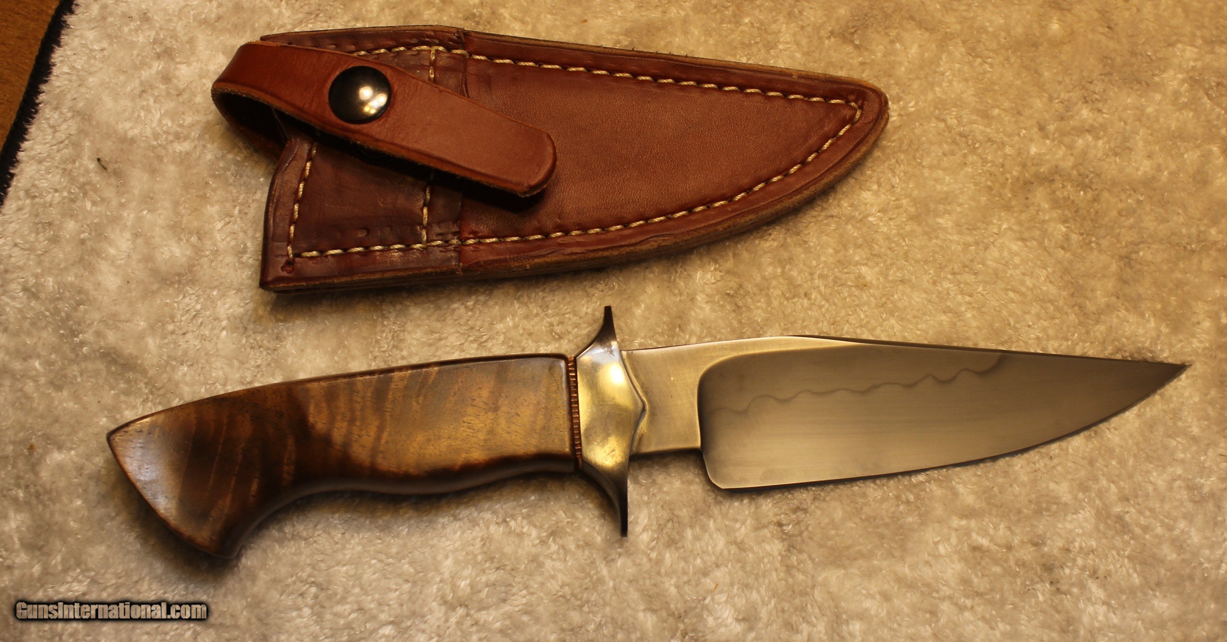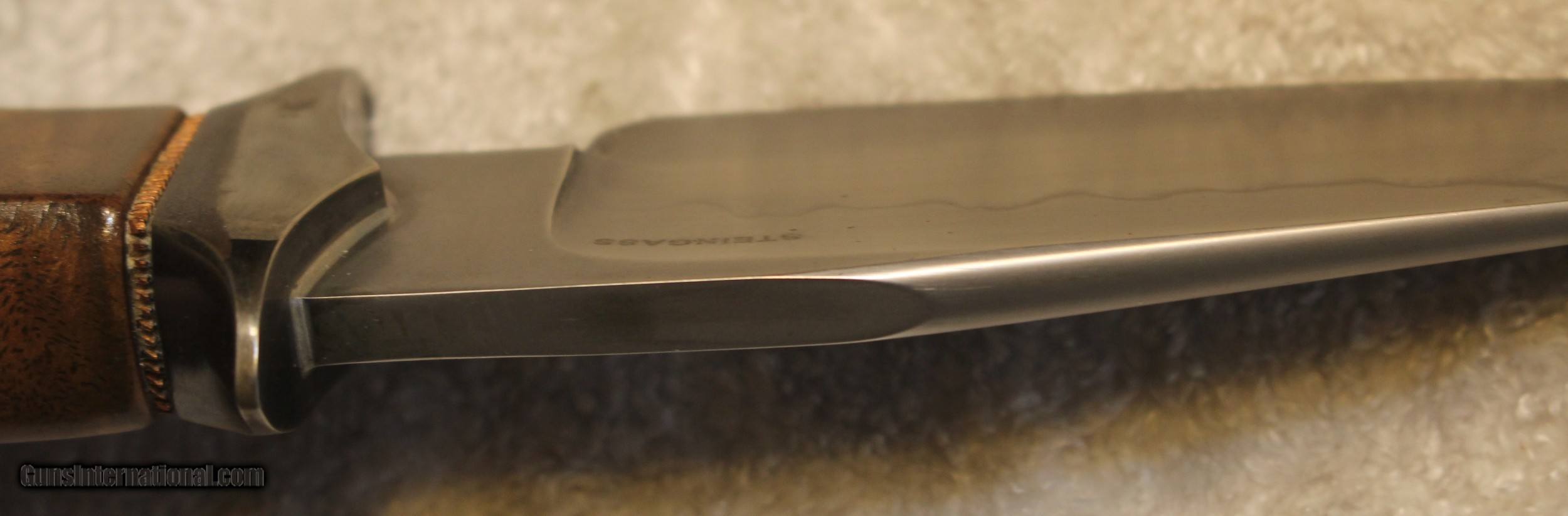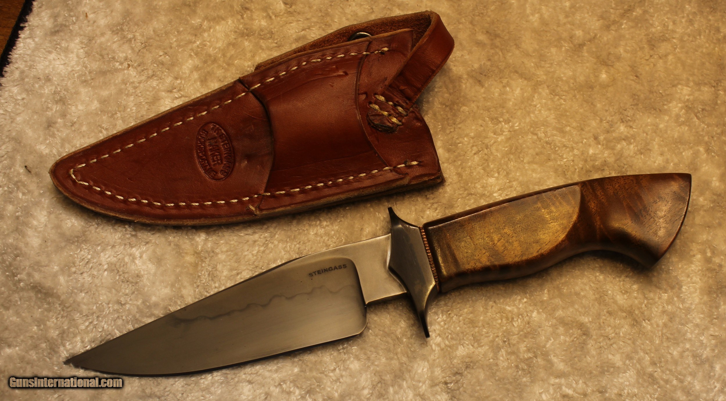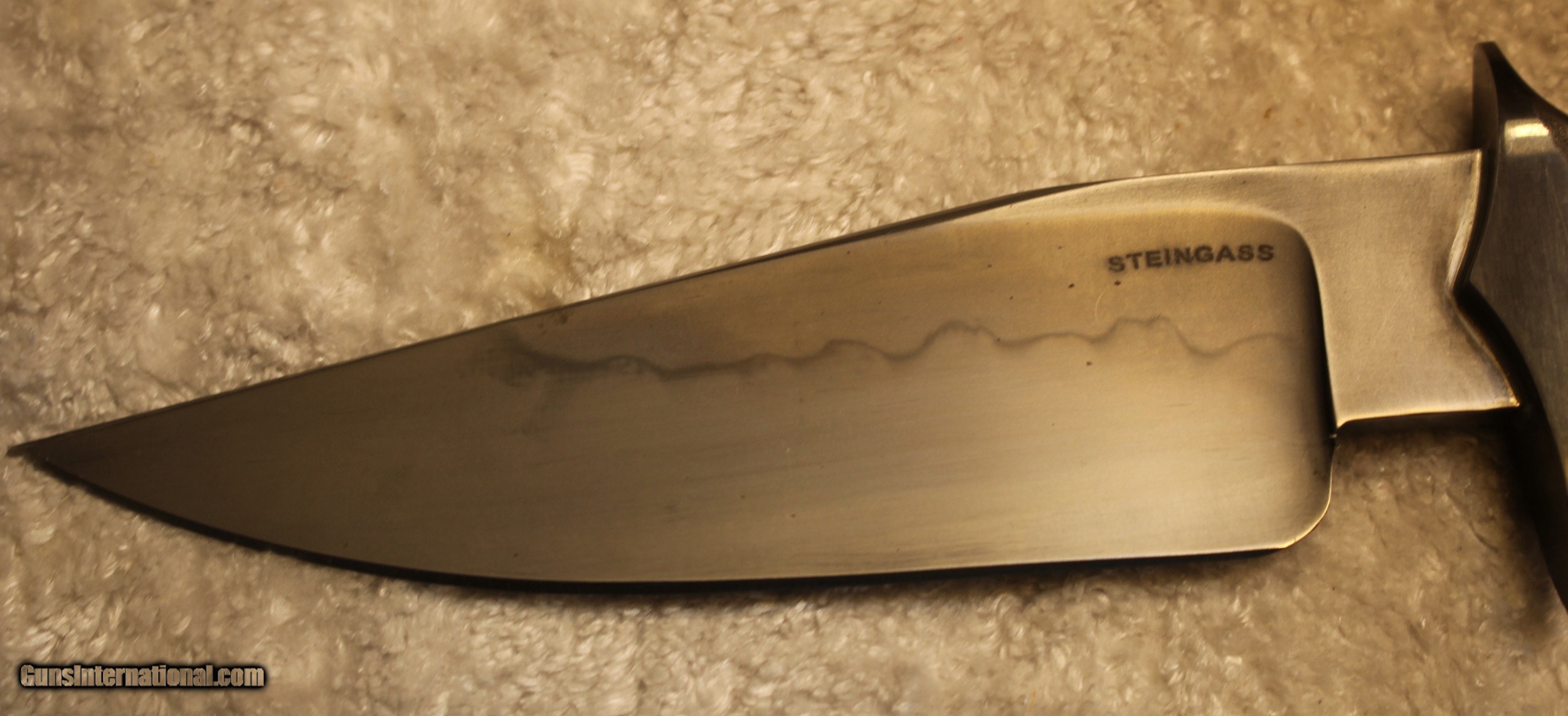 Description: Timothy K or TK Steingass Takedown Bowie with Sheath There is only the knife and the sheath you see in the pictures When taking tthe pictures there is corrosion on the guard. The pictures show it clearly. Look at Pictures 20 through 25. Hence the knife has been discounted for the corrosion Copied the below from the original add describing the knife........................ Timothy K or TK Steingass vest bowie in W-2/Fiddleback Claro Walnut. Intense fiddleback figure in the Claro Walnut - all pores filled with seven hand rubbed coats of Truoil. The handle has an heirloom fit where it meets the coined copper spacer. This is a VERY light bowie in spite of the double guard - the blade is both hollow ground with a radical distal taper while the spine is rounded. Neutral balance is under in the center of the guard where it should be. The handle is sculptured for a fit that melts into the hand. The hollow ground blade was hand rubbed to 1200 grit, etched and polished to reveal a vivid hamon. The horizontal sheath can be worn right hip or right cross draw. The 4140 double guard is blued - the solder joint is perfectly executed with no pinholes. The tang extends 3/4 of the way into the handle and is set with G/flex marine grade epoxy. .240" W-2 stock HT to Rc 60-61 10 1/2" OAL 5 1/2" Hollow ground blade Vivid hamon Exhibition grade Fiddleback Claro Walnut Truoil finish Coined copper spacer Blued/soldered double guard Rounded spine RH horizontal carry sheath End of copy from the original ad describing the knife NOTE: Look close at the pictures as the item you see is the one you get. As is means AS IS so There is NO, Refund. This came from the estate of an FFL/SOT Gun Smith, Gun Store that is out of business. The estate was an avid collector. This is from the collection or was inventory of 100 plus straight and folders. There will be countless other listings from this inventory and other inventories. We are selling for the estate/store. This is NOT a liquidation. There are no lists and will be no lists. Please check our other listings for more items Please also check our Webpage and or Facebook page at P&T Partners Shipping is included. Shipping is NOT FREE. Just included for Priority Mail, Full Insurance and a Signature at the receiving end because of the amount. If you do NOT want a signature, please advise. You can let me know if NO signature due to your work schedule. Credit in any form, shape or manner add 3.5% and credit by PHONE only. Personal checks accepted, we do not hold until clear. Postal Money orders also accepted. If you are in Texas and purchasing from Texas you are subject to Texas State Sales Tax For those that are local, there is no Face To Face. On Line means On Line. Again if you are Local there is NO local pick up. We ship only SOLD |