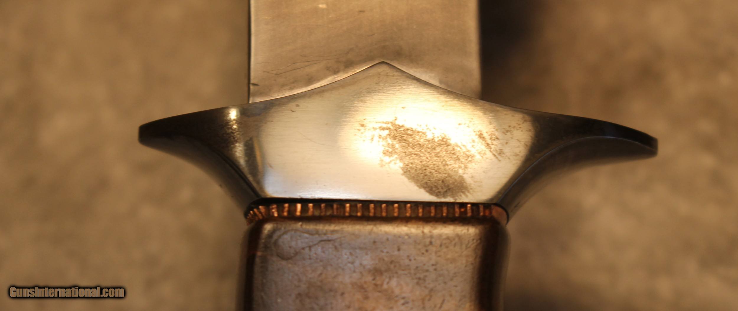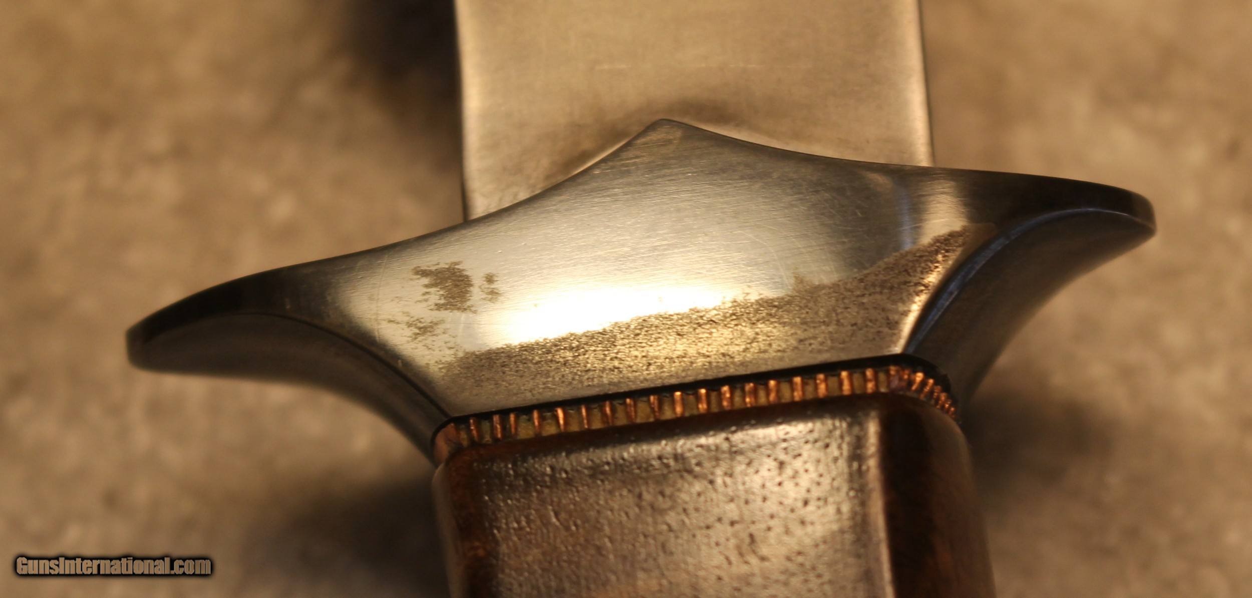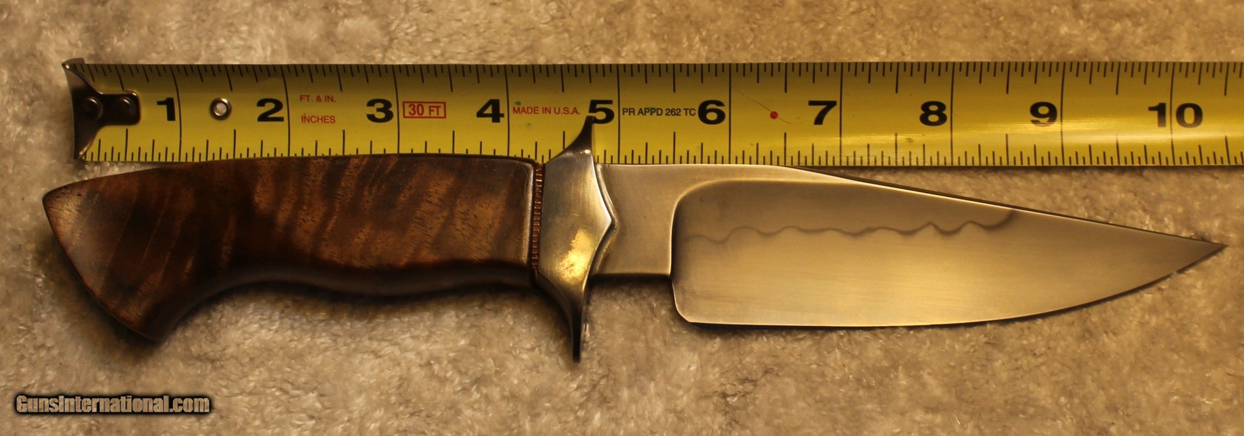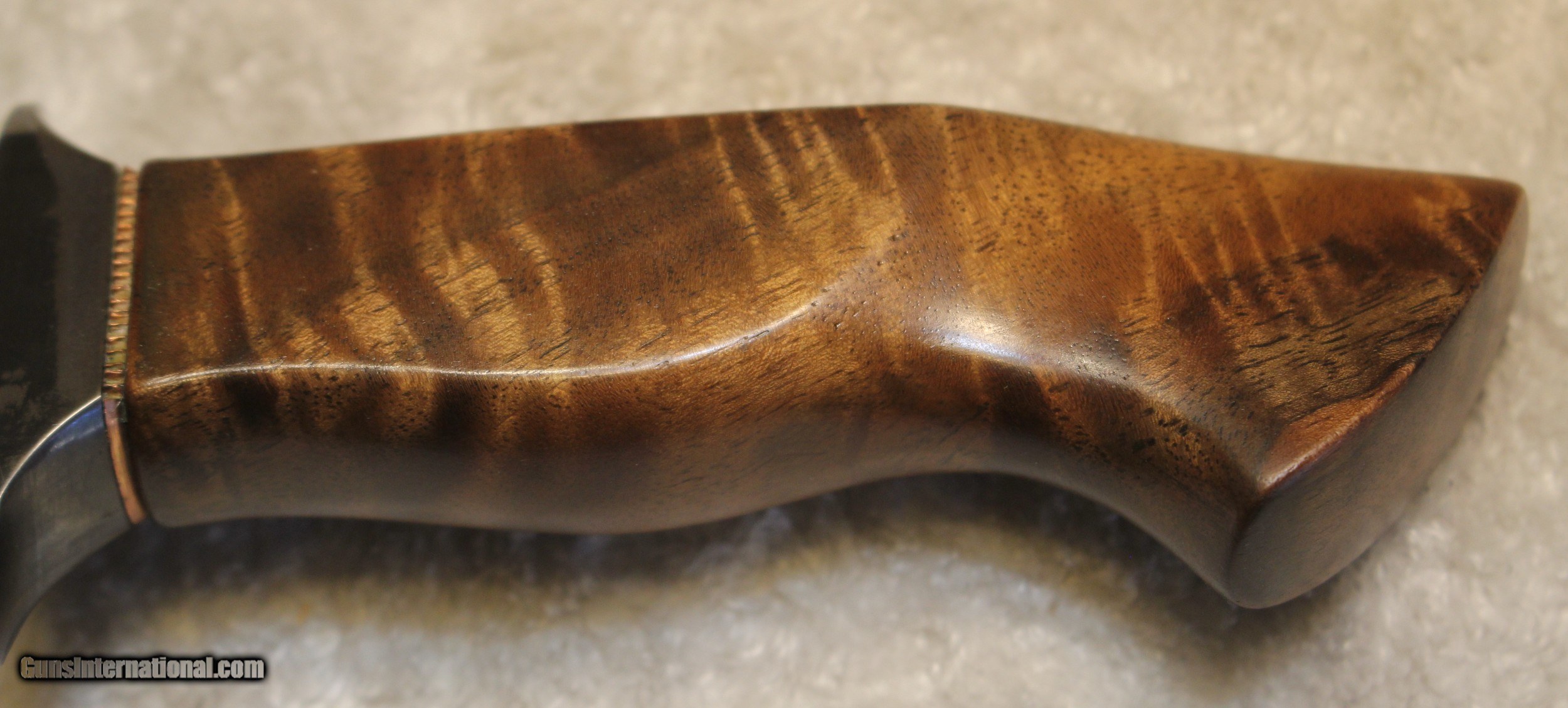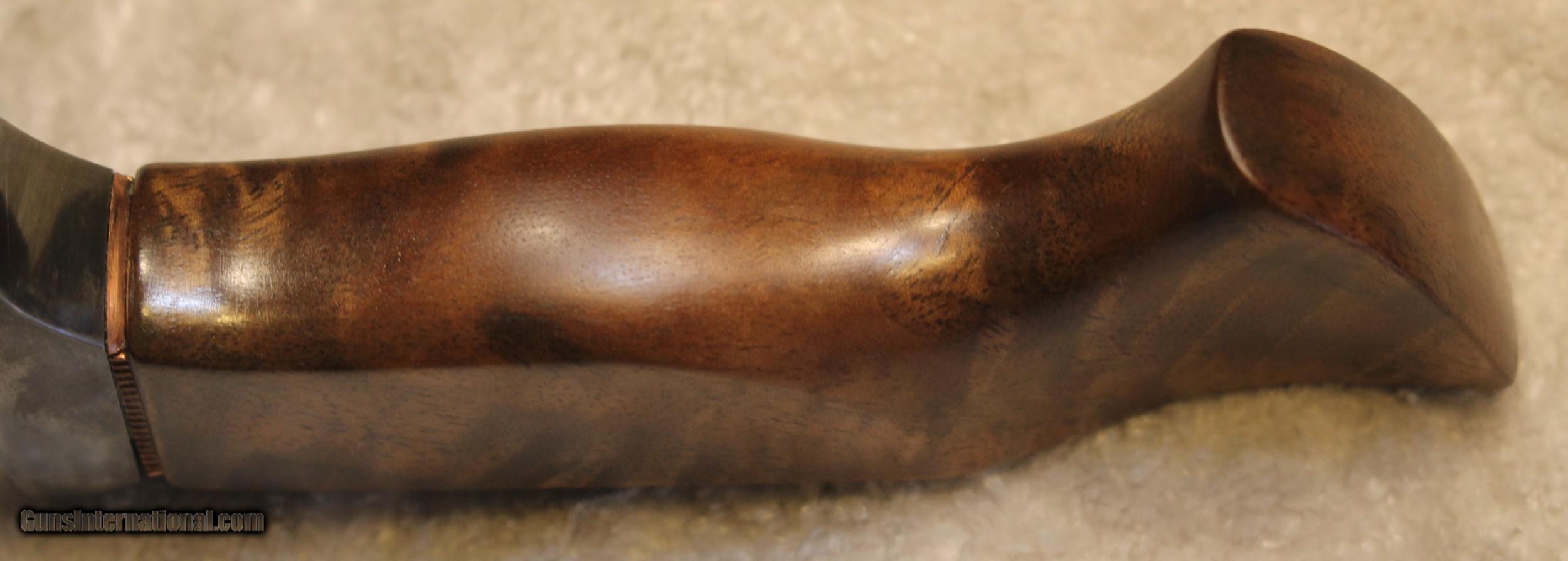 Description: Timothy K or TK Steingass Takedown Bowie with Sheath There is only the knife and the sheath you see in the pictures When taking tthe pictures there is corrosion on the guard. The pictures show it clearly. Look at Pictures 20 through 25. Hence the knife has been discounted for the corrosion Copied the below from the original add describing the knife........................ Timothy K or TK Steingass vest bowie in W-2/Fiddleback Claro Walnut. Intense fiddleback figure in the Claro Walnut - all pores filled with seven hand rubbed coats of Truoil. The handle has an heirloom fit where it meets the coined copper spacer. This is a VERY light bowie in spite of the double guard - the blade is both hollow ground with a radical distal taper while the spine is rounded. Neutral balance is under in the center of the guard where it should be. The handle is sculptured for a fit that melts into the hand. The hollow ground blade was hand rubbed to 1200 grit, etched and polished to reveal a vivid hamon. The horizontal sheath can be worn right hip or right cross draw. The 4140 double guard is blued - the solder joint is perfectly executed with no pinholes. The tang extends 3/4 of the way into the handle and is set with G/flex marine grade epoxy. .240" W-2 stock HT to Rc 60-61 10 1/2" OAL 5 1/2" Hollow ground blade Vivid hamon Exhibition grade Fiddleback Claro Walnut Truoil finish Coined copper spacer Blued/soldered double guard Rounded spine RH horizontal carry sheath End of copy from the original ad describing the knife NOTE: Look close at the pictures as the item you see is the one you get. As is means AS IS so There is NO, Refund. This came from the estate of an FFL/SOT Gun Smith, Gun Store that is out of business. The estate was an avid collector. This is from the collection or was inventory of 100 plus straight and folders. There will be countless other listings from this inventory and other inventories. We are selling for the estate/store. This is NOT a liquidation. There are no lists and will be no lists. Please check our other listings for more items Please also check our Webpage and or Facebook page at P&T Partners Shipping is included. Shipping is NOT FREE. Just included for Priority Mail, Full Insurance and a Signature at the receiving end because of the amount. If you do NOT want a signature, please advise. You can let me know if NO signature due to your work schedule. Credit in any form, shape or manner add 3.5% and credit by PHONE only. Personal checks accepted, we do not hold until clear. Postal Money orders also accepted. If you are in Texas and purchasing from Texas you are subject to Texas State Sales Tax For those that are local, there is no Face To Face. On Line means On Line. Again if you are Local there is NO local pick up. We ship only SOLD |