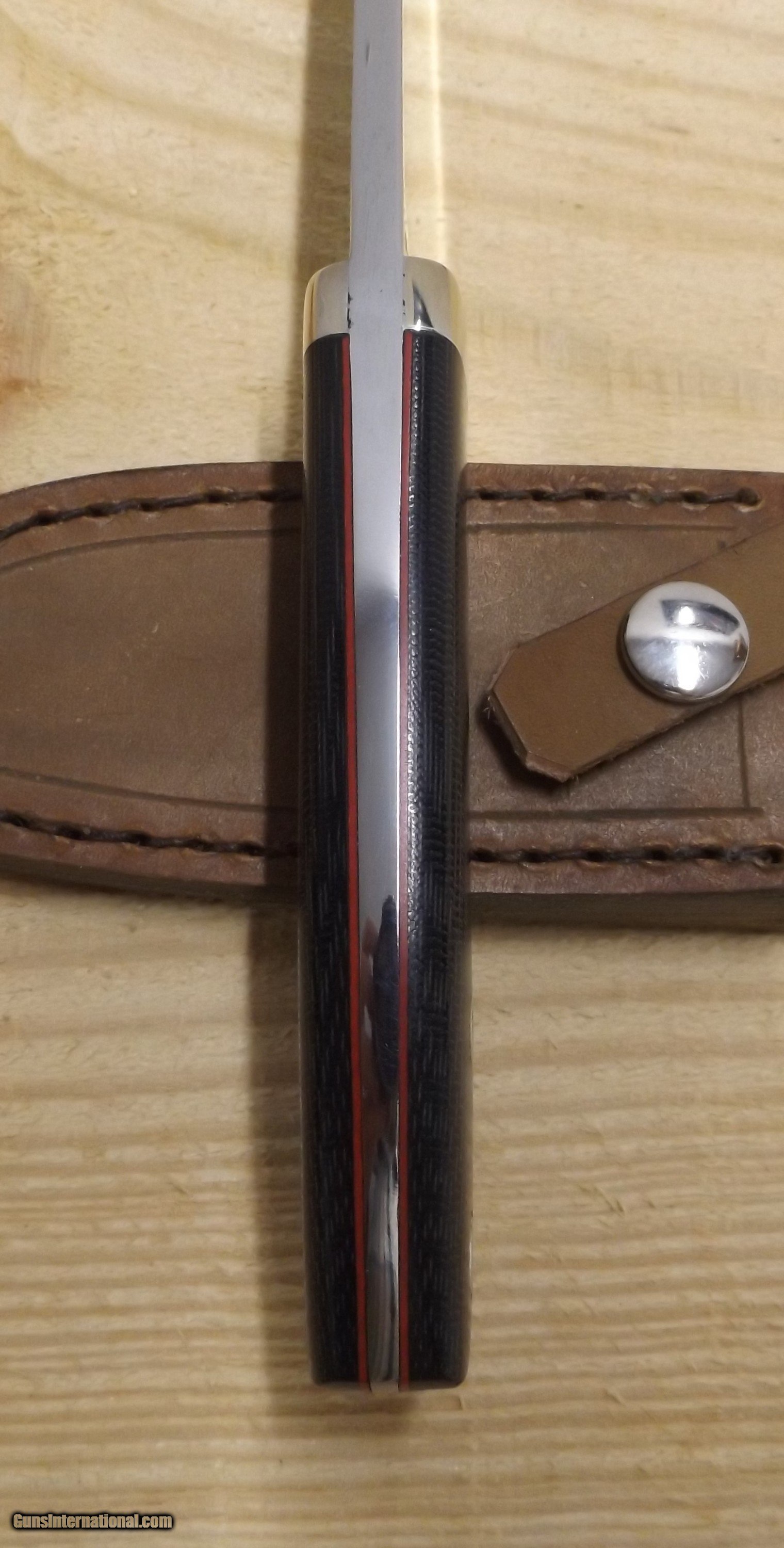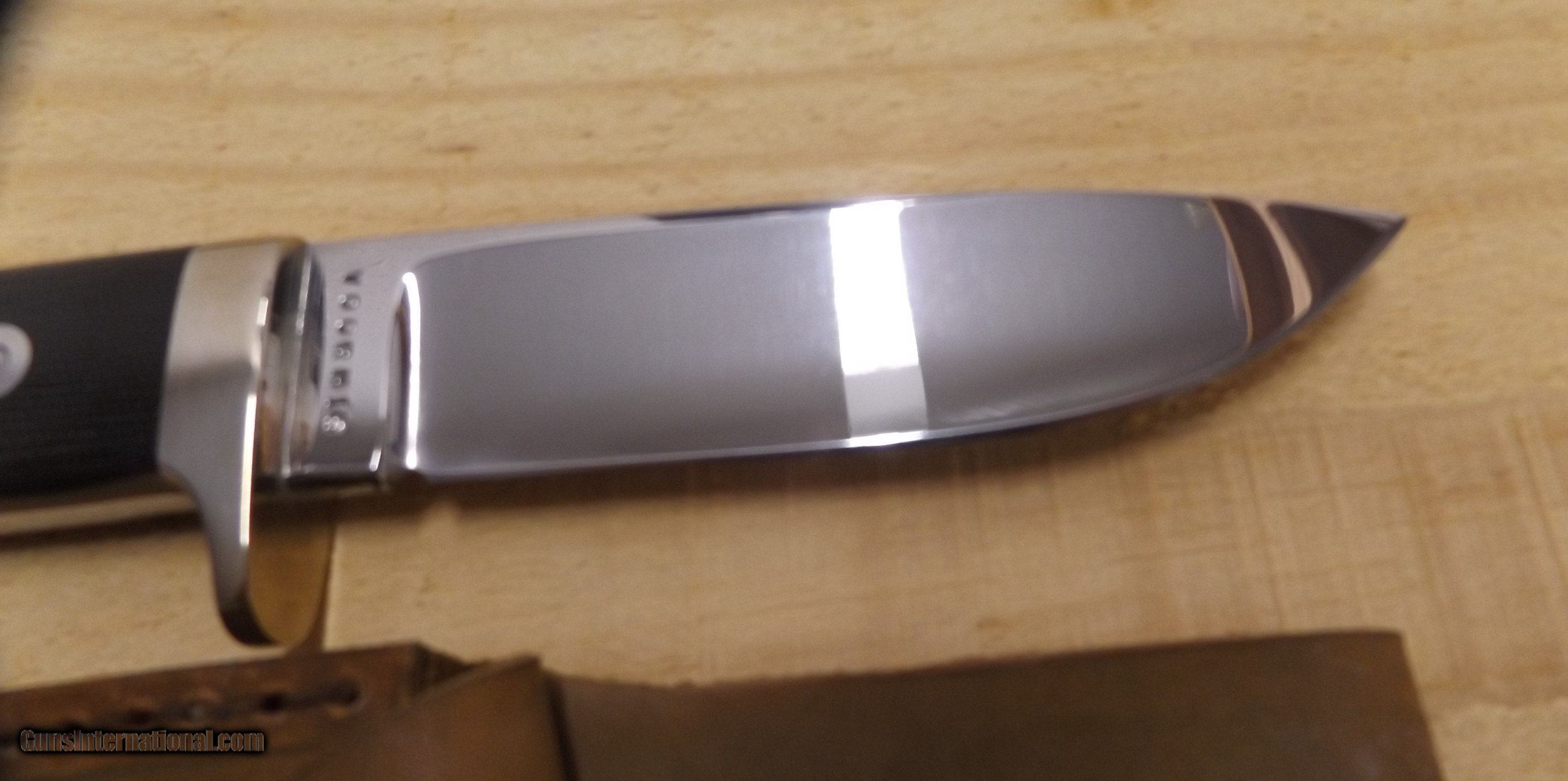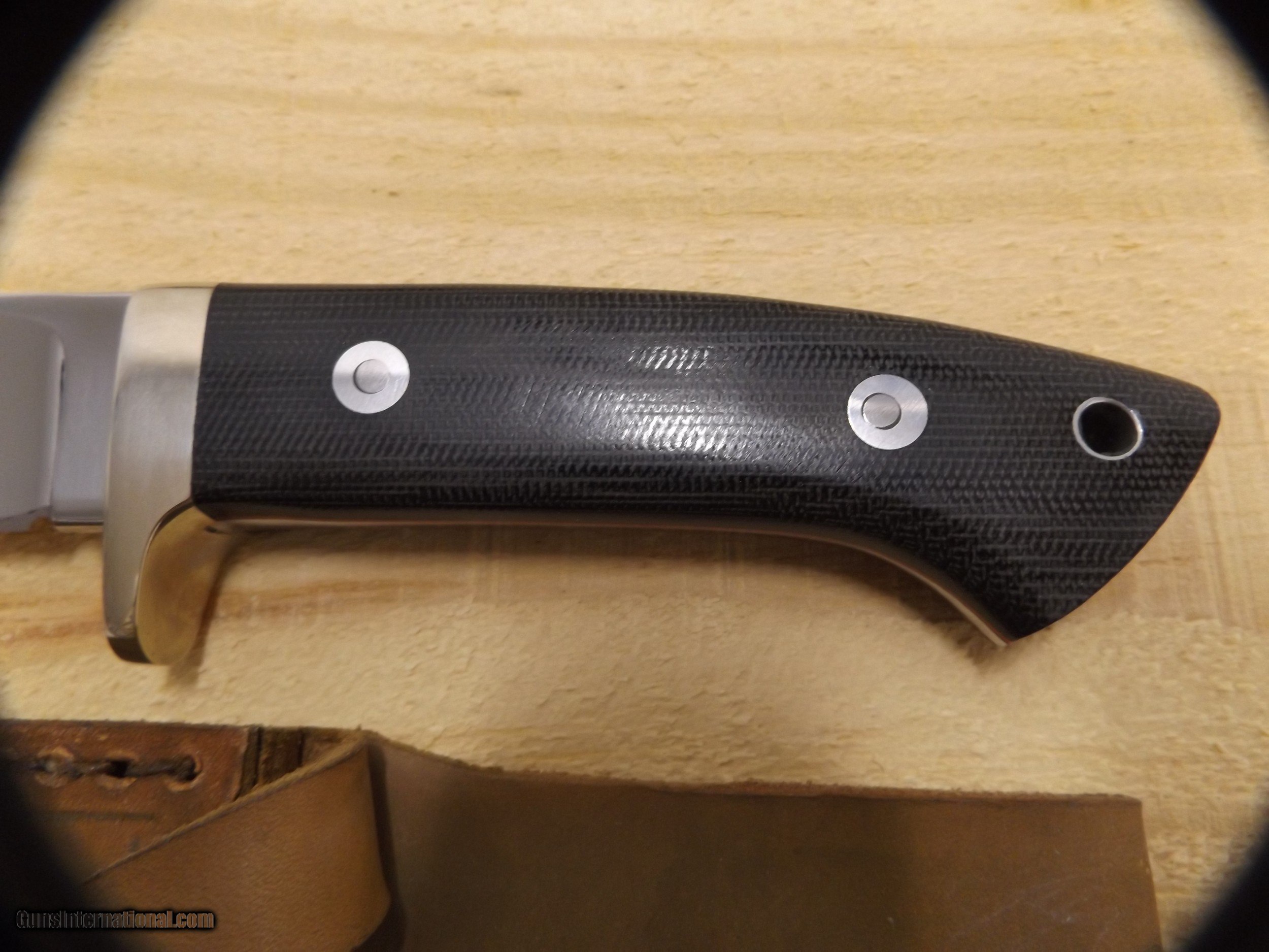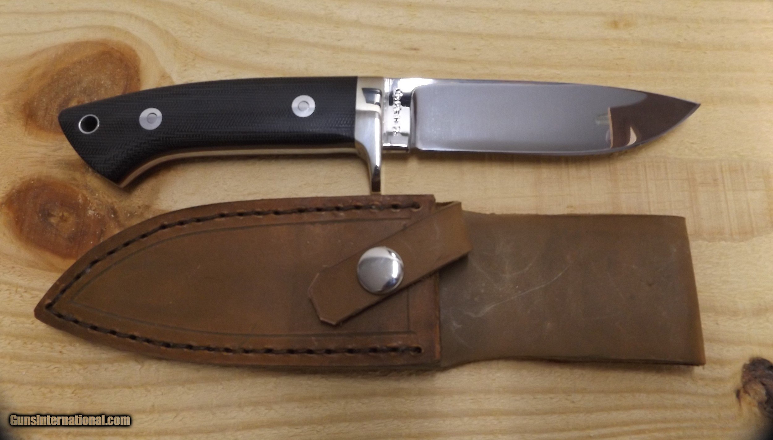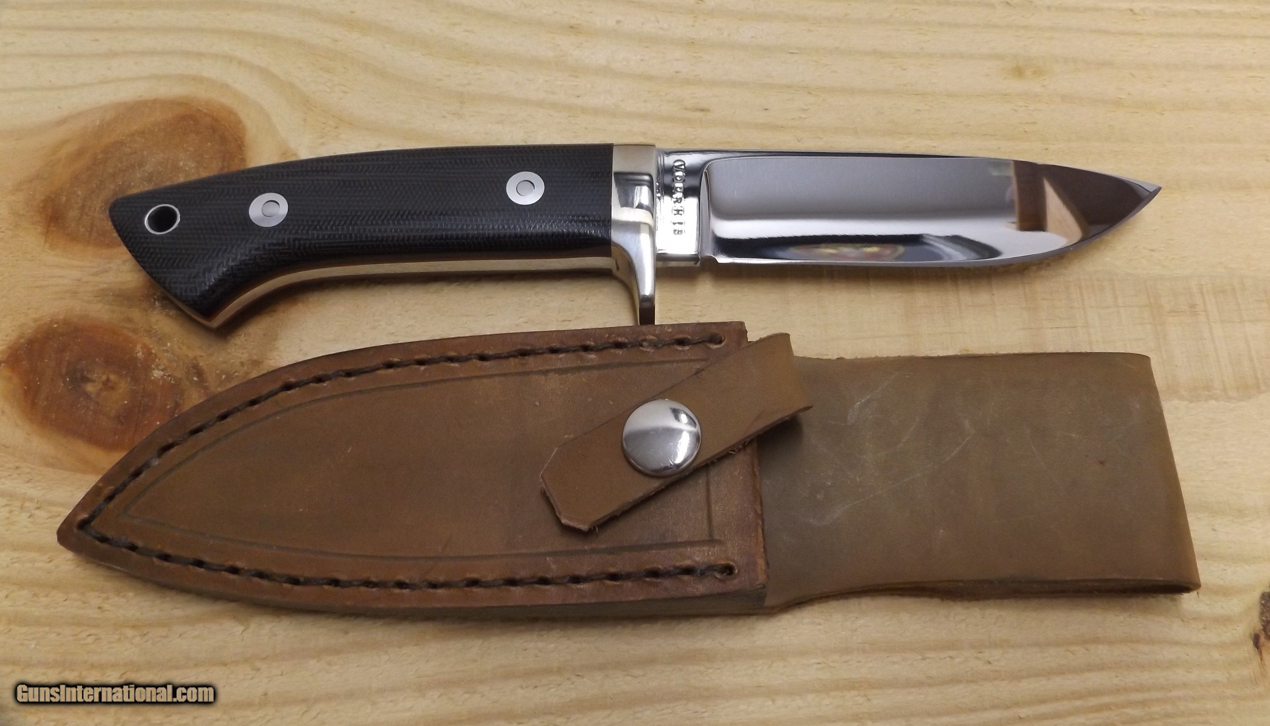 Description: 4 1/2" drop point hunter by custom knifemaker Steve Voorhis. Blade is polished to a mirror finish and handle is brown micarta. Workmanship is excellent. This knife has never been sharpened or carried.Blade stock is 5160 high carbon steel. SOLD |