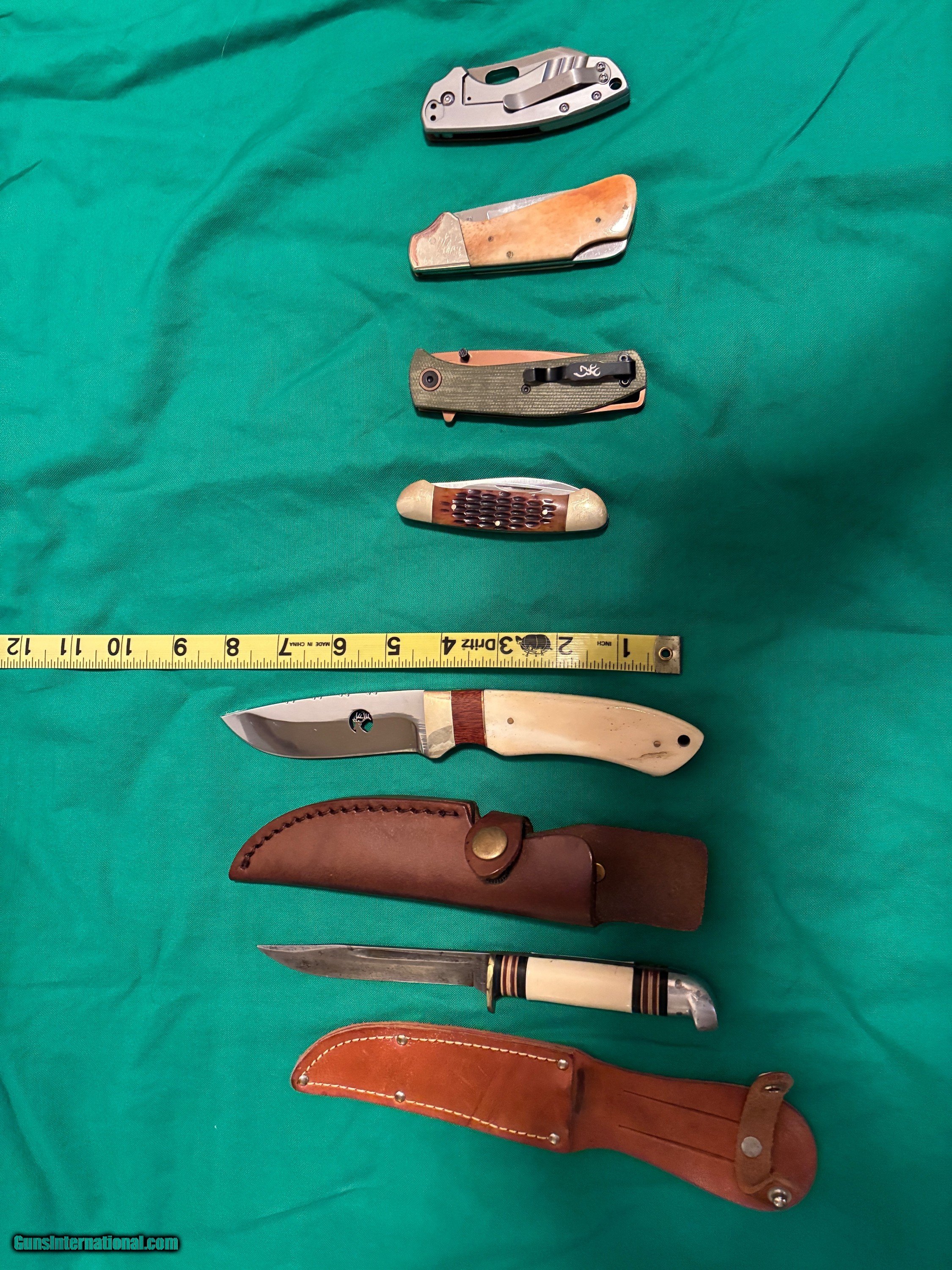Description: Lot of 6 knives. 5 in excellent shape. Western boulder colo with scrimshaw shows wear. Buy one or all call for individual price. please reach out with any questions. $75 plus $5 shipping. Price: $75.00 Contact Seller |