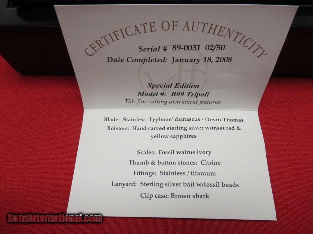 Description: This is knife #2 of 50. It is in as new condition with the display case and certificate of authenticity. SOLD |