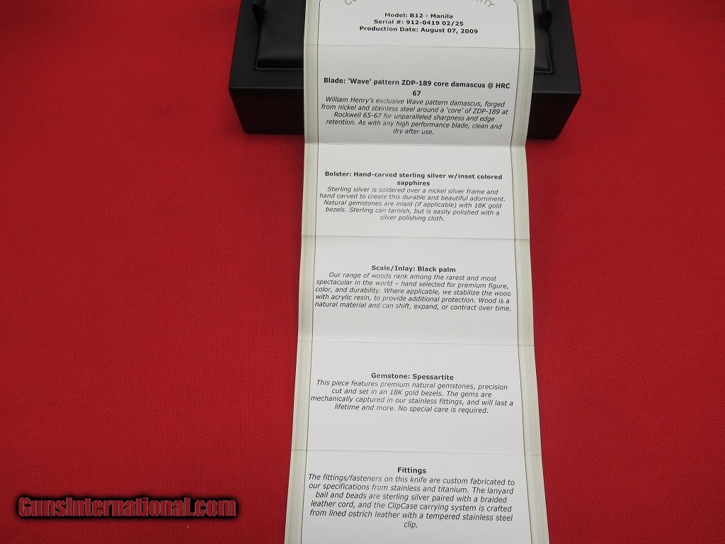William Henry Knife B12 Manila