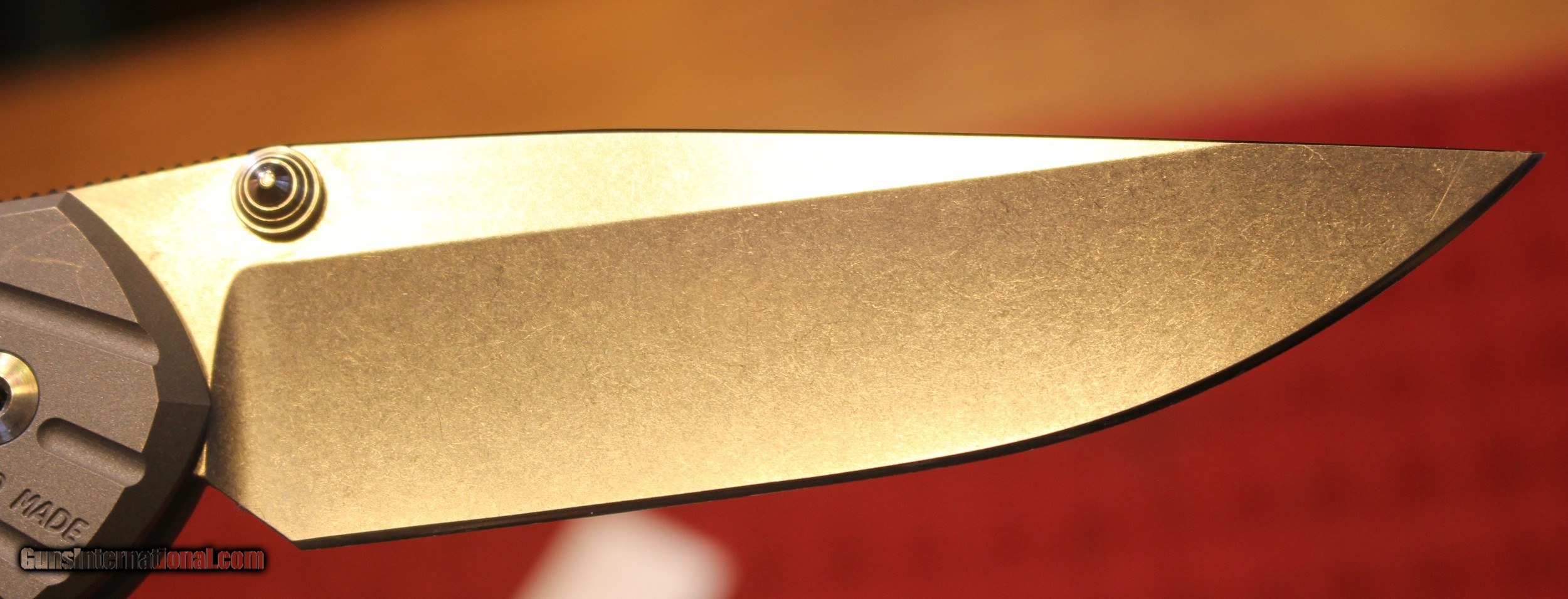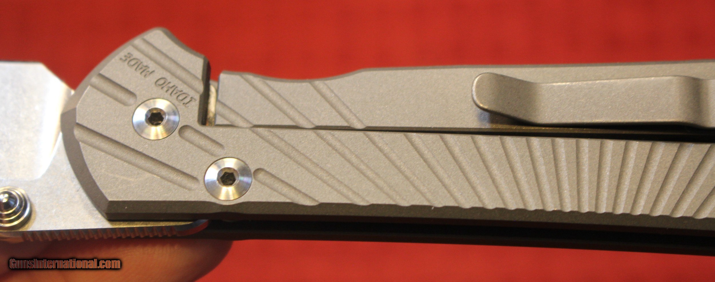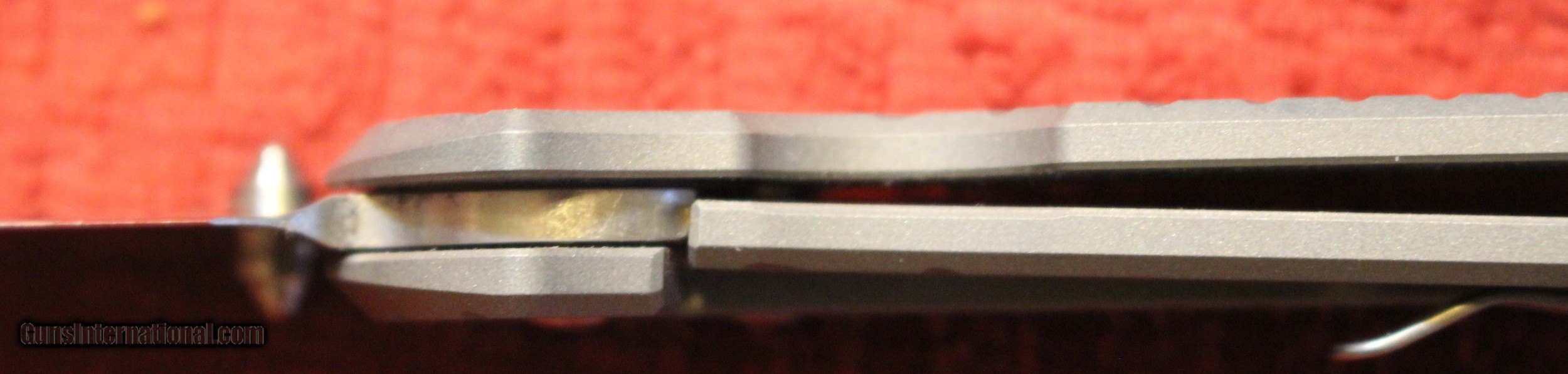Description: Got a Wilson Combat Star-Benza Titanium Framelock Chris Reeve Custom Folding Knife There is NO box or anything else other with it. Just the knife. This is from a describing the knife........................ Star-Benza 25 Titanium Framelock ; Wilson Tactical / Chris Reeve Knives; We have taken the latest incarnation of the legendary Chris Reeve Sebenza design-the "Sebenza 25" and added our signature Starburst handle pattern for good looks and unmatched grip. This hard working, yet elegant knife will serve you and yours for decades. The "Star-Benza 25" lives up to the Wilson Combat legacy of Supergrade quality and is a fine companion to your Wilson Combat firearm or knife. We are proud to attach our name to this piece of functional art; Quantities are always extremely limited; About the "25"; Virtually every year since the inception of the Sebenza in 1987 has seen small, incremental developments, improvements and changes. Celebrating the 25th anniversary of the Sebenza in 2012, Chris brought some new concepts to the Sebenza 25; Large Hollow Grind Technology-the first blade to feature this new grind that blends the best of hollow and flat grinds.; Shaped phosphor bronze washer on the lock side brings additional stability to that side of the blade.; One-eighth inch ceramic ball acts as the interface between the lock bar and the blade, and doubles to drop into the detent, ensuring the blade stays in place when closed.; Larger perforations in the washers reduce friction, store more lubricant and offer space for small dirt particles to move away from the blade/washer interface, helping to prevent blade action from becoming "sticky".; 416 Heat treated stainless steel stop pin.; Asymmetrical pattern thumb serrations on a curved thumb ramp of the blade give excellent purchase.; At 0.140" (3.56mm), the blade is more robust than previous Star-Benza models. SPECIFICATIONS:; Blade Material: CPM S35VN Stainless Steel; Blade Hardness: 58-59 RC; Blade Length: Large - 3.625" (92 mm); Blade Thickness: 0.14" (3.56 mm); Overall Length: 8.335" (212 mm); Handle Length: 4.8" (122 mm); Handle Material: 6Al4V Titanium with exclusive Wilson Combat Starburst pattern; Handle Thickness: 0.150" (3.8 mm); Weight: 5.2 oz. (145 g); Fittings: 303 Stainless Steel; Double Thumblugs: 6Al4V Titanium; Pocket Clip: 6Al4V Titanium; End of copy from a describing the knife............ NOTE: Look close at the pictures as the item you see is the one you get. As is means AS IS so There is NO, Refund. This came from the estate of an FFL/SOT Gun Smith, Gun Store that is out of business. The estate was an avid collector. This is from the collection or was inventory of 100 plus straight and folders. There will be countless other listings from this inventory and other inventories. We are selling for the estate/store. This is NOT a liquidation. There are no lists and will be no lists. Please check our other listings for more items Please also check our Webpage and or Facebook page at P&T Partners Shipping is included. Shipping is NOT FREE. Just included for Priority Mail and a signature at the receiving end. Credit in any form, shape or manner add 3.5% and credit by PHONE only. Personal checks accepted, we do not hold until clear for parts. Postal Money orders also accepted. If you are in Texas and purchasing from Texas you are subject to Texas State Sales Tax For those that are local, there is no Face To Face. On Line means On Line. Again if you are Local there is NO local pick up. We ship only SOLD |