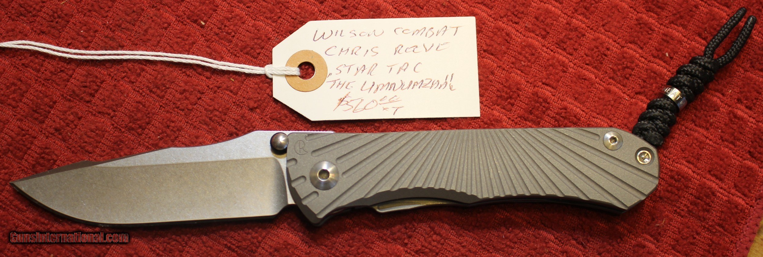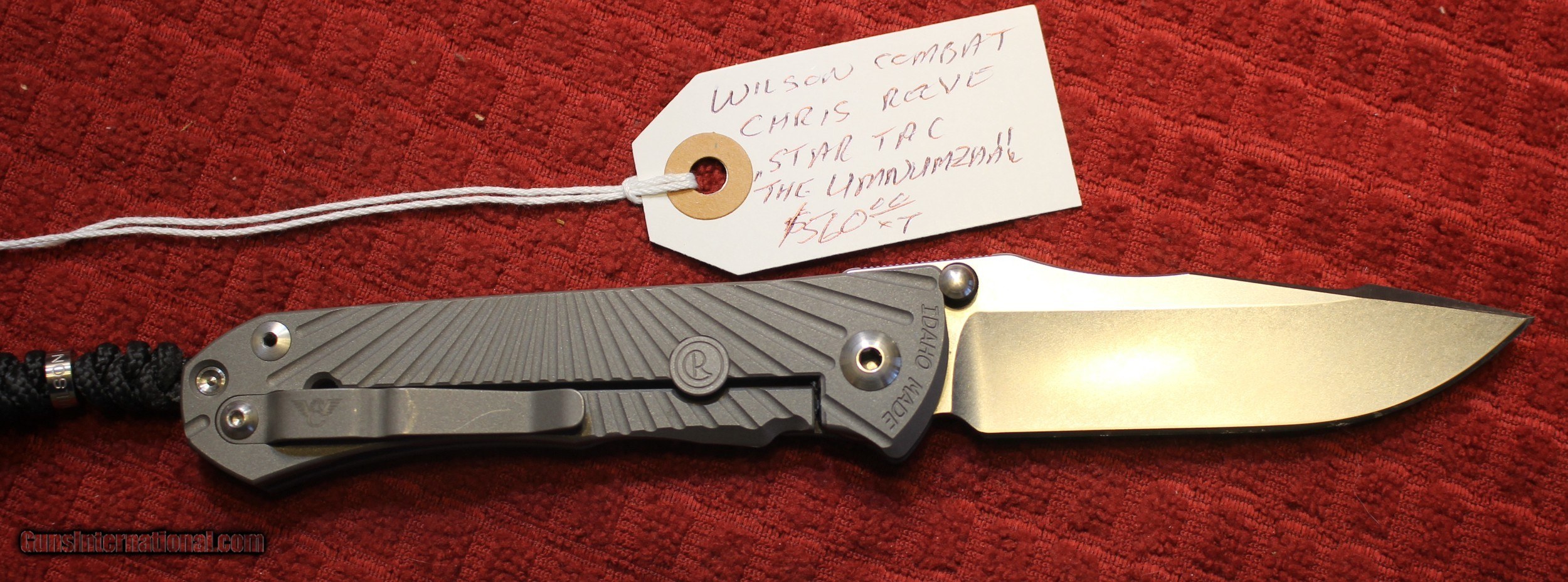 Description: Got a Wilson Tactical® / Chris Reeve Knives - Star-Tac Titanium Framelock "The Umnumzaan" Custom Folding Knife There is NO box or anything else other with it. Just the knife. This is from an ad describing the knife........................ Wilson Tactical® / Chris Reeve Knives - Star-Tac Titanium Framelock “The Umnumzaan” The evolution of a 20 year quest to make the most rugged tactical folding knife, the Star-Tac is a new collaboration between Wilson Tactical® and the legendary knifemaking precision of Chris Reeve Knives.