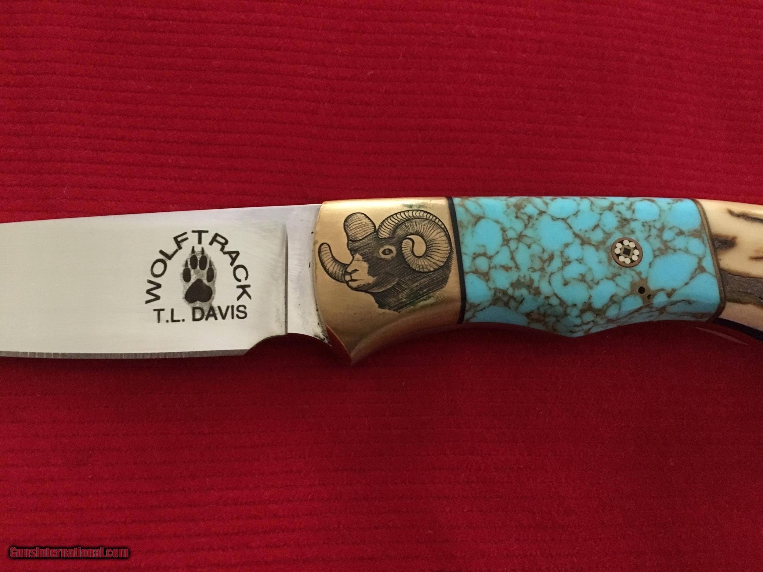 Description: Wolf Track , T. L. Davis Custom hand engraved knife . 3 " fixed blade . SOLD |