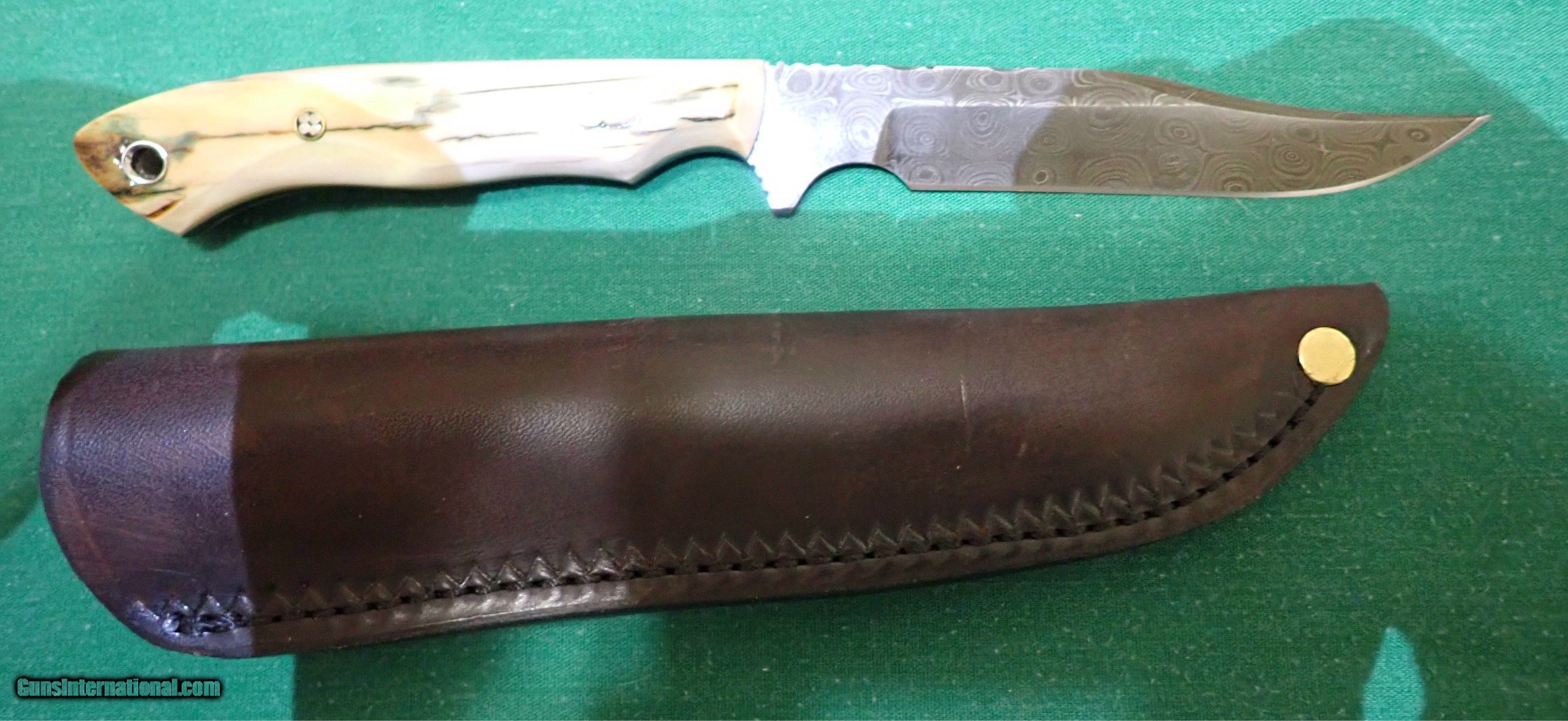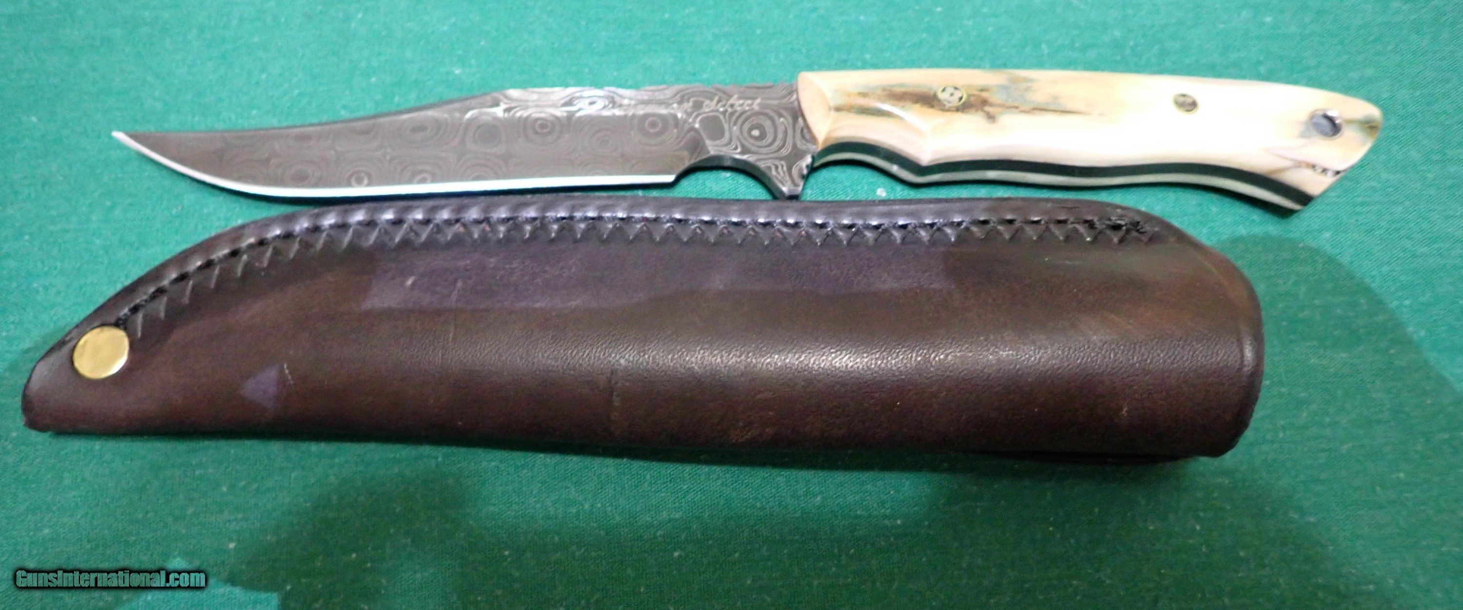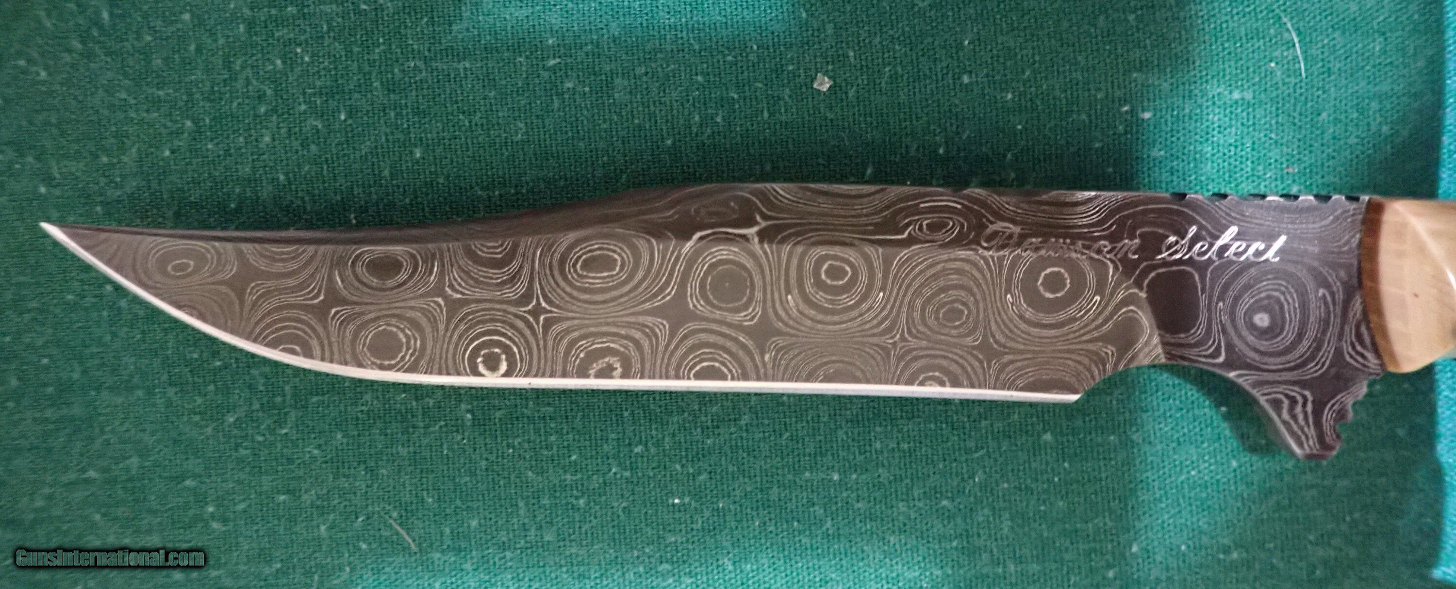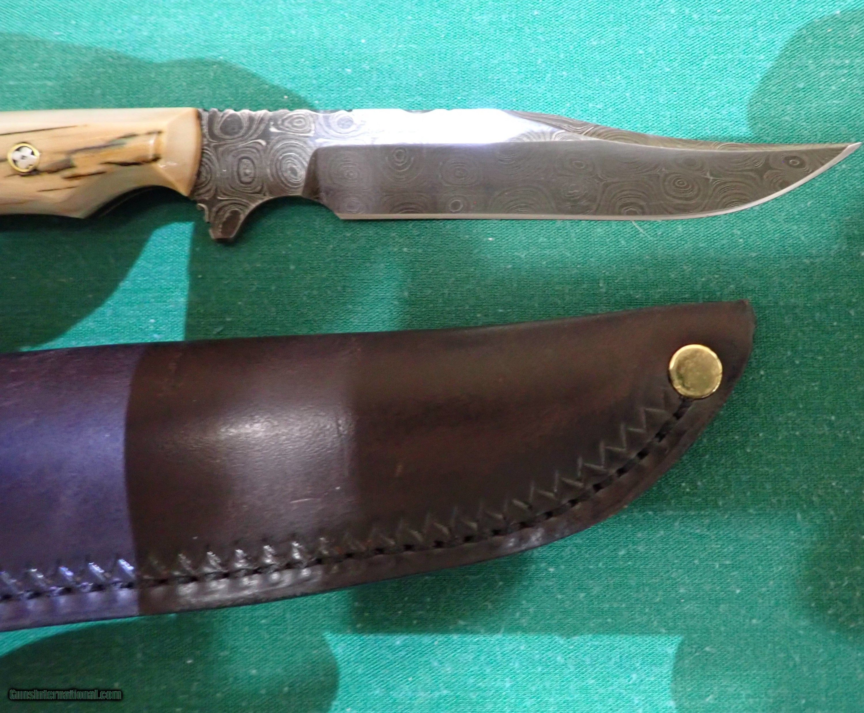 Description: Dawson custom damascus with a bone handle. The blade length is 41/5 in over all length is 83/4in. Price: $350.00 Contact Seller |