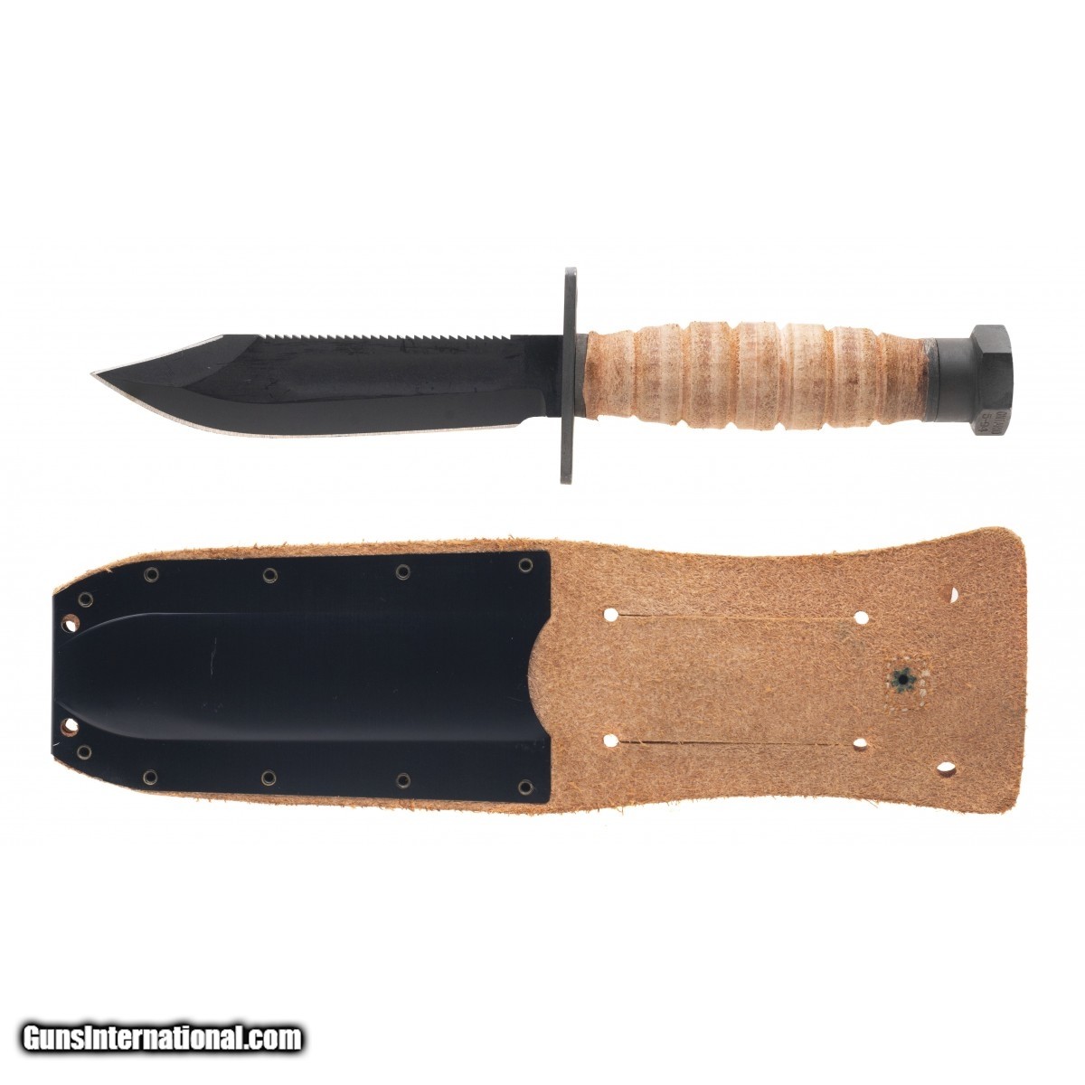 Description: " Ontario Knife company jet pilot survival knife. Has a 5"" blade length with a 9.5"" overall length. Made in May of 1994. Overall in very good plus condition. Comes with sharpening stone and sheath. SOLD |