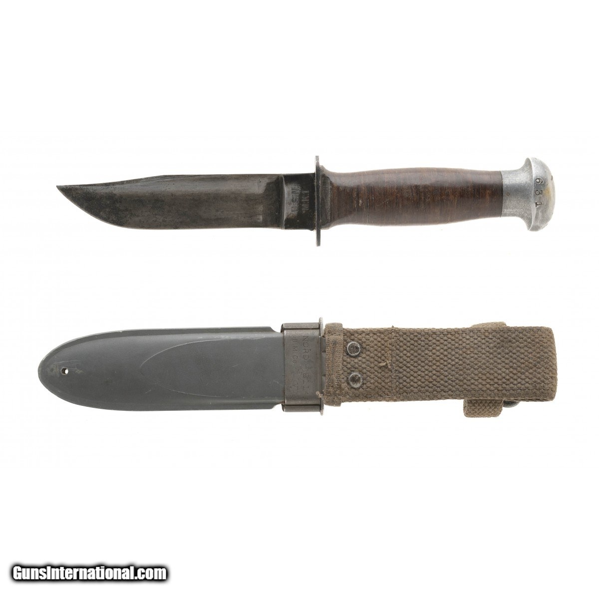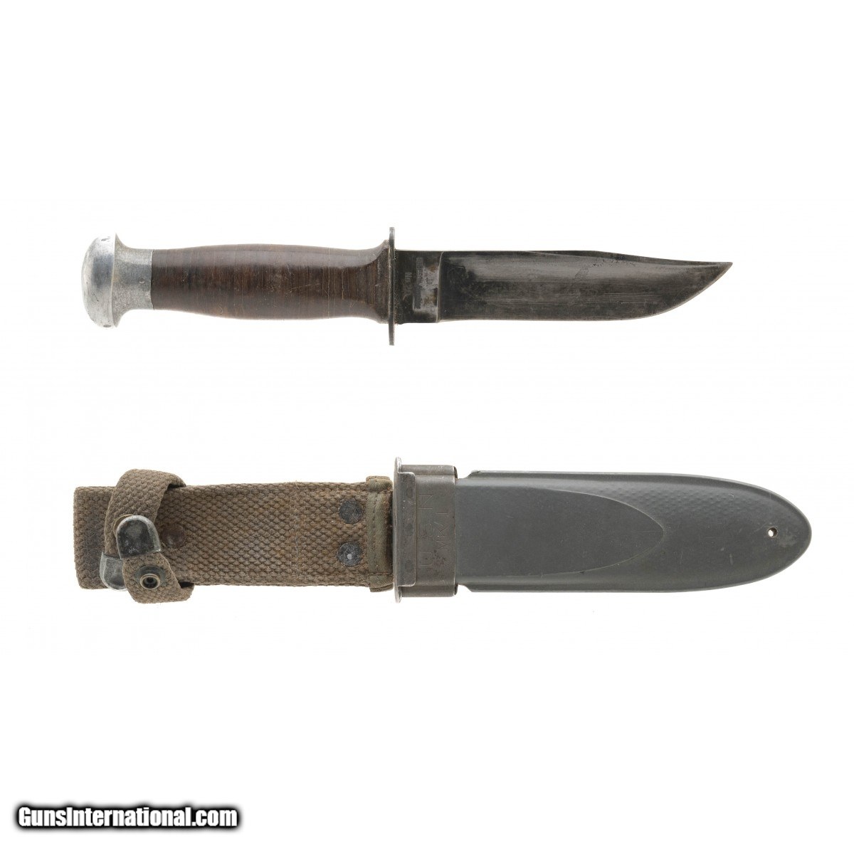 Description: " US Navy MK Fighting knife with in out wear. Blade marked Robeson No20 USN MK1. Grey plastic scabbard marked USN MK1. SOLD |