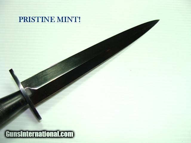 Description: WW2 BRITISH COMMANDO 2nd PATTERN FAIRBAIRN-SYKES FIGHTING KNIFE /|\B2 MOS PROOF INSPECTOR MARKED. 2nd Pattern F-S KNIVES w/ the MOS (Ministry of Supply) PROOF MARK /|\B2) have been determined by professional research colleagues to have been manufactured by the WILKINSON SWORD MFG. CO, London, England, during the War! 2nd Pattern F-S Knives have a drop forged, hand ground, & hand sharpened blade by Wilkinson's Master Blade Smiths. This superb example survives in Near Mint/MINT condition! The 6 1/4” Drop Forged, hand ground, hand sharpened blade is pristine mint with no wear and 100% original deep blued finish, no scratches. Only factory original razor sharp edge. The crossguard shows no wear, and has a light strike /|\B…w/a faint partial 2. /|\B2 Many like this have a very weak strike on the “2” of B2. This is common and it is not a separate variation. Wilkinson's was more concerned with making weapons of war, NOT stamping them! The knurled handle is mint with all of it’s dark finish present. The Pommel nut is pristine and untouched as per the picture. The original correct scabbard is in excellent condition, but no tabs remain, nor elastic retainer. The “England” import Stamp is seen at the top of the scabbard “frog”, and on the top of the crossguard crowded next to "/|\B2". It has also been mated with an Enfield Rifle Bayonet “Frog”, which was a common “field alteration” of the flimsy factory scabbard. ~~~~~~~~~~~~~~~~~~~~~~~~~~~~~~~~~~~~~~~~~~~~~~~~~~~~~~~~~~~~~~~~~~~~~~~~~~~~~~~~~~~~~~~~~~~~~~~~~~~~~~~~~~~~~~~~~~~~~~~~~~~~~~~~~~~~~~~~~~~~~~~~~~~~~~~~~~~~~~~~~~The buyer certifies that he or she is of lawful age and is not prevented by any law from the purchase or possession of these items. The buyer is responsible for knowing, understanding and obeying all International, Federal, State and Local laws concerning the purchase and possession of these items ~~~~~~~~~~~~~~~~~~~~~~~~~~~~~~~~~~~~~~~~~~~~~~~~~~~~~~~~~~~~~~~~~~~~~~~~~~~~~~~~~~~~~~~~~~~~~~~~~~~~~~~~~~~~~~~~~~~~~~~~~~~~~~~~~~~~~~~~~~~~~~~~~~~~~~~~~~~~~~ If you have any questions, please let me know. For 40+ yrs I've been a leading collector, dealer, military historian of high condition Allied Militatary Fighting Knives 1941-1975. Incl. Randall Model 1 & 2, 1950-1975, Gerber Mk.2 1967-1975. Thanks for your interest! Shipping is $18 SOLD |