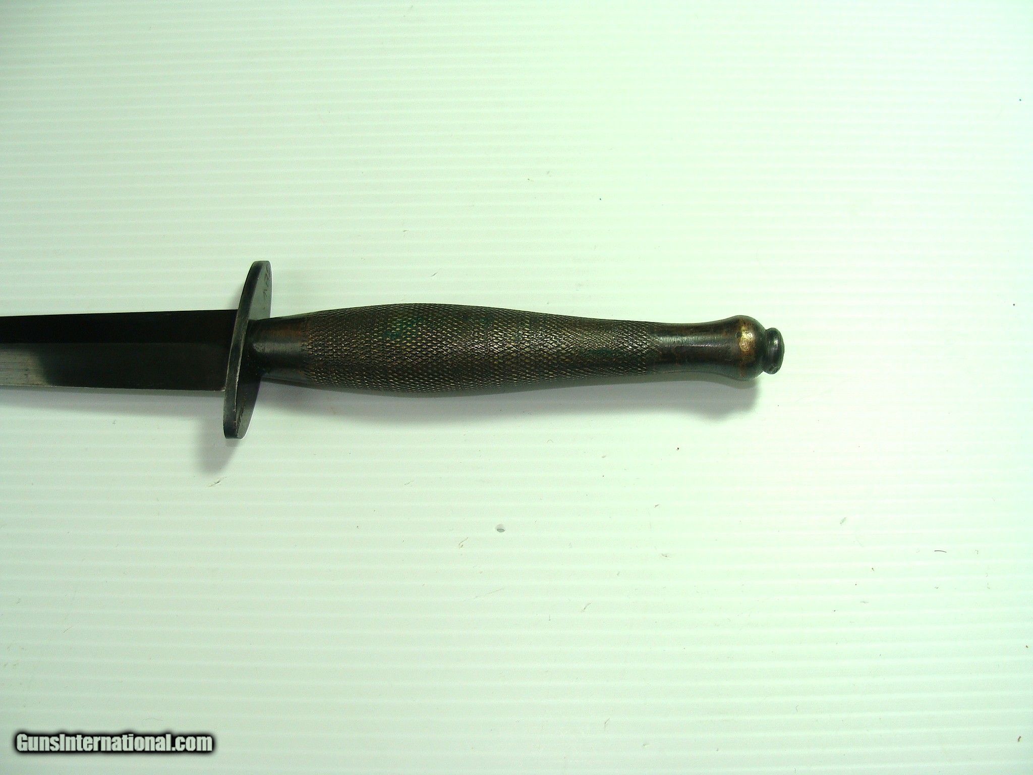 Description: WW2 WILKINSON SWORD 2nd PATTERN BRITISH COMMANDO FAIRBAIRN SYKES FIGHTING KNIFE IN HIGH COND. & RARE! THIS STUNNING SURVIVING EXAMPLE OF THE WW2 BRITISH COMMANDO F-S KNIFE SURVIVES IN NEAR MINT+ CONDITION. IT HAS THE /|\ B2 MOS PROOF MARK OF WHICH IS ATTRIBUTED TO WILKINSON SWORD MANUFACTURE. THESE USED TO BE RELATIVELY "COMMON" WHEN I STARTED 40+ YRS. AGO. NOT SO ANY MORE! I HAVEN'T SEEN A "B2" F-S STILETTO IN A LONG TIME. THEY HAVE DISSAPEARED INTO PRIVATE COLLECTIONS. THIS EXAMPLE IS FROM MY PRIVATE COLLECTION. THE 6 3/4" DROP-FORGED, HAND GROUND & HAND SHARPENED BY MASTER BLADE GRINDERS AT WILKINSON'S REMAINS IN PRISTINE MINT CONDITION! THE CROSSGUARD SURVIVES IN NEAR MINT SHAPE. THE HAND-KNURLED GRIP IS EX+ TO NM, WITH ONLY LIGHT HANDLING WEAR. THE POMMEL NUT IS FACTORY PEENED, AND UNTOUCHED. THE SCABBARD IS IN SUPERB NEAR MINT CONDITION. THE ELASTIC HAS SEPERATED WHICH IS OFTEN SEEN THIS WAY. ALL FOUR TABS ARE PRESENT! OVERALL A STUNNING WW2 2ND PATTERN BRITISH CDO F-S KNIFE! ~~~~~~~~~~~~~~~~~~~~~~~~~~~~~~~~~~~~~~~~~~~~~~~~~~~~~~~~~~~~~~~~~~~~~~~~~~~~~~~~~~~~~~~~~~~~~~~~~~~~~~~~~~~~~~~~~~~~~~~~~~~~~~~~~~~~~~~~~~~~~~~~~~~~~~~~~~~~~~~~~ NO guarantee or warranty is expressed or implied as to the usability of the items for its original purpose. The buyer certifies that he or she is of lawful age and is not prevented by any law from the purchase or possession of these items. No guarantee or warranty is expressed or implied as to the usability of the items for its original purpose. The buyer certifies that he or she is of lawful age and is not prevented by any law from the purchase or possession of these items. The buyer is responsible for knowing, understanding and obeying all International, Federal, State and Local laws concerning the use and possession of these items. Offers Accepted FREE SHIPPING! :-) ~~~~~~~~~~~~~~~~~~~~~~~~~~~~~~~~~~~~~~~~~~~~~~~~~~~~~~~~~~~~~~~~~~~~~~~~~~~~~~~~~~~~~~~~~~~~~~~~~~~~~~~~~~~~~~~~~~~~~~~~~~~~~~~~~~~~~~~~~~~~~~~~~~~~~~~~~~~~~~~~~~ I HAVE BEEN AN ADVANCED COLLECTOR, DEALER, MILITARY HISTORIAN OF HIGH CONDITION ALLIED MILITARY FIGHTING KNIVES, AND THE MEN THAT CARRIED THEM, 1918-1975, INCLUDING RANDALL MADE KNIVES 1950-1975, AND GERBER MK.2'S 1967-1975. I PAY TOP DOLLAR FOR TOP CONDITION! THANK YOU FOR YOUR INTEREST! SOLD |