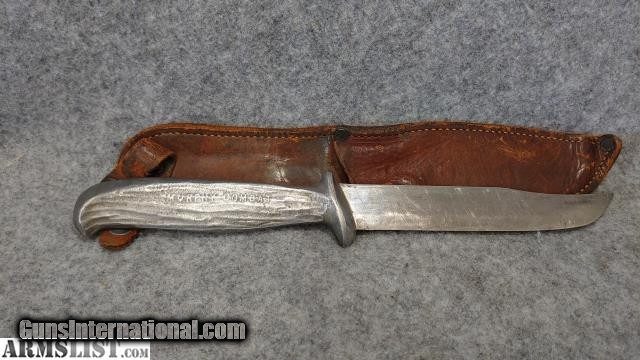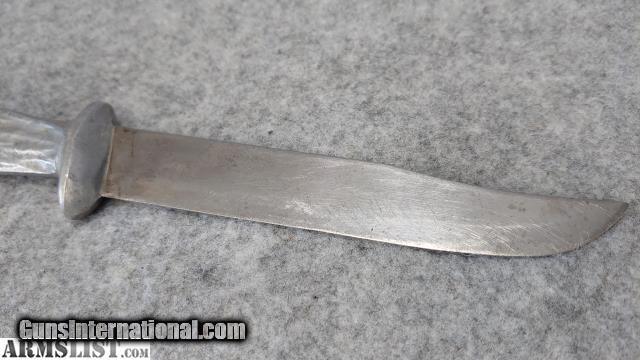 Description: Inventory #: 66276-1 Manufacturer: Murphy Model: WWII Murphy Combat Knife Blade Type: 6 1/8" New / Used: Used This Murphy Combat Knife is used but in excellent shape. The condition of this knife is much better than most others we have seen online. Any scuffs on the knife are pictured. The sheath has normal use wear for it's age. Additional Details: - WWII era blade - Manufactured by David Z. Murphy and son David M. Murphy - Loosley categorized as "Theater Knives" - Total Length: 11 3/4" SOLD |