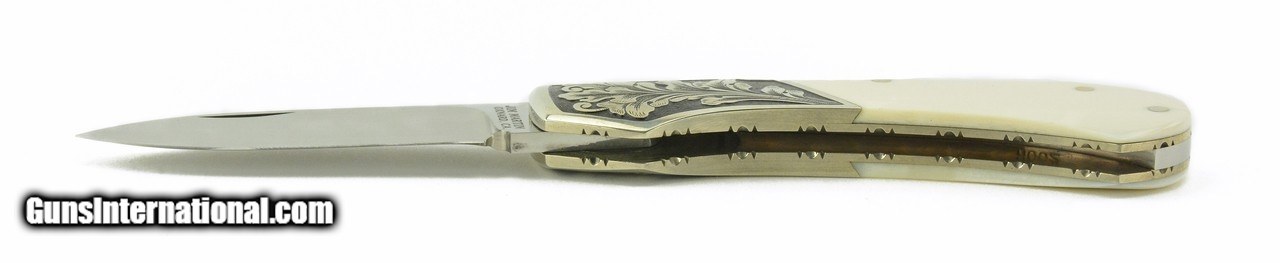 Description: "Jim Martin Lock Back Knife. Beautiful lock back knife with 2 ½" blade, engraved dovetail cut bolster, and bone handle. Grips are very good with minor cracks. Very good plus overall condition. A reasonably priced Jim Martin knife. SOLD |