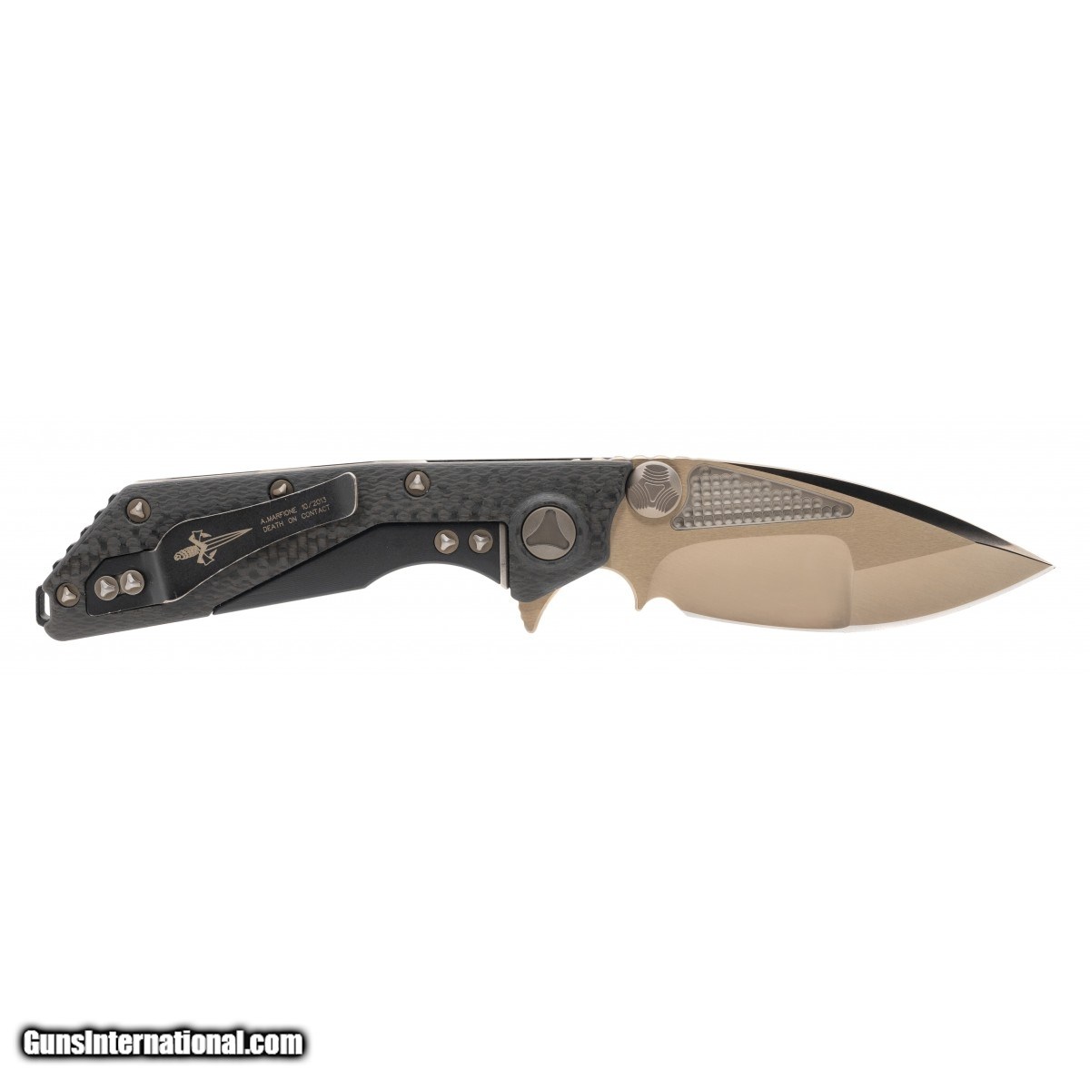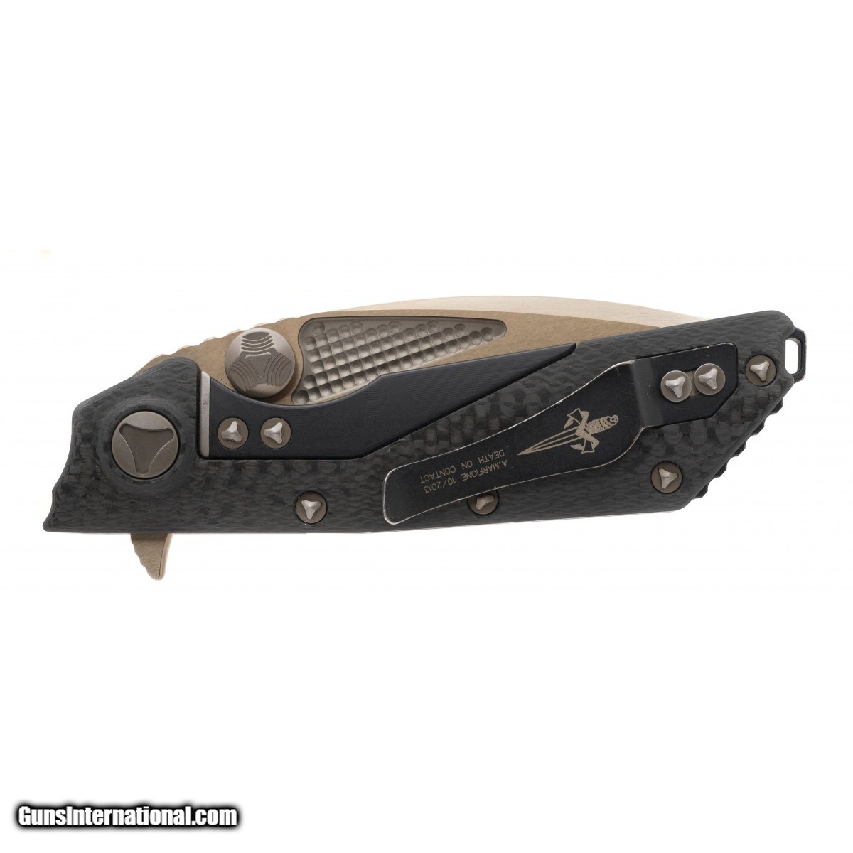 Manufactured in 10/2013. Premium flipper with bronzed high polish compound blade and carbon fiber handles.