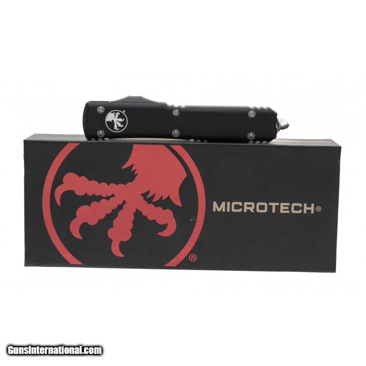 Description: " Microtech OTF knife with 3.35"" blade length and an overall length of 8.35"". Black aluminum handle with apocalyptic blade finish. NEW. SN:287501. UPC: 841768103554. (STOCK PHOTO) SOLD |