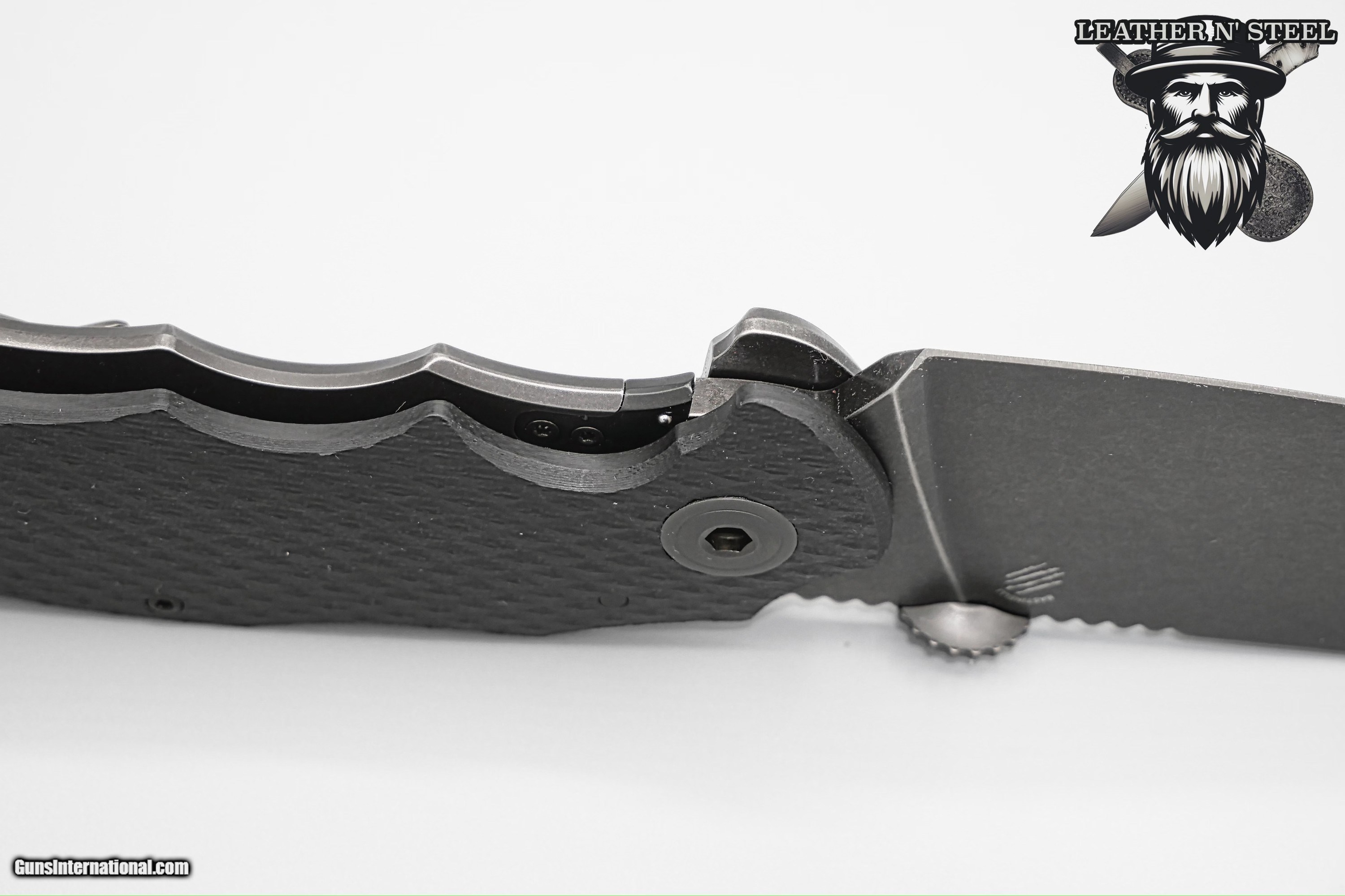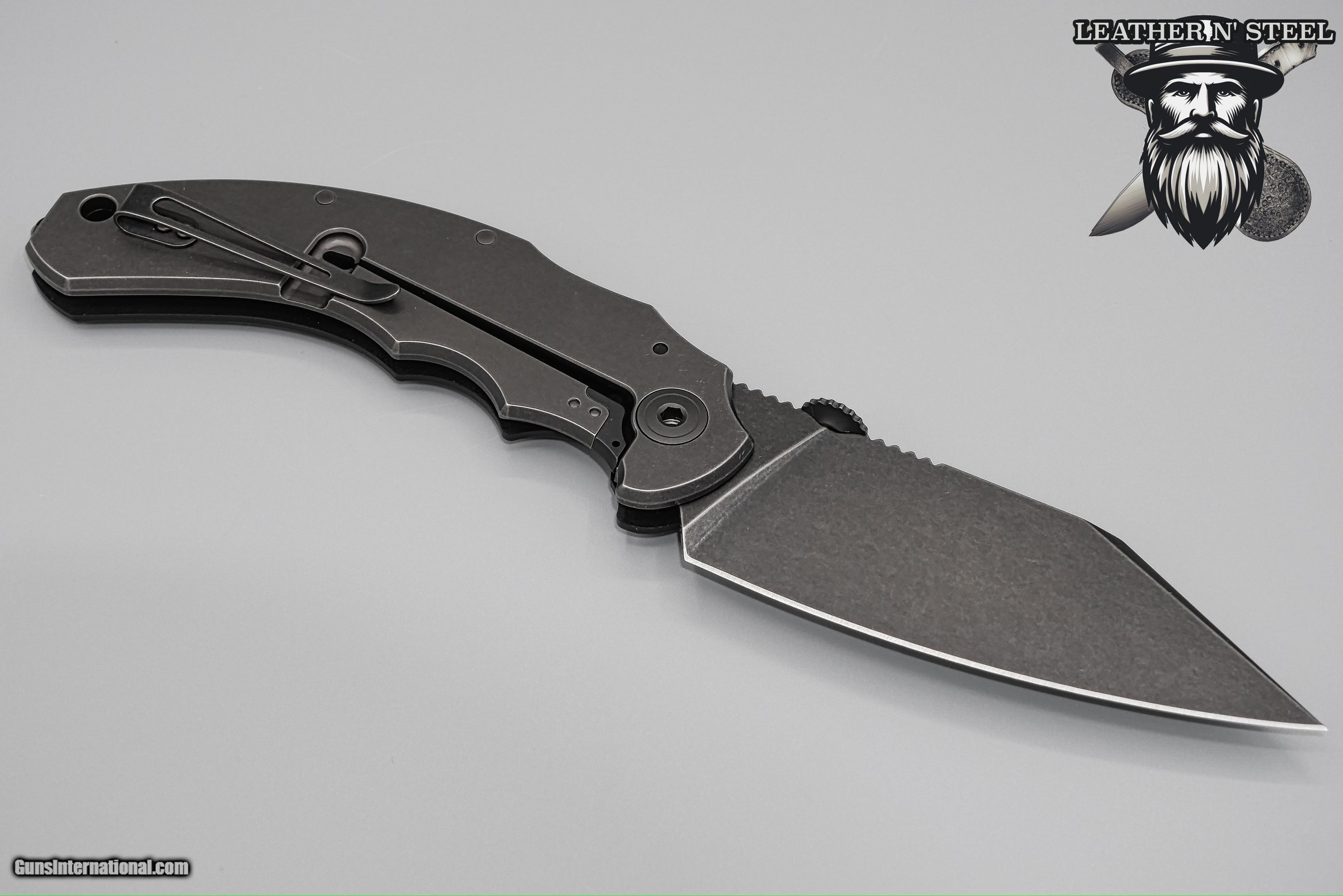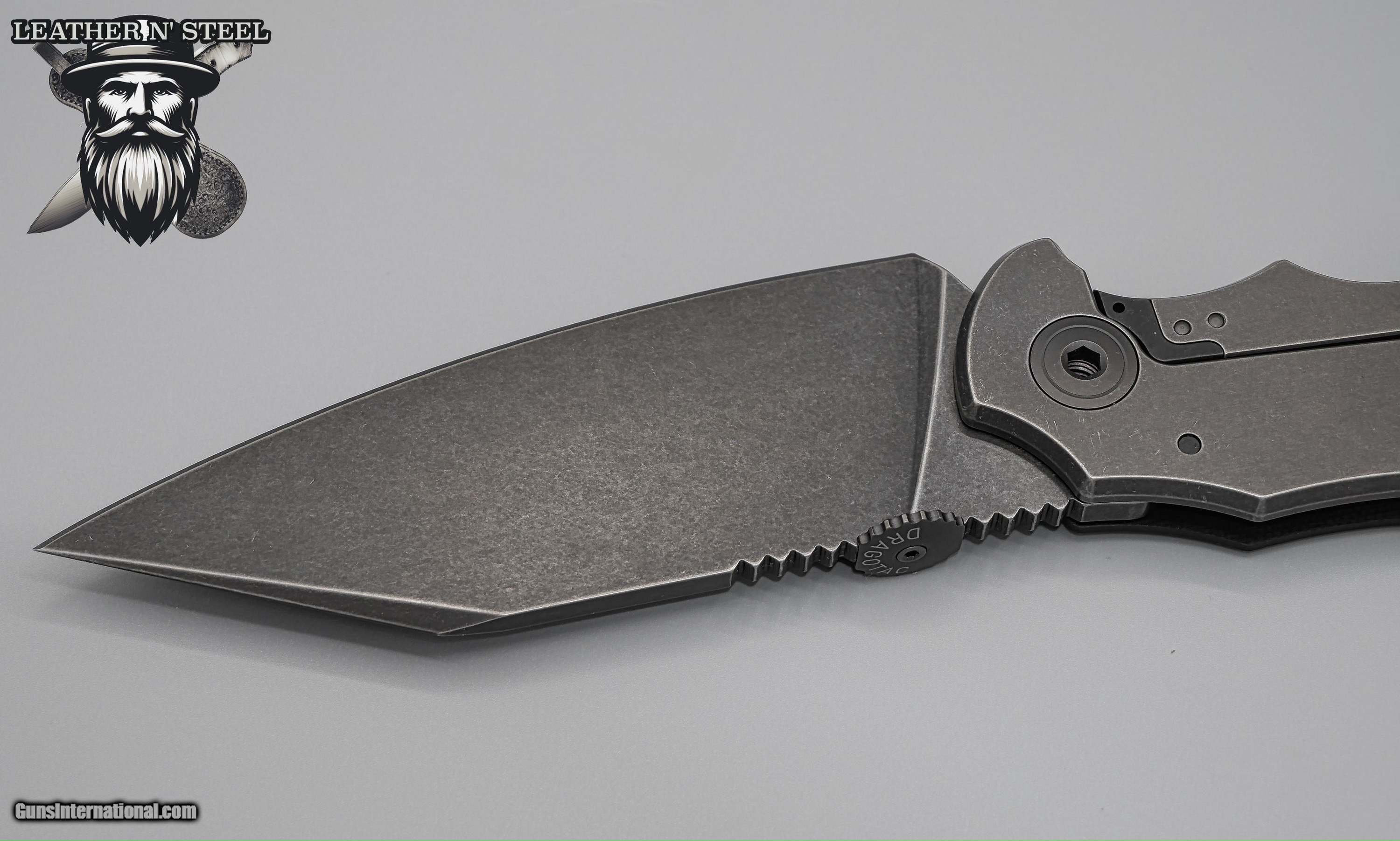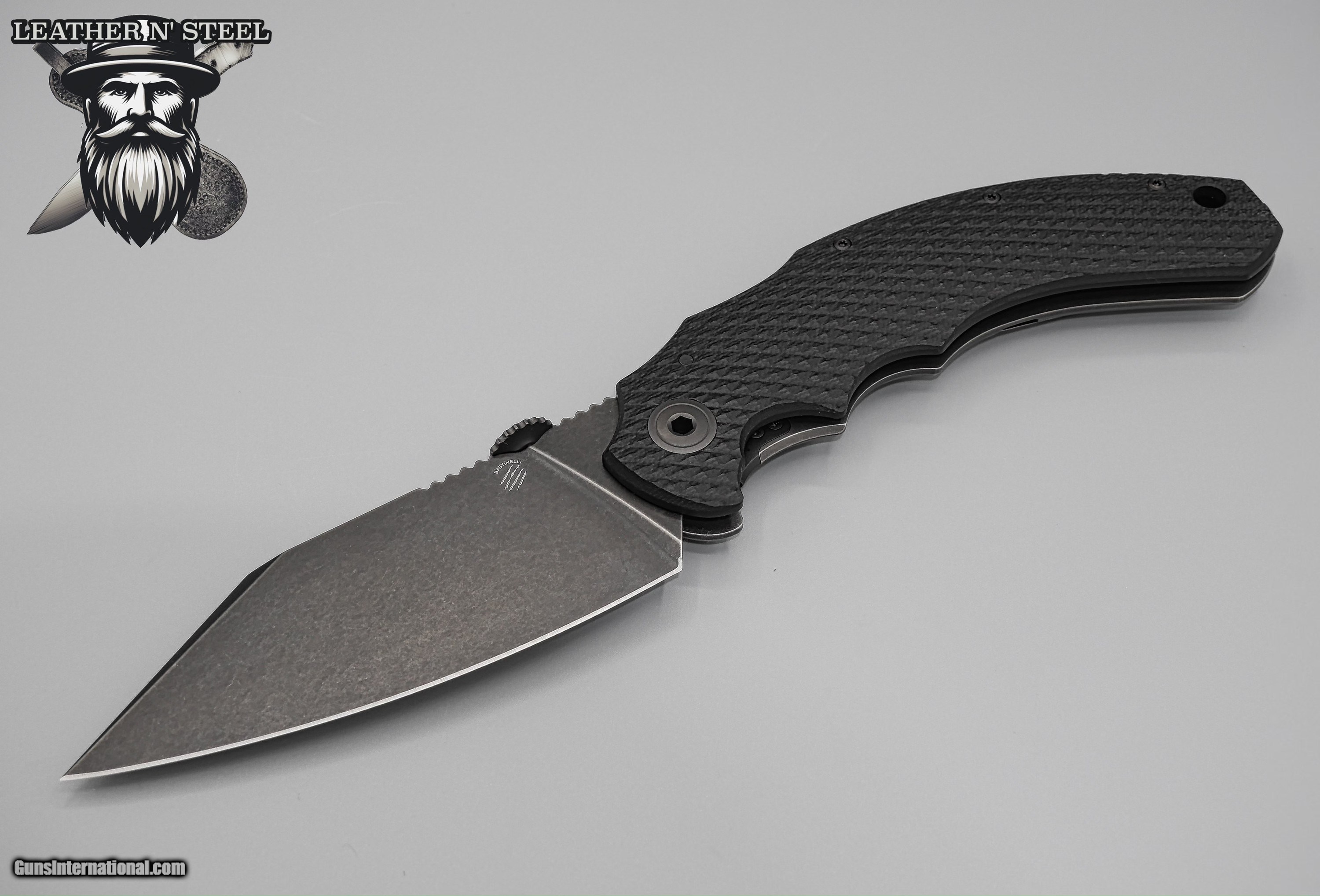 Black finger grooved G10 handle with black stonewash finish titanium back handle