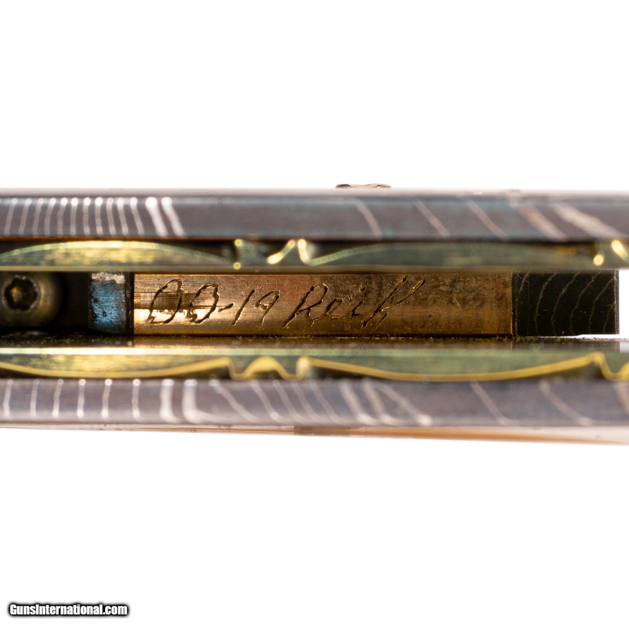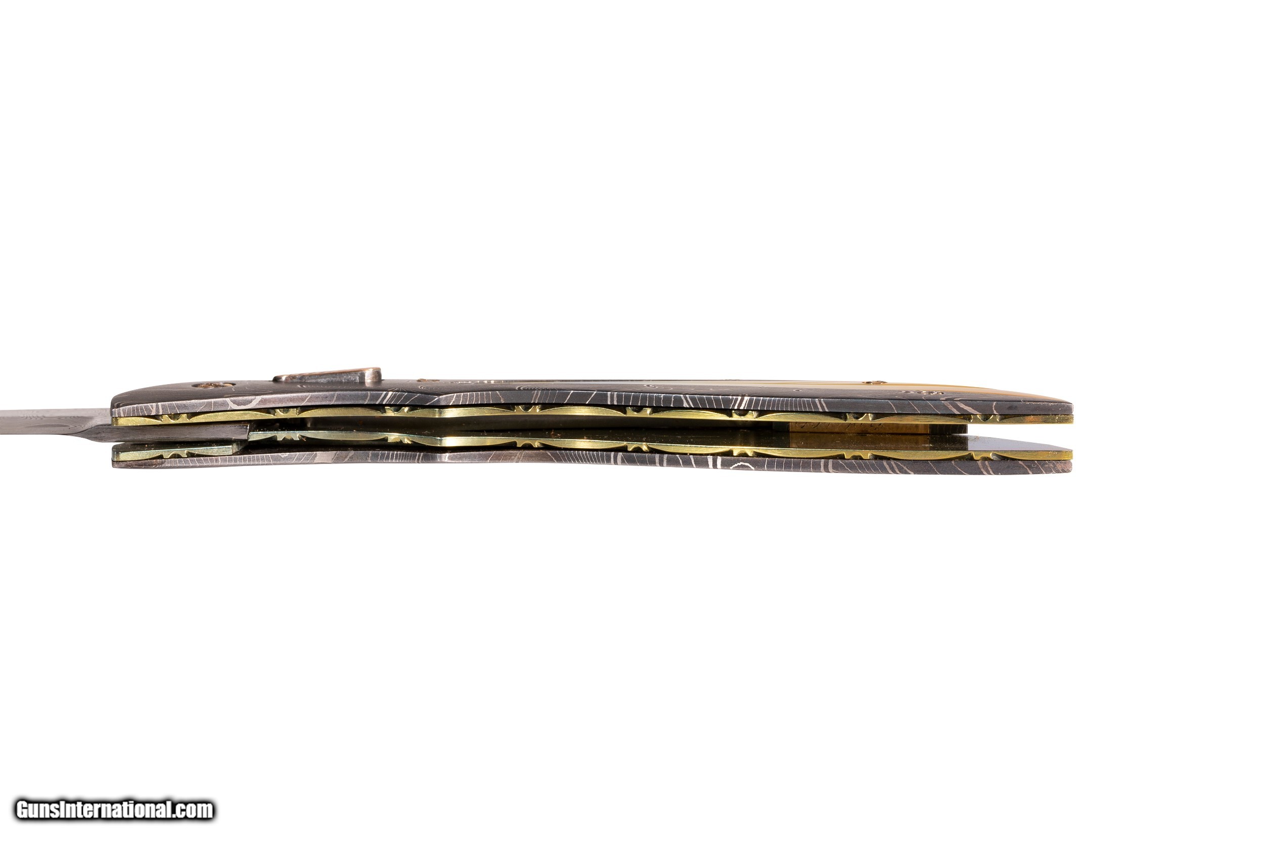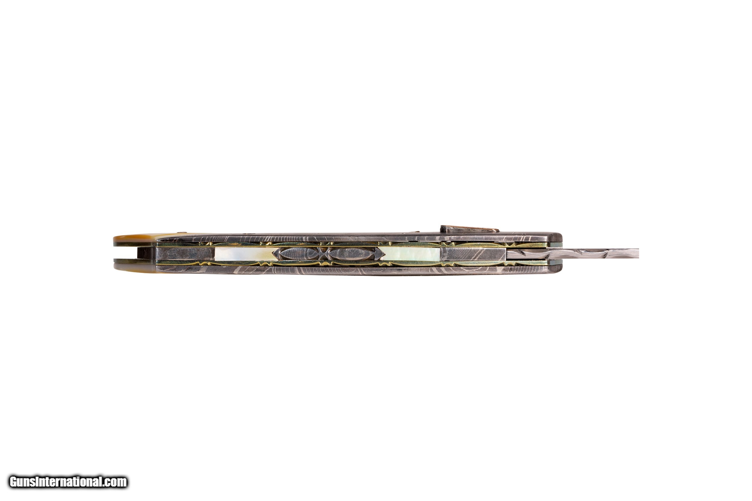 Description: Dale Reif Switchblade Stunning switchblade with damascus steel and mother of pearl. Custom-made by master craftsman Dale Reif. 4 7/8" closed, 8 1/2" open. SOLD |