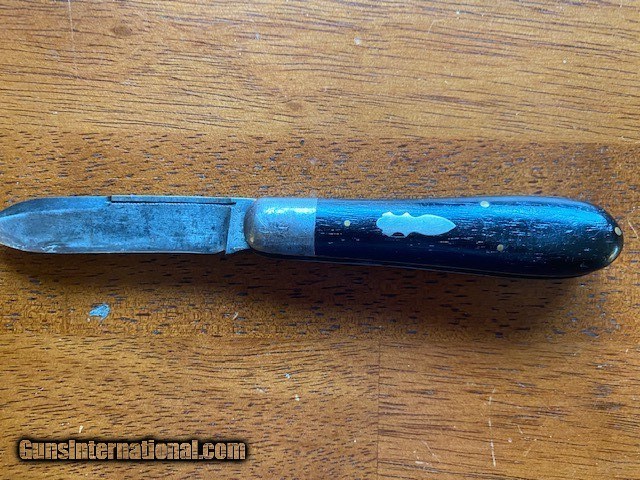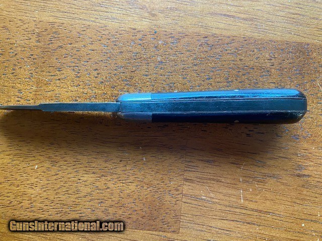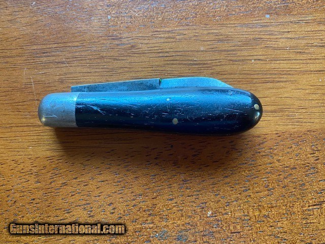 Description: Very good condition Hibbard & Spencer Pocket Knife. Hibbard & Spencer operated between 1865 and 1882, when it became Hibbard, Spencer & Bartlett. Knife dates to that period. Wooden handles, frame, pins and blade all in very good condition. Interesting old time blood groove. Length closed 3 7/8 inches. Length open 6 7/8 inches. 150 year old knife would add to any collection. Shipping USPS Priority to CONUS addresses only for fixed price of $15. Thank you for your consideration. SOLD |