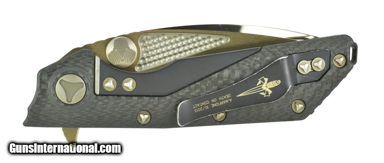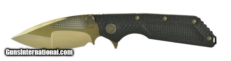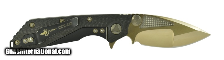 Description: Marfione Customs Death on Contact with bronzed high polish, compound grind blade, bronzed hardware and carbon fiber handles. SOLD |