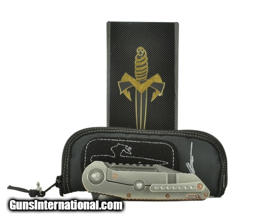 Description: Marfione Warhound. Chad Nichols boomerang Damascus blades, with eggshell finish copper/Ti handle with Damascus accents and copper hardware. SOLD |
