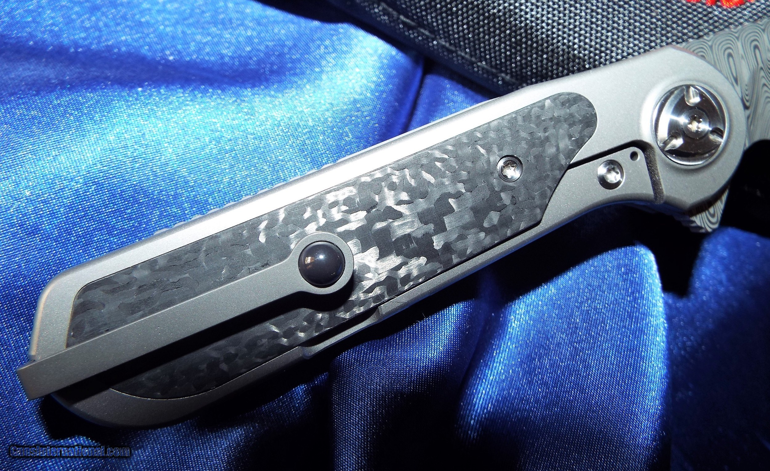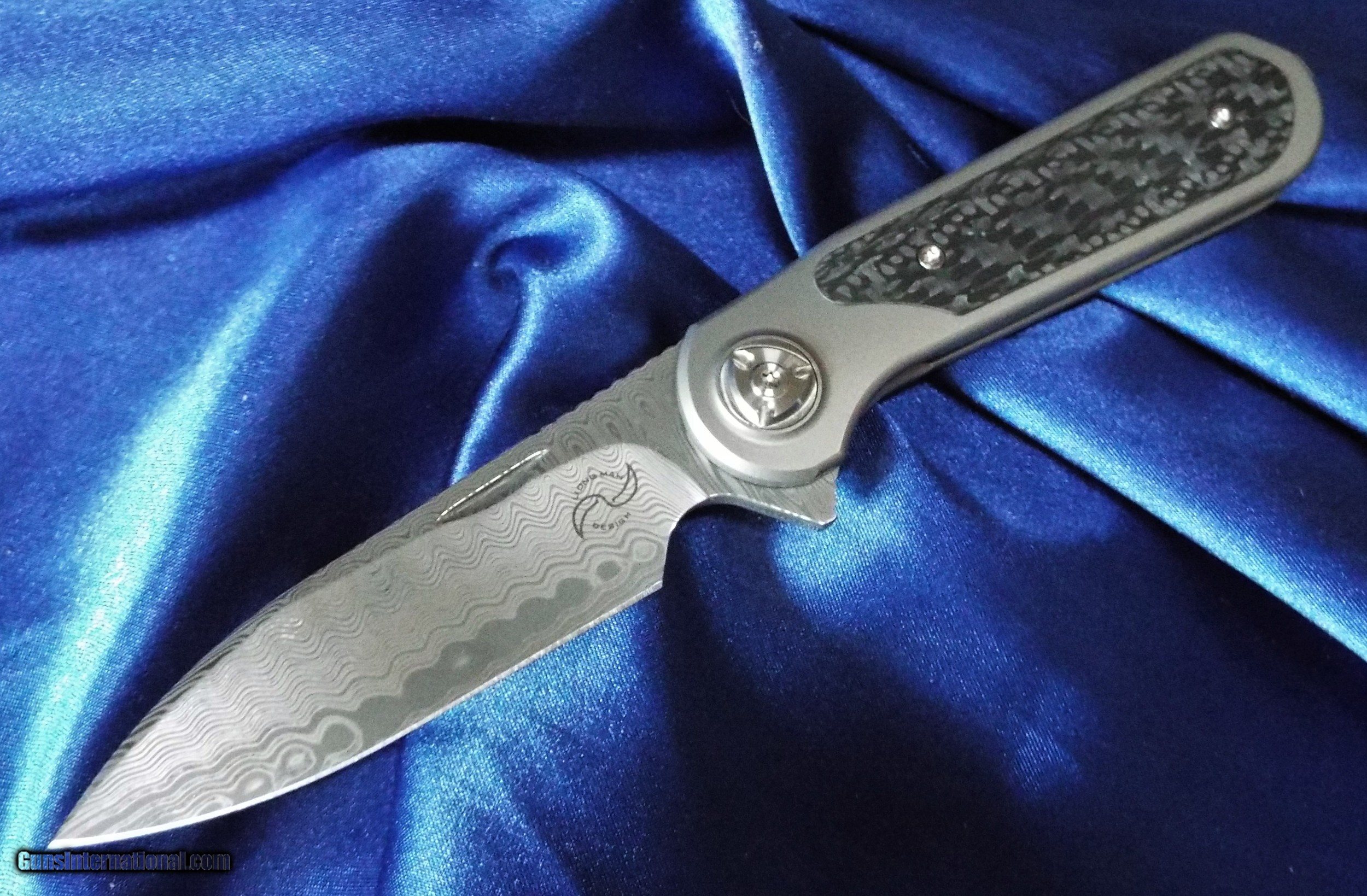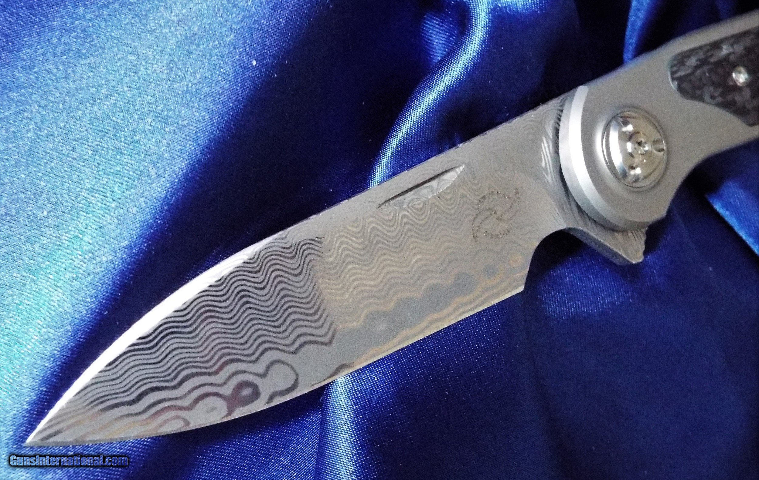 Description: ZULU Damascus Flipper Knife Designed by LIONG MAH ~ DAMASTEEL Blade & CARBON FIBER inlayed Titanium Handles New In Pouch! Zulu Folding Knife, Black Carbon Fiber Liong Mah Designs The Zulu is a smaller EDC folder from Liong Mah inspired by a Zulu slip joint. It features a STUNNING Damasteel damascus stainless steel blade, flipper opening, and a sturdy titanium frame lock. There is also a nail nick on the blade that is functional for opening but it's such a smooth flipper, you'd probably never use it. The contoured matte grey titanium handles are inlaid with carbon fiber and they fit perfectly flush into the frames. The 3/4-length titanium backspacer is jimped for a little additional grip while including space for a hidden lanyard post. A reversible Todd Begg ceramic ball pocket clip and replaceable lockbar insert complete this stellar package. It's just the right size to disappear in the pocket while still being very useable when deployed. Specifications Blade Length: 3.25" Cutting Edge: 2.875" Closed Length: 4.25" Overall Length: 7.50" Blade Material:Damasteel Stainless Steel Blade Thickness: 0.145" Blade Style: Drop Point Blade, Grind: Hollow, Blade Finish: Satin, Handle Material: Titanium with Black Carbon Fiber Inlays, Handle Thickness: 0.49" Locking Mechanism: Frame Lock, Pivot Assembly: Bearings Pocket Clip: Titanium (Tip-Up, Right/Left Carry) Weight: 4.0 oz. Designer: Liong Mah Made by Reate Knives PRACTICAL SIZE FOR EVERY DAY CARRY, AND CLASSY ENOUGH FOR SPECIAL OCCASION! SHIPPING$9 USPS Priority mail No International shipping! 3% additional for Paypal or Credit card DEALER ITEM ~ NEVER SOLD~NEVER CARRIED~ NEVER SHARPENED For purchase please call Erica / Self Defense Inc. 772-349-0334 (Florida) SOLD |