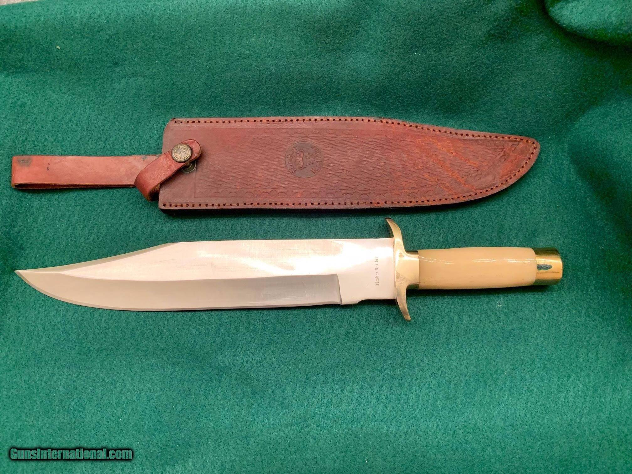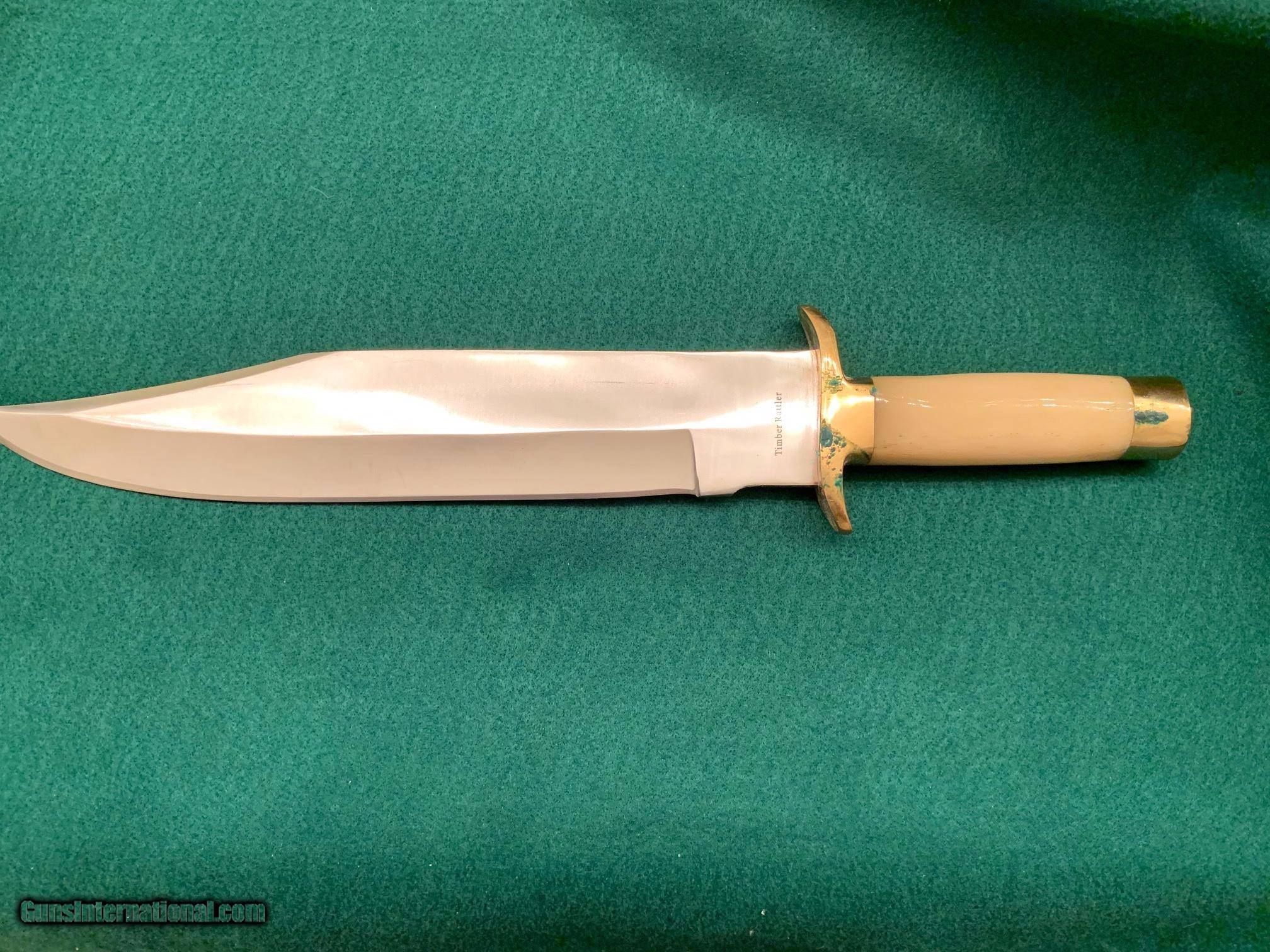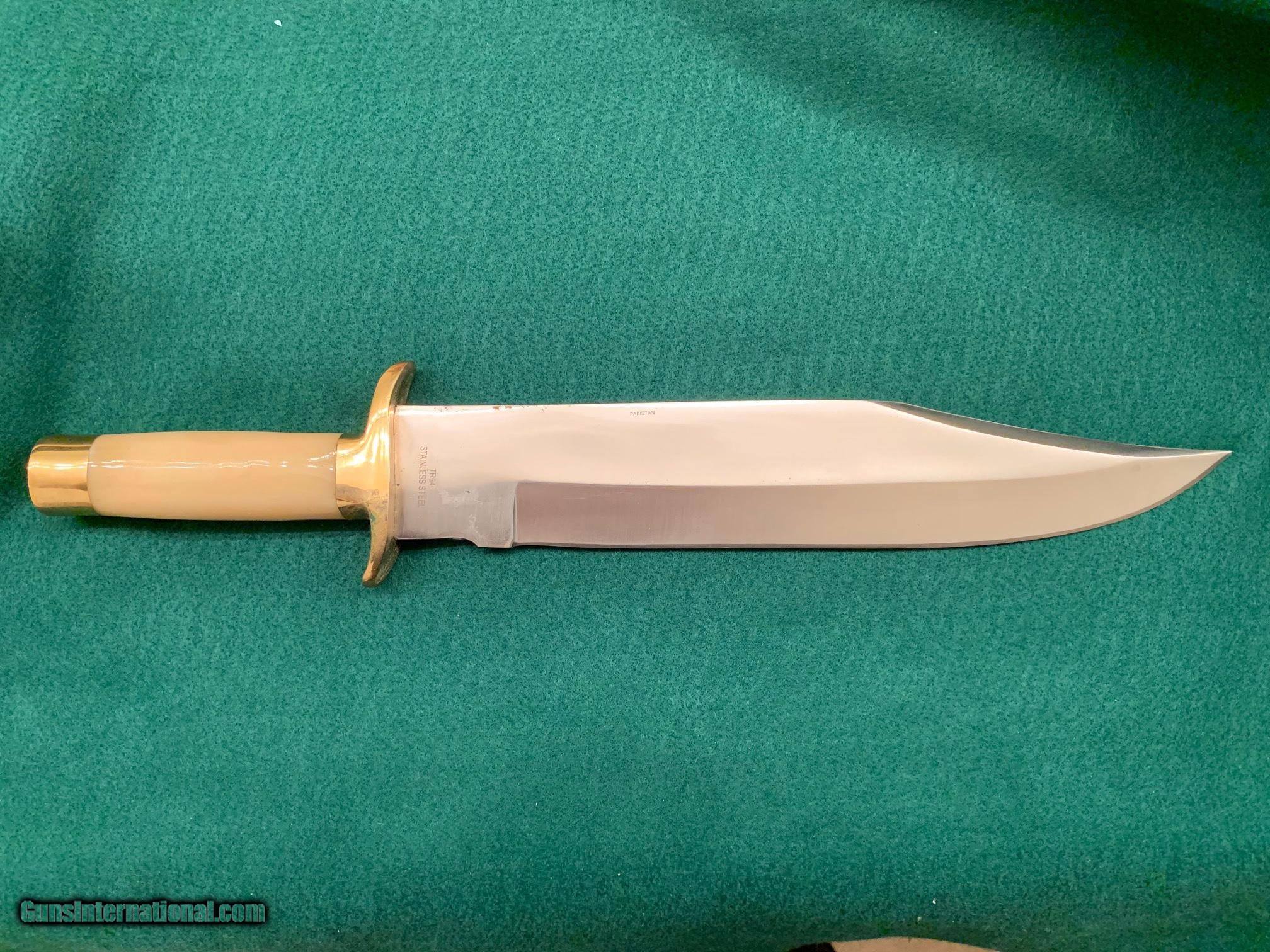 Bowie Hunting Kive tr64 stainless steel Length16 1/4 inches simulated ivory grip with brass quillian and heel with leather case