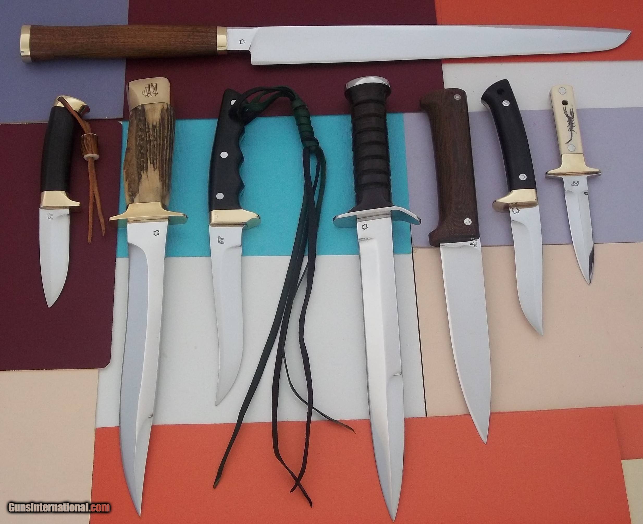 Description: Superb hunting knife by Jean TANAZACQ model Tronçay 1 from the 1990's, like new, chocolate leather sheath, beautiful mirror-polished blade, brass guard. The knife and sheath set was made by Jean Tanazacq in the Ardennes in 1988. The blade is stamped with the wild boar, emblem of the Ardennes, as well as Jean TANAZACQ. Jean Tanazacq Dean of French Knifemakers Vintage & Scarce Tronçay I,5-5/8" stainless steel blade of 440-C stock, solid double brass guard, solid brass butt cap. Produced in 1991, only one owner. 6mm flat-sole stainless steel construction blade with a mirror finish. Hand-sewn brown leather sheath with belt loop and snap closure. The sheath and blade feature the artisan's logo: a wild boar from the Ardennes! And on the other side, the knife is marked with the map of France! The whole thing is in mint condition, as if it had just been manufactured! Superb and exceptional! Owning a Jean Tanazacq model should be a must. This example is spectacular in its simplicity and perfection; you have to hold it in your hands to fully appreciate it! NOTE: All listed Jean Tanazacq knives comes with the original color Xerox copy of the dossier/file stating the knife's charracteristics, description and exact dade of manufacture ( it is in the French language) so that any potential buyer will know exactly what they are getting. No retunn, no exchange, no trade. Sold "AS IS". Free shipping USPS with tracking number and insurance. Thank you for looking. Price: $2,695.00 Contact Seller |