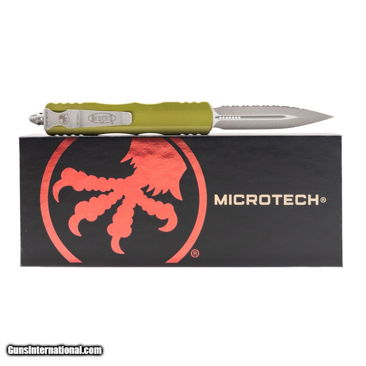Description: " SN: 16770. Microtech Dirac D/E OD Green Knife with a blade length of 3"" and overall length of 7.5 NEW. UPC: 84176814451 SOLD |