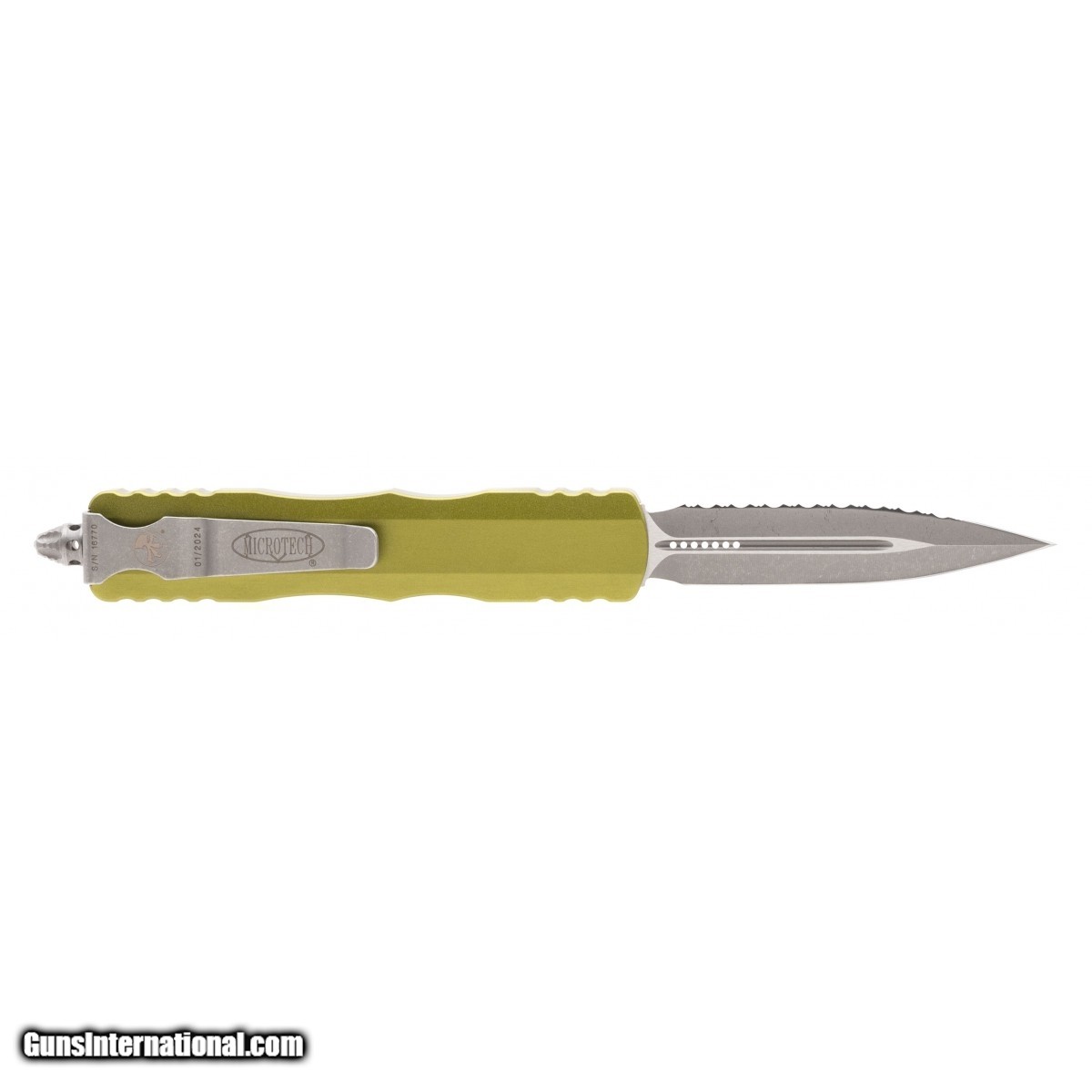 SN: 16770. Microtech Dirac D/E OD Green Knife with a blade length of 3"" and overall length of 7.5 NEW. UPC: 84176814451