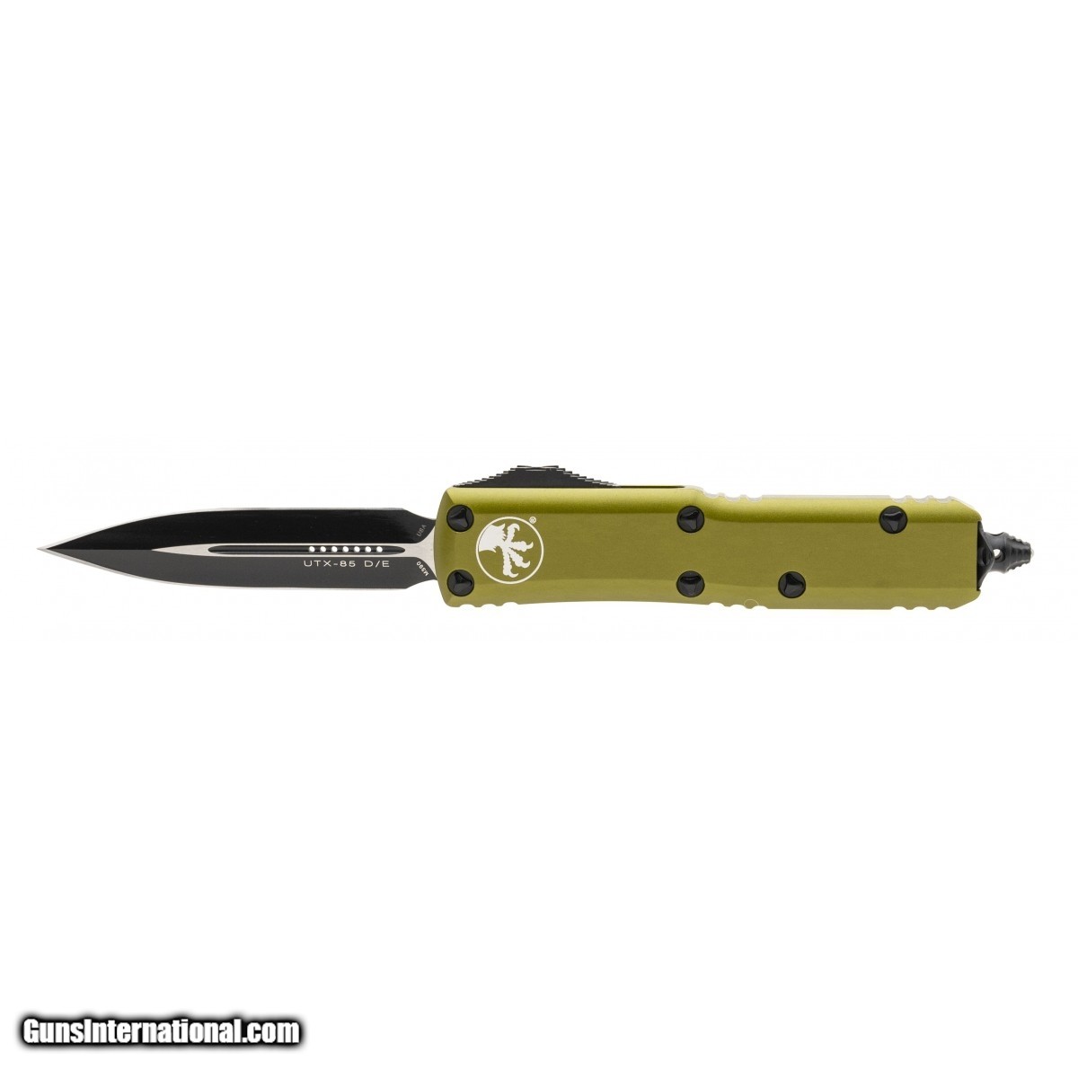SN: 109301. MicroTech UTX-85 D/E ODG Standard Knife with a length of 3"" and Overall Length of 7.5"". New. UPC: 841768118428