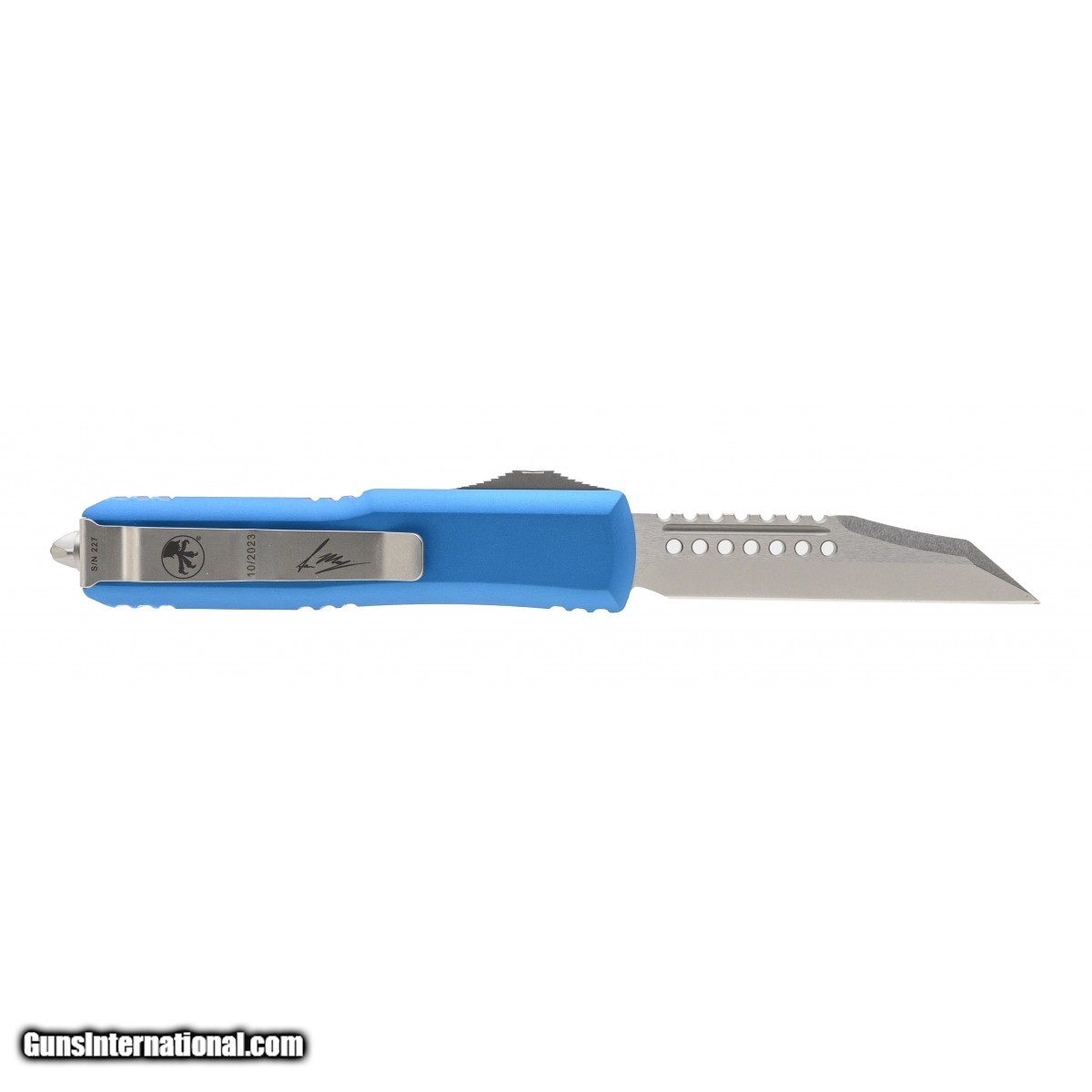 Description: " Microtech UTX-85 Warhound Blue Knife with a blade length of 3"" and overall length of 7.5 NEW. UPC:841768161554 (STOCK PHOTO) SOLD |