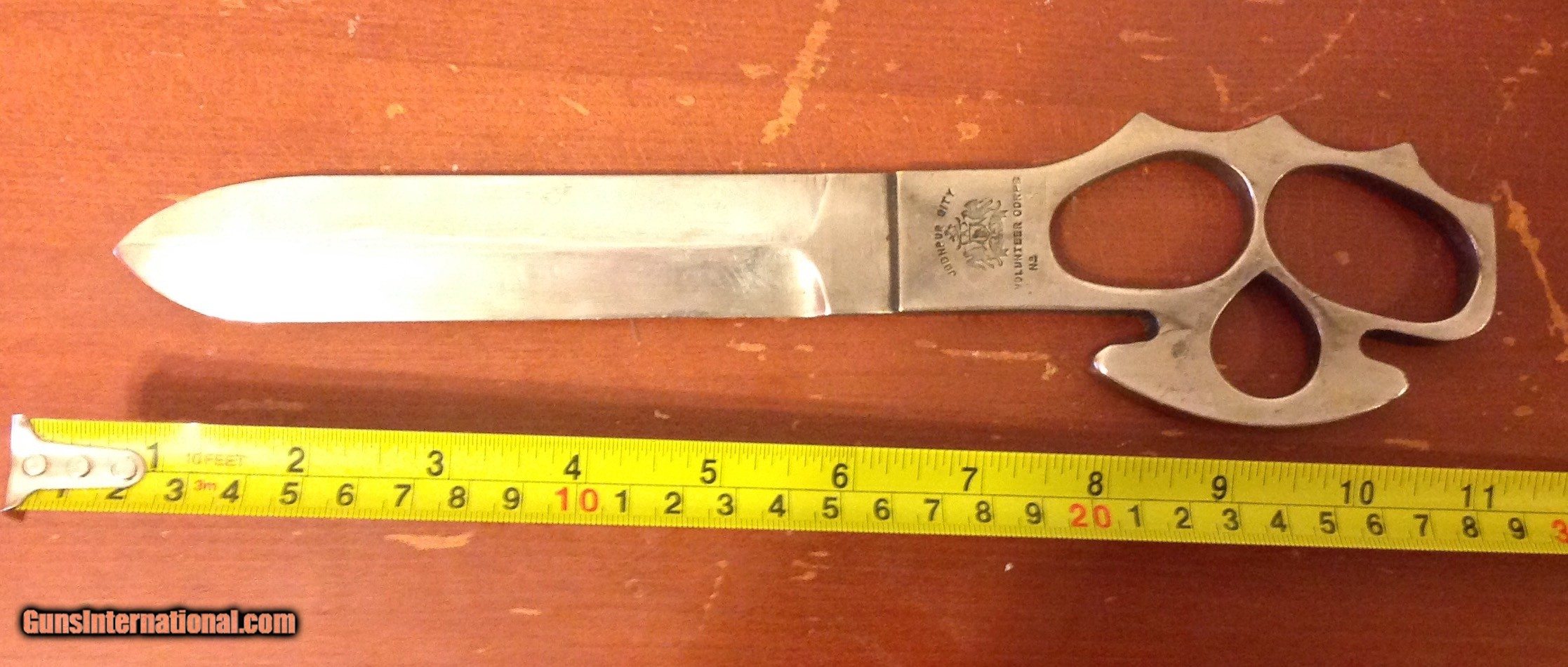 Description: I am offering a Death Head presentation award Knife with it's original mint sheath. If you collect military fighting knives or presentation knives this is extremely rare one. The blade has never been cleaned or sharpened . I believe the real value of the knife is $1,800.00 to $2,500.00 I am now looking to sell this complete package, I welcome trades or part trade and cash. any question please ask and I will consider responsible offers. ????? SOLD |