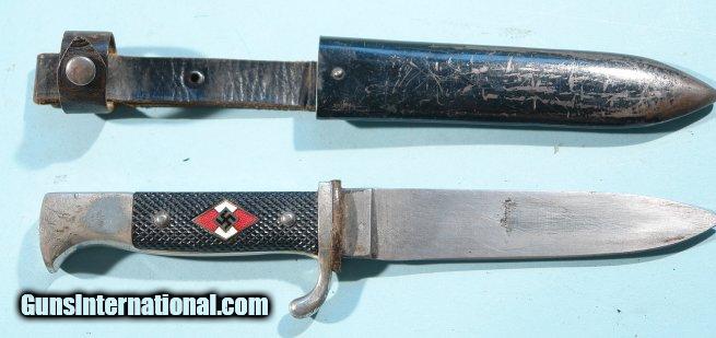 PRE WW2 RZM HITLER YOUTH DAGGER DATED 33 AND SCABBARD.