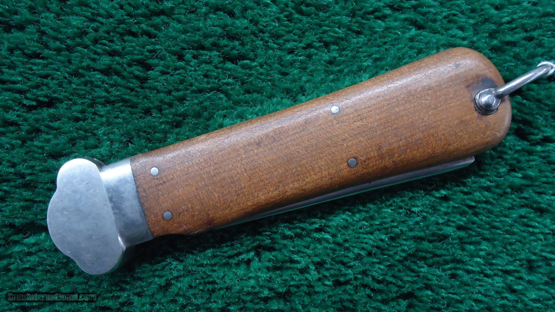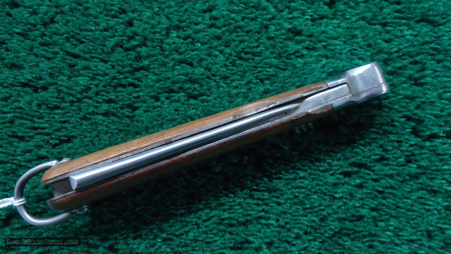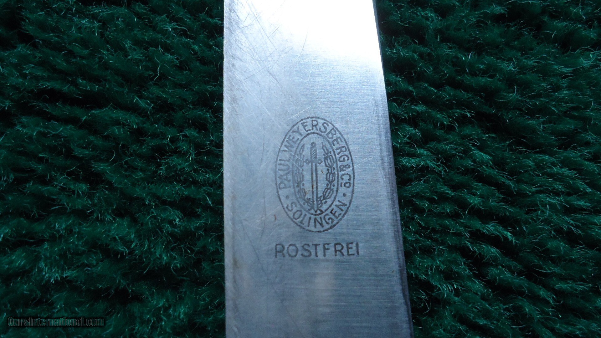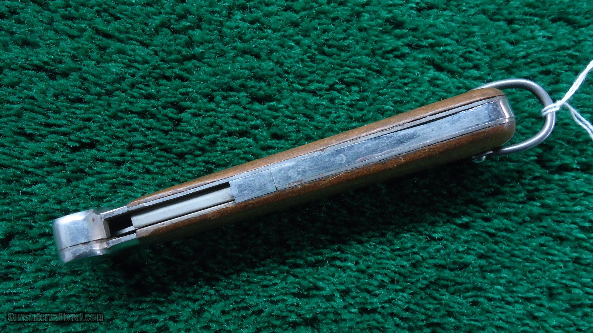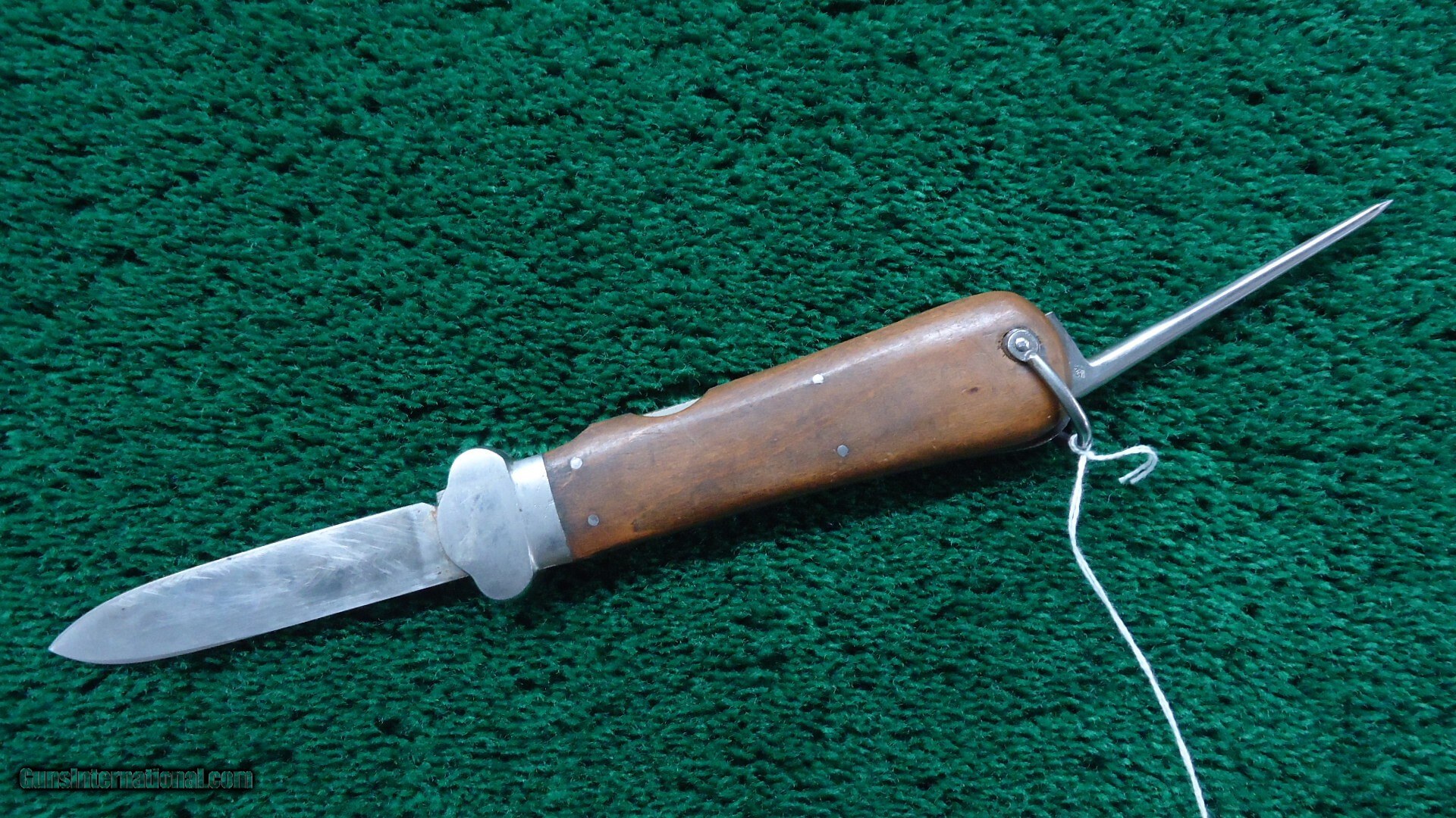Description: Paul Weyersberg & Co. maker's mark stamp and the Solingen mark. Blade length is 4 inches and the spike is 3-1/2 inches with an overall length 10 inches. The knife is in good condition but the locking mechanism is completely missing so the blade will not lock. Plenty of good parts to repair another one. Leroy Merz Antique Firearms specializes in antique and vintage Winchesters and other fine American firearms. Since 1965 Mr. Merz has taken part in the world of firearms and has been a contributor to many well known reference books. We have hundreds of additional guns in every price range at our home online. Search for Merz Antiques in google. Price: $400.00 Contact Seller |