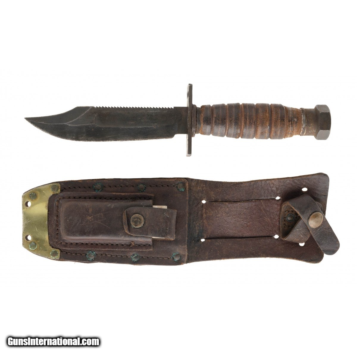 US pilots Survival Knife in very good condition. Made by Camillus N.Y. 8-1979.Leather sheath has sharpening stone.