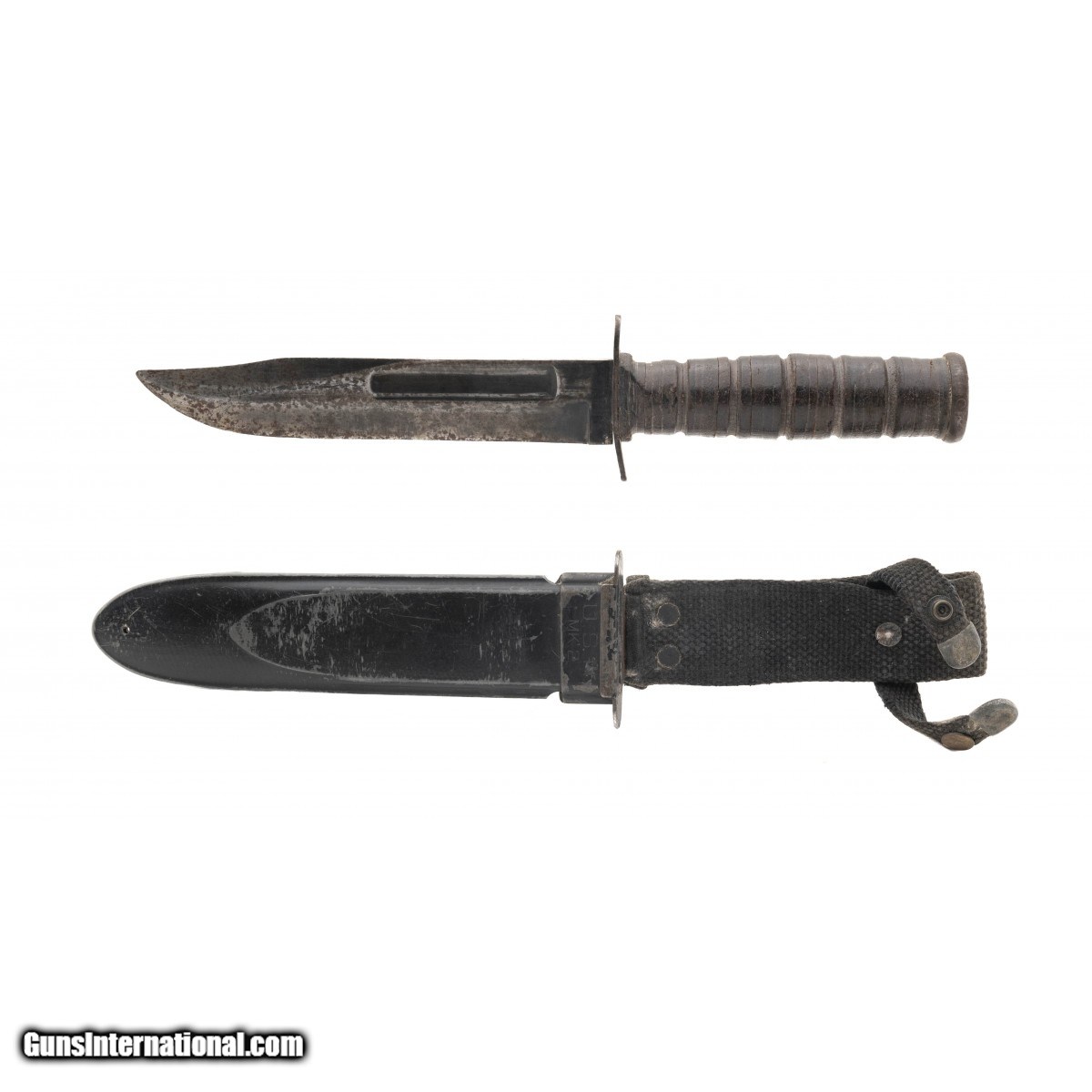Description: " US Navy MK 2 fighting knife.Blade is splotchy but complete.Crosguard is marked Camillus,NY. and U.S.N. Mark 2.Scabbard is marked U.S.N. MK 2 SOLD |