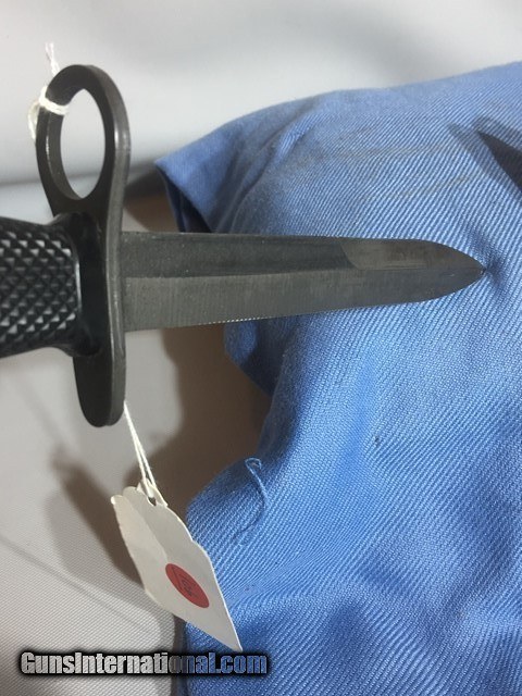 Description: FOR SALE IS A M7-M16 BAYONET , WITH A 63/4 PARKERIZED BLADE AND A OVERALL LENGHTH OF 12 INCHES. THE BAYONET FEATURES BLACK PLASTIC GRIPS THE BAYONET IS MARKED U.S. M7, AND B00.THE BAYONET IS IN VERY GOOD CONDITION. PRICE$100.00, OBO. 3 DAY EXAM PERIOD, QUESTIONS-504-908-8245, OR CHRISCURIORELICSGMAIL. COMSHIPS USPS PRIORITY MAIL.BUYER PAYS SHIPPING/INSURANCE.. I DO NOT COLLECT TAXES. SOLD |