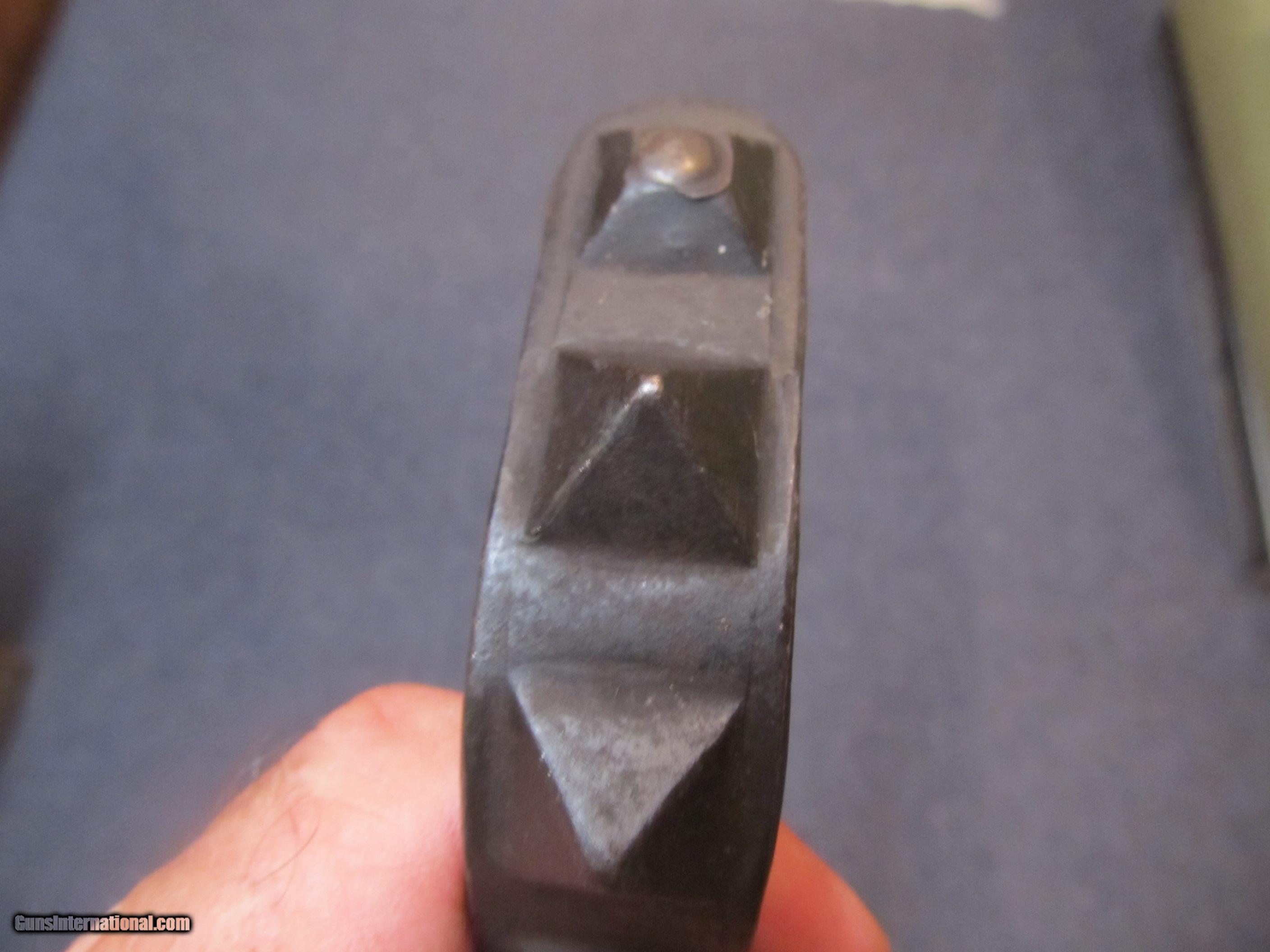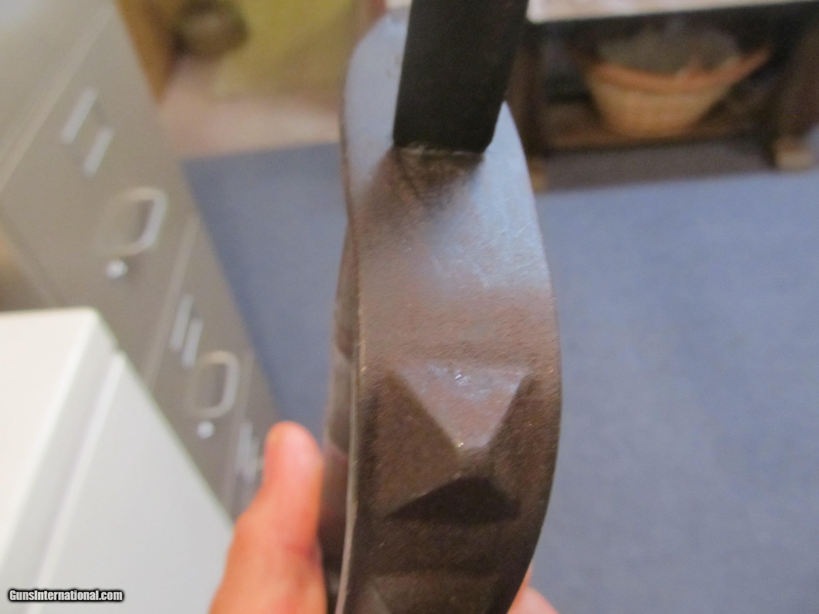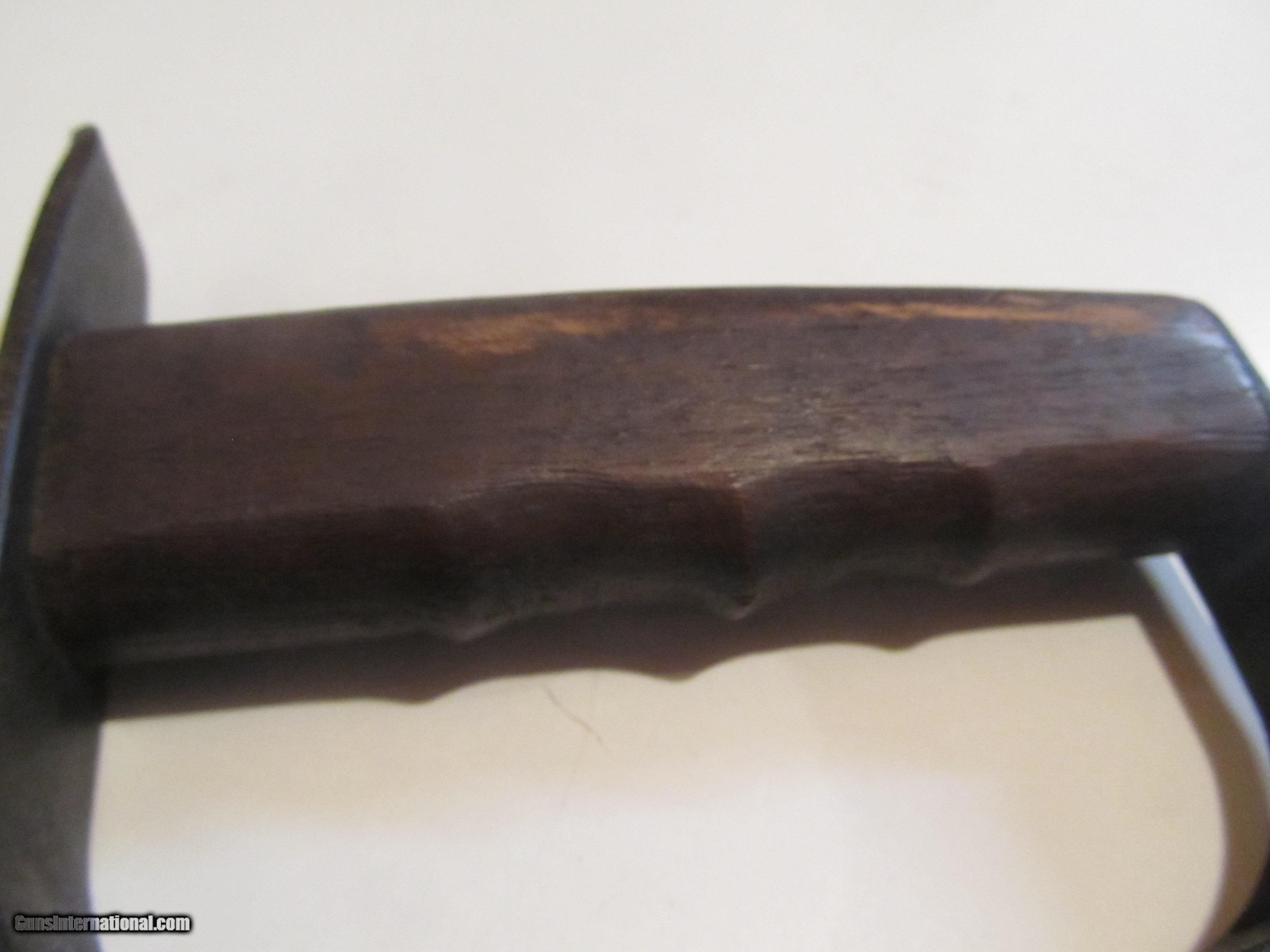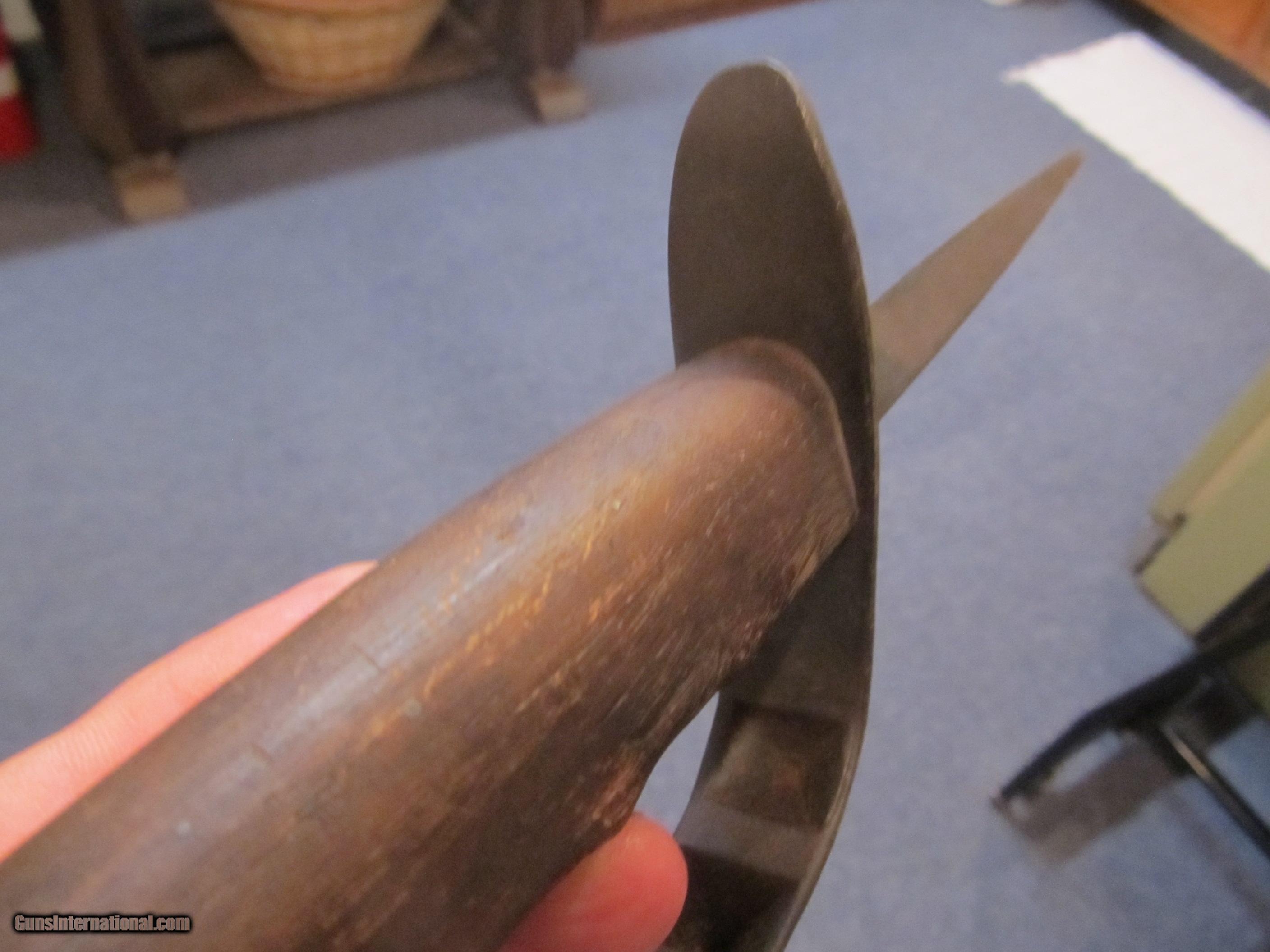 Description: Gunuine 1917 US trench knife not a repo. In great shape with no cracks or chips in wood. Metal is smooth, tip of blade looks like it may have small amount of light pitting maybe from blood stain. Shipping is free. SOLD |