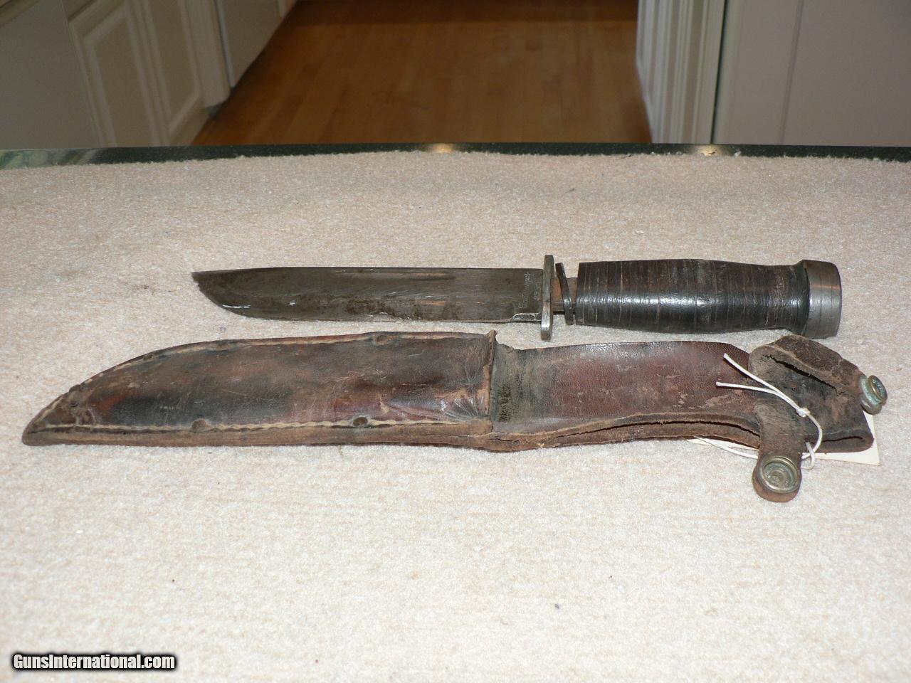 Description: #1 A dug up early WWII K Bar-blade is rusted I think by salt water-no scabbard. $40 Good display piece. #2 WWII K Bar-Cattraugus with scabbard. Missing a washer, but overall good. $65. I have many others, please look on this ad for other ads by same seller. Collector W SOLD |