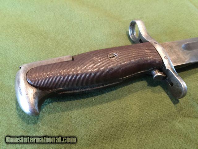 Description: I have a very nice UFH (Union Fork Hoe) 1943 for M1 Garand with scabbard. It comes with sheath marked with the flaming bomb. Very nice piece. SOLD |