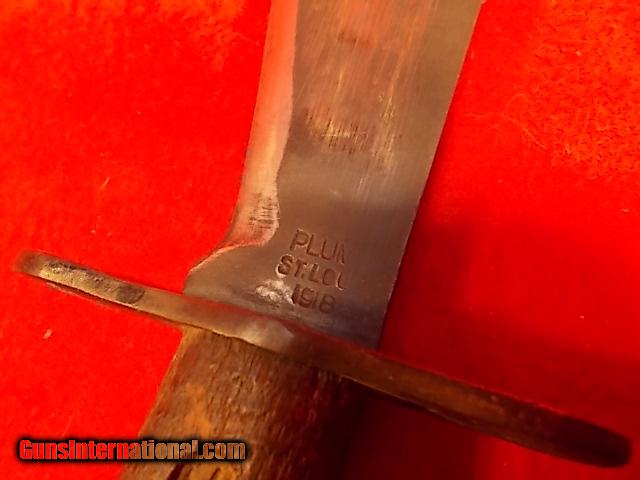 Description: US MODEL 1917 BOLO TRENCH KNIFE, "PLUM , ST. LOUIS" 1918 WITH SCABBARD. Not a repro! Excellent condition, SOLD |