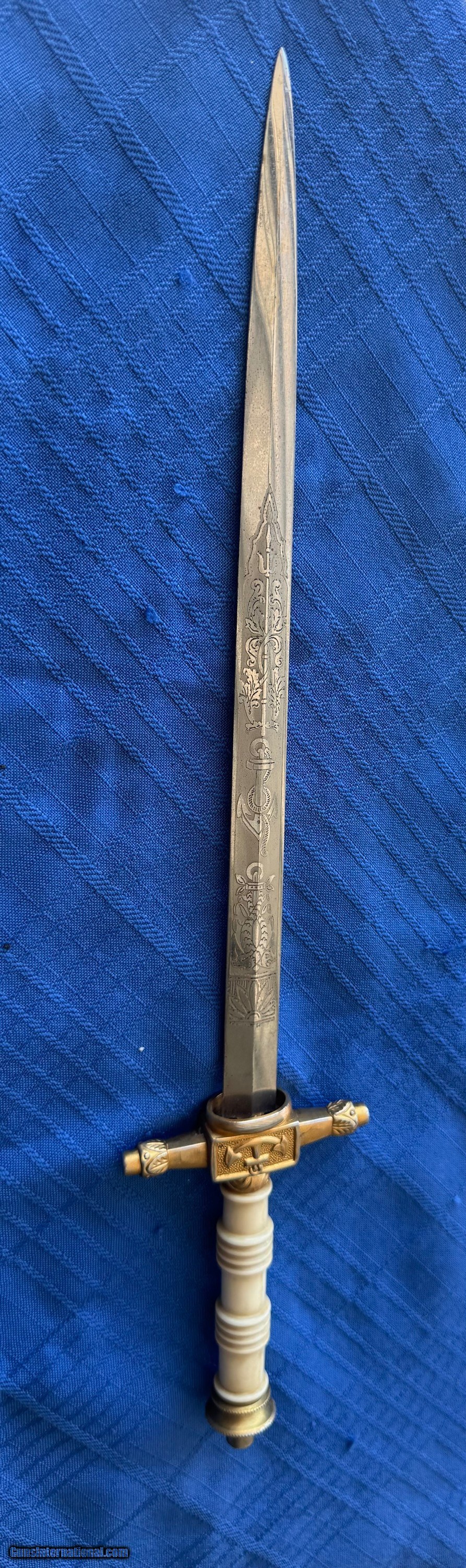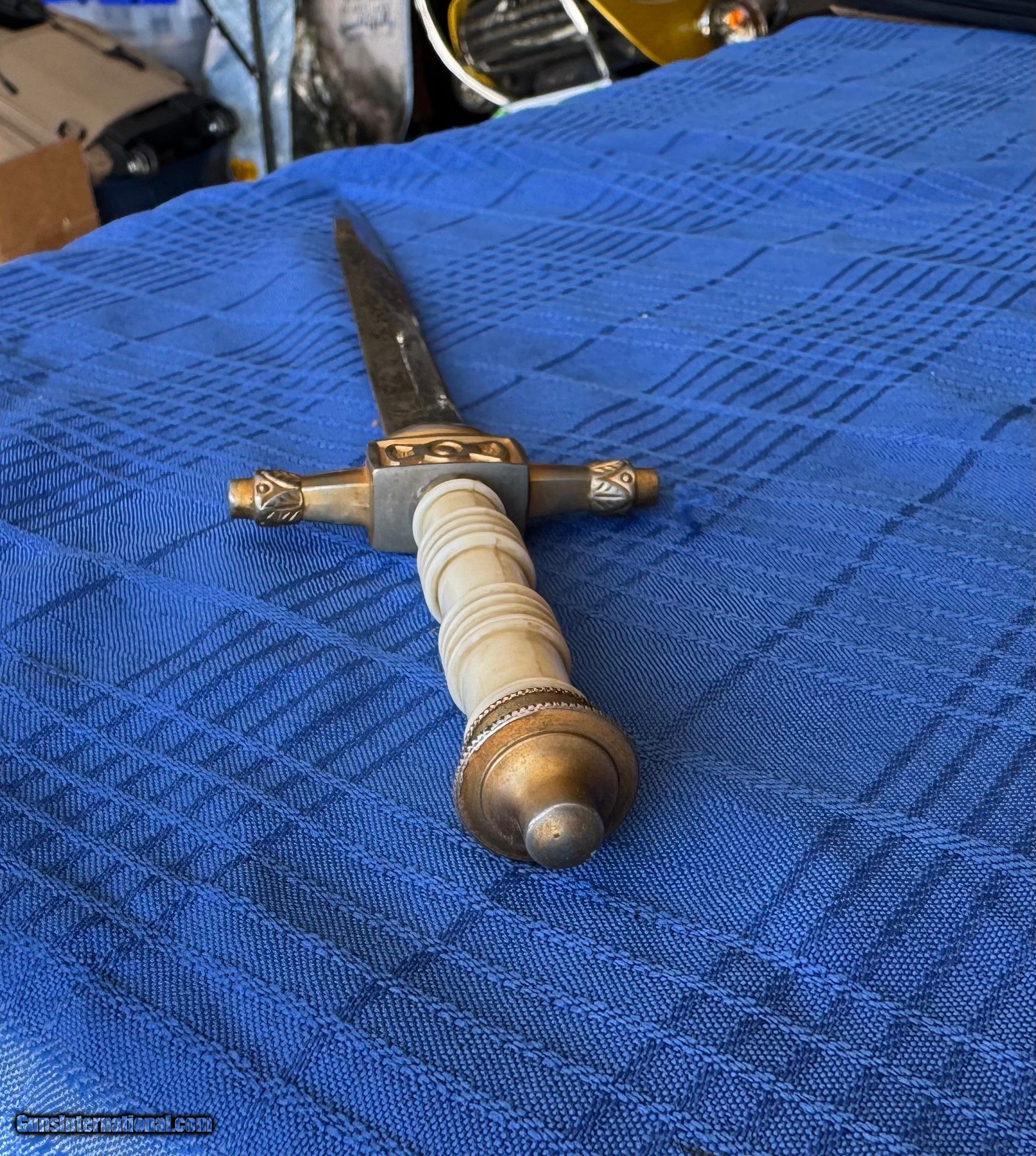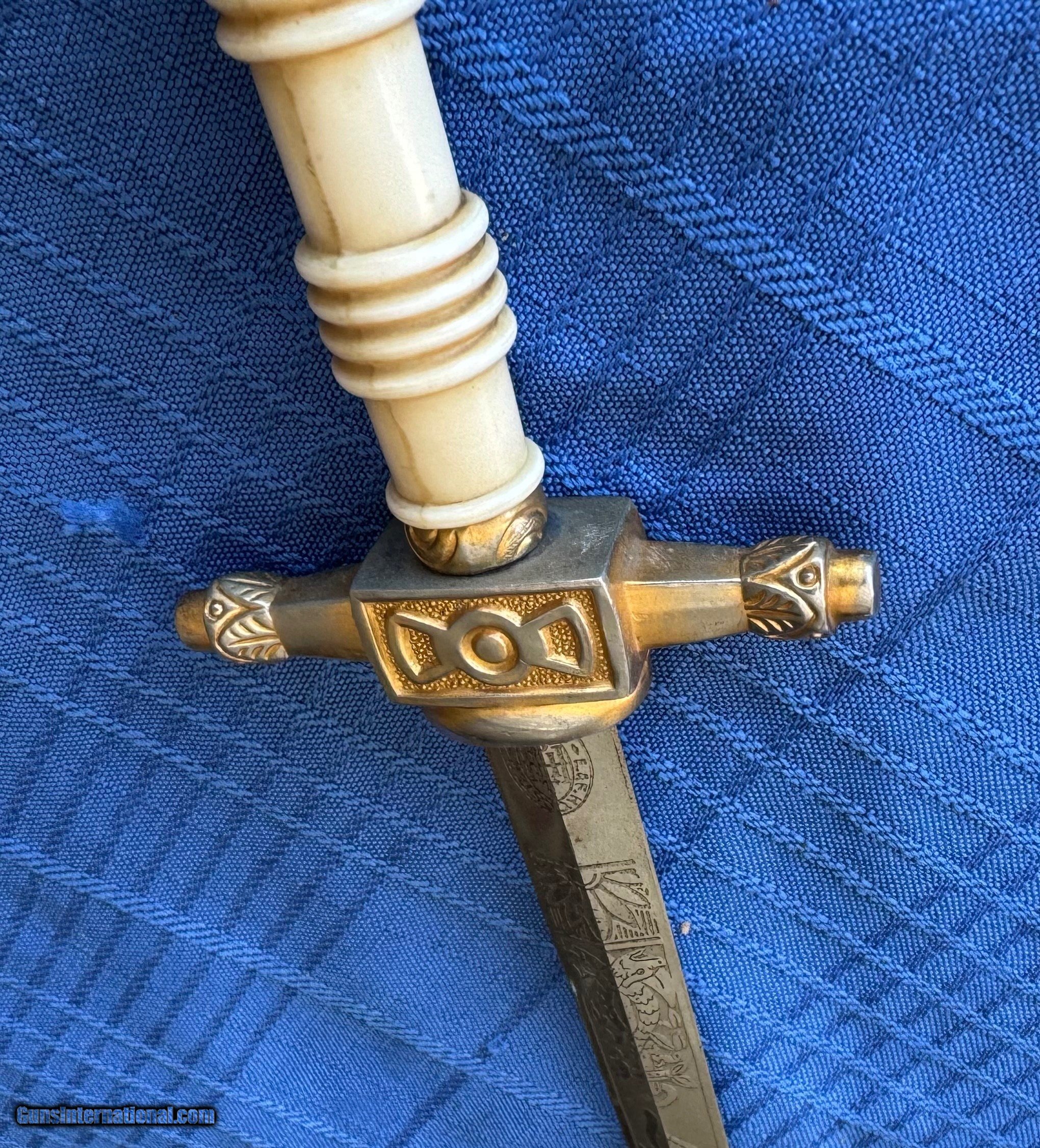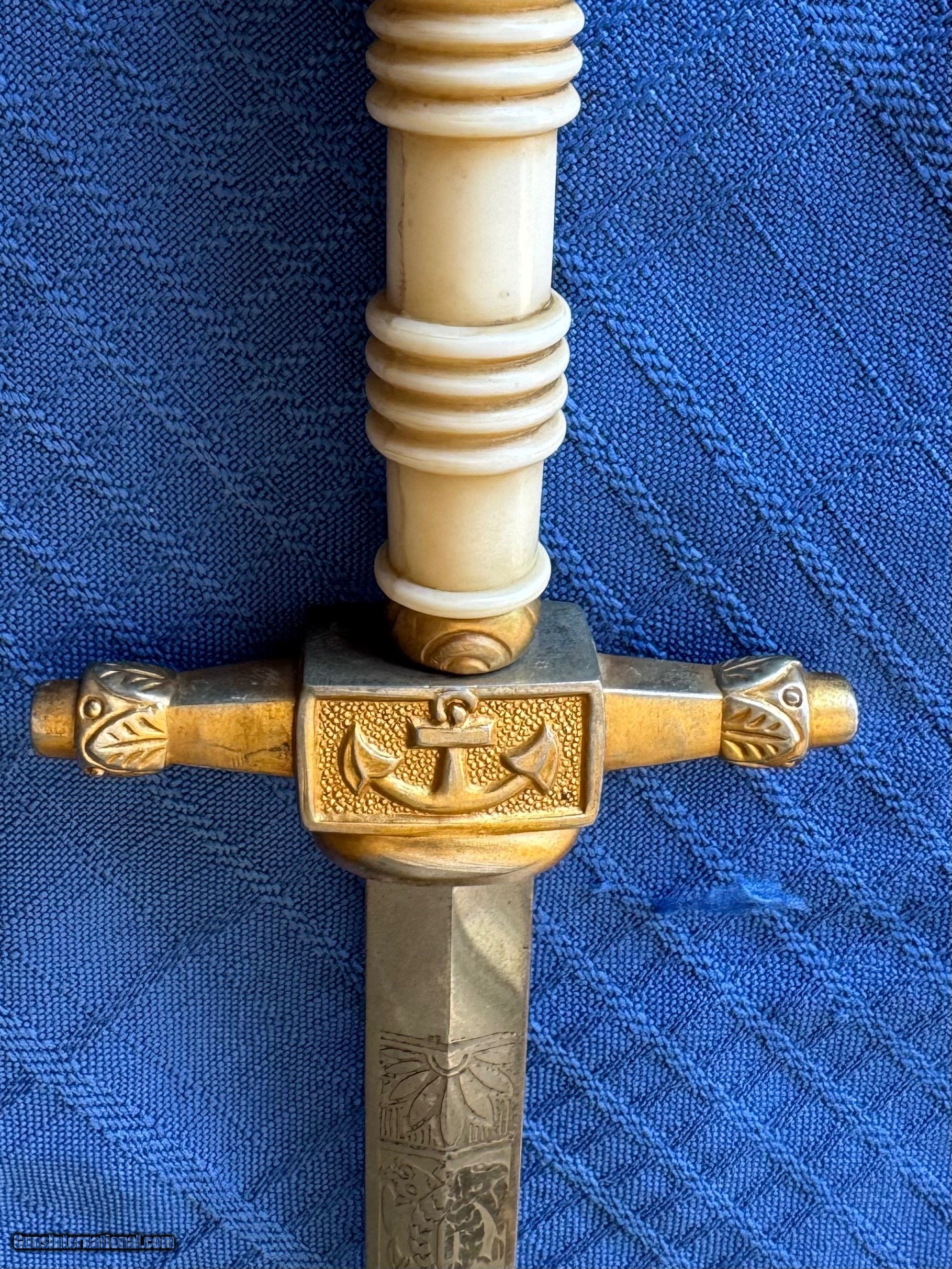 Description: Here's a excellent example of a Naval Dagger ! Not sure of its Origin ? Looks to be definitely a Naval Dagger . It's in excellent original condition. There's No Scabbard. Just the Dagger Only ! Please review my photos and email me with any questions? 3 day inspection as allways ! Thank you, Little Jo Price: $195.00 Shipping: $39.00 Buy Now Contact Seller |