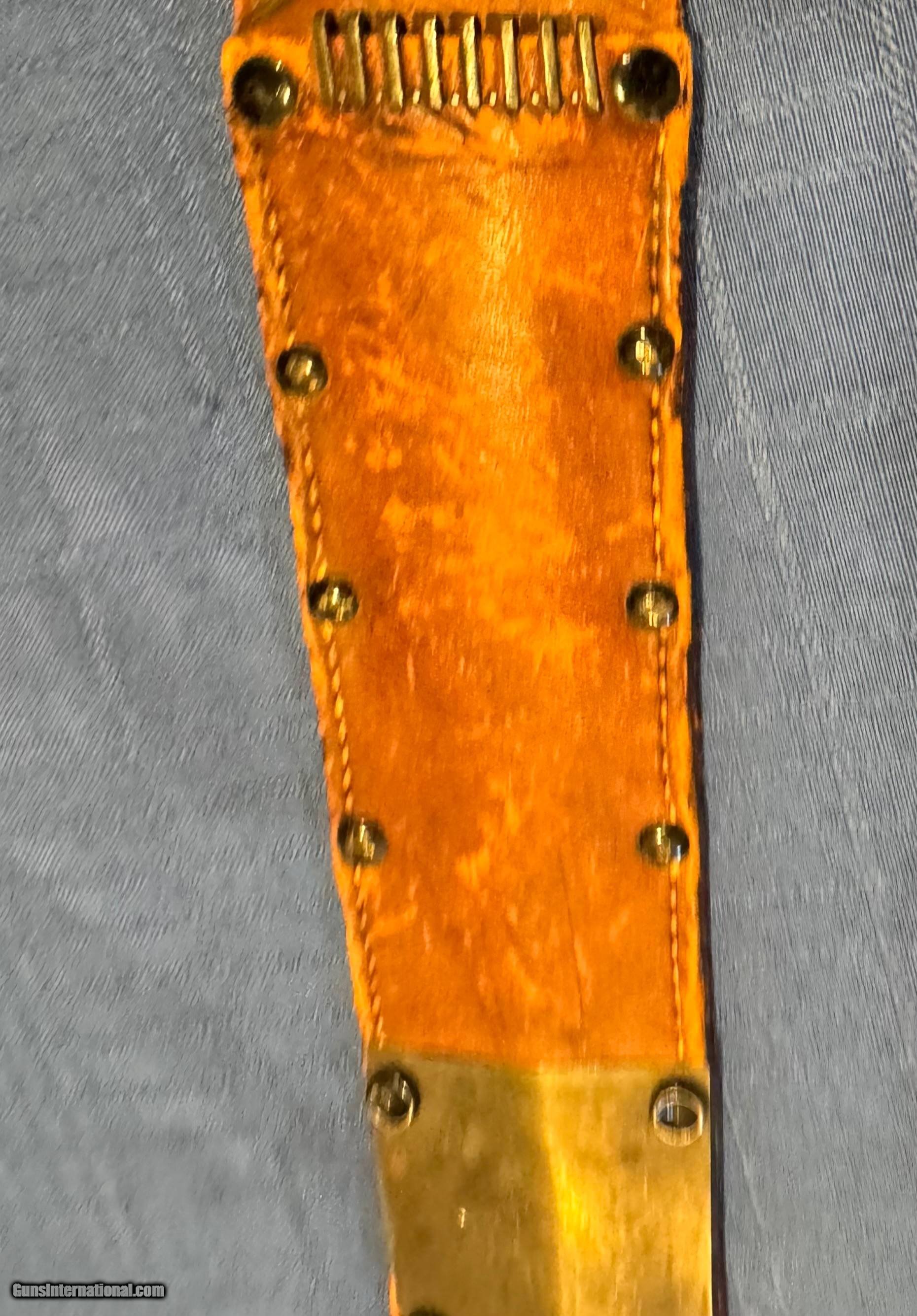 Description: Here's a very nice example of a Leather Scabbard for a WW2 M3 fighting knife ! This is a sterile example of. See the books on M3 W W2 Knives for reference. Original ww2 scabbard in excellent condition. Please review my photos and email me with any questions? 3 day inspection as allways ! Thank you, Little Jo Price: $450.00 Shipping: $49.00 Buy Now Contact Seller |