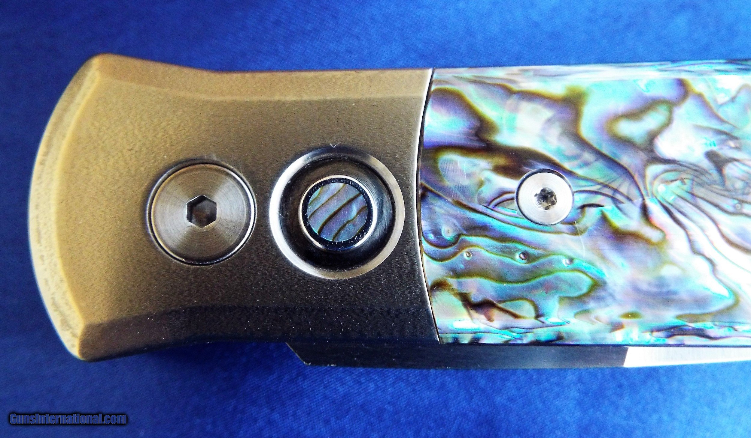 Description: **NEWEST RELEASE** APRIL 2020 (1 of only 6) CUSTOM PRO-TECH GODSON ~ PAUA ABALONE~ BRONZE ANODIZED ORANGE PEEL TITANIUM ~ AUTO KNIFE ~~~~~ Description: Orange peel finished titanium frame with bronze anodizeing, matching titanium clip on back, satin finished 154-CM blade, awesome jewelry grade PREMIUM PAUA ABALONE on both sides, matching abalone push button. Blade is 3.15" with an overall length of 7.56". Packed in a beautiful custom wood box for prememium presentation. & Pro-tech's limited lifetime warranty. Only 6 of these knives were available, each is a unique combination of STUNNING translucent ABALONE set in titanium! So esentially its a one of a kind! MADE IN USA This is a dealer item, NEVER SOLD ~ CARRIED~ OR SHARPENED. THIS KNIFE HAS A TYPICAL PROTECH SUPER SNAP WHEN OPENING... IN MY BOOK, SECOND TO NONE!! RETAIL $900 SHIPPING IS $10 USPS PRIORITY MAIL CONUS ~ NO INTERNATIONAL SHIPPING FOR IMFORMATION OR ORDERING PLEASE CALL: ERICA / SELF DEFENSE INC 772-349-0334 EST SOLD |