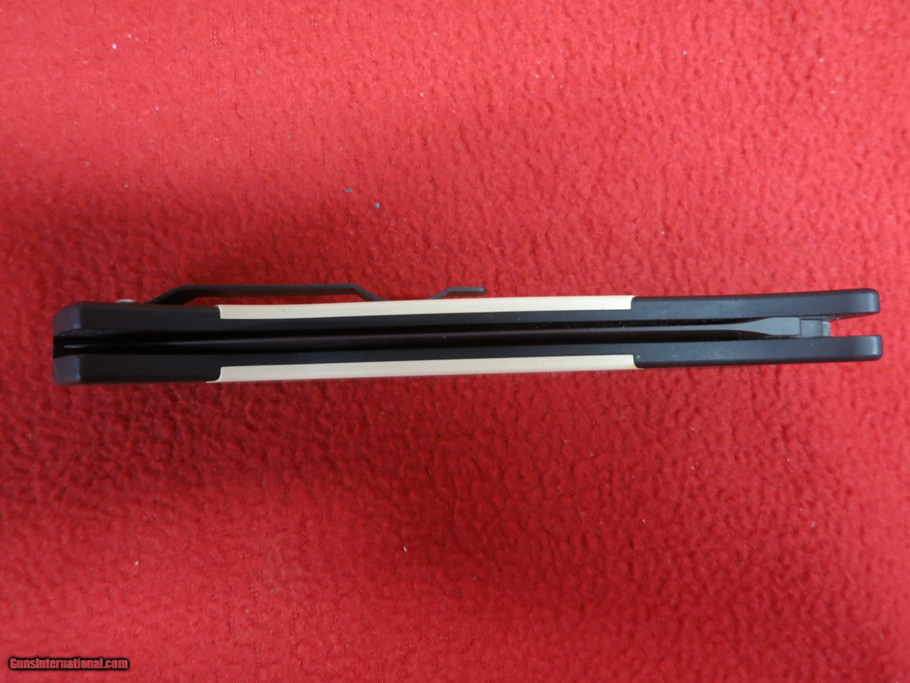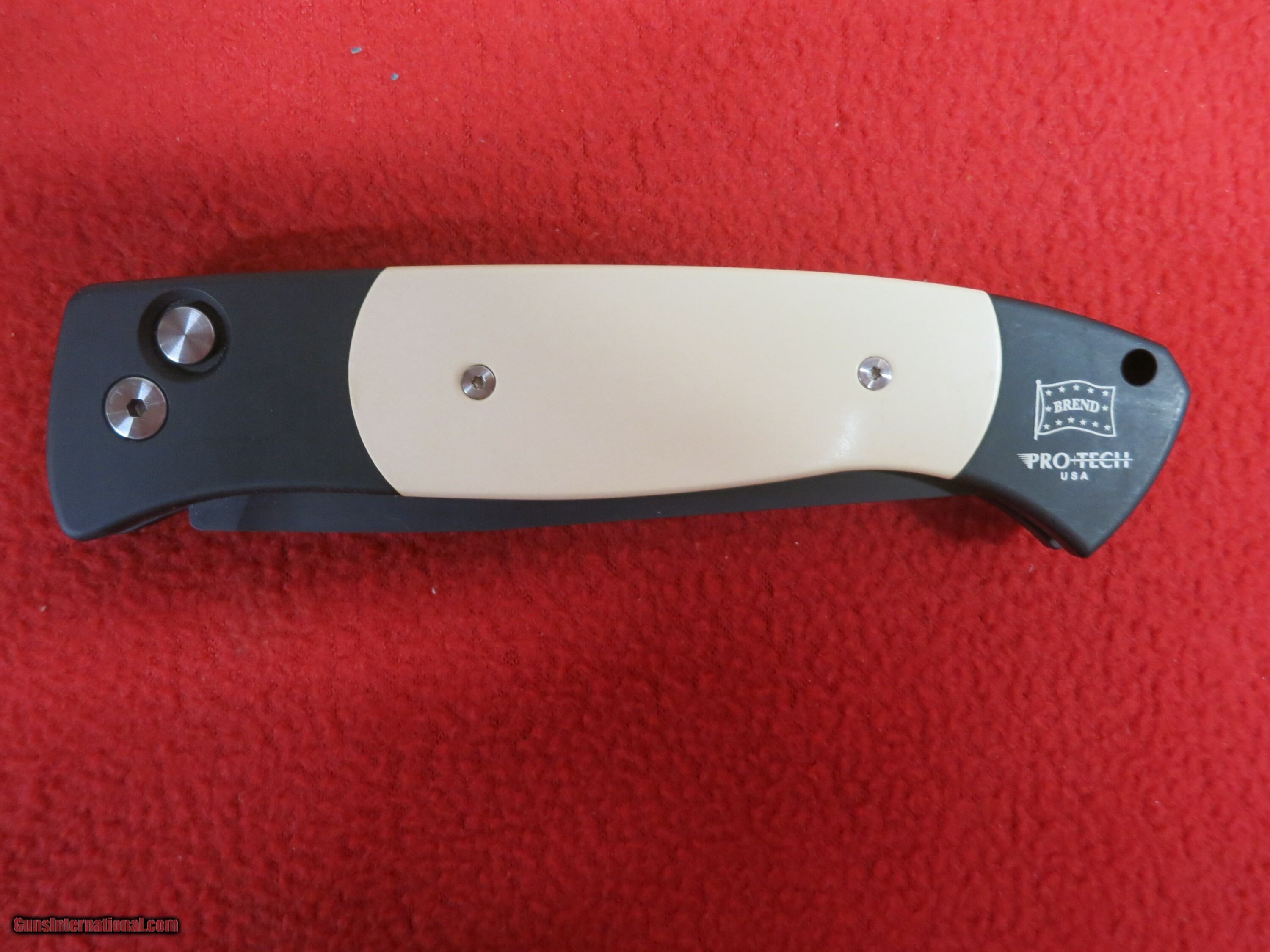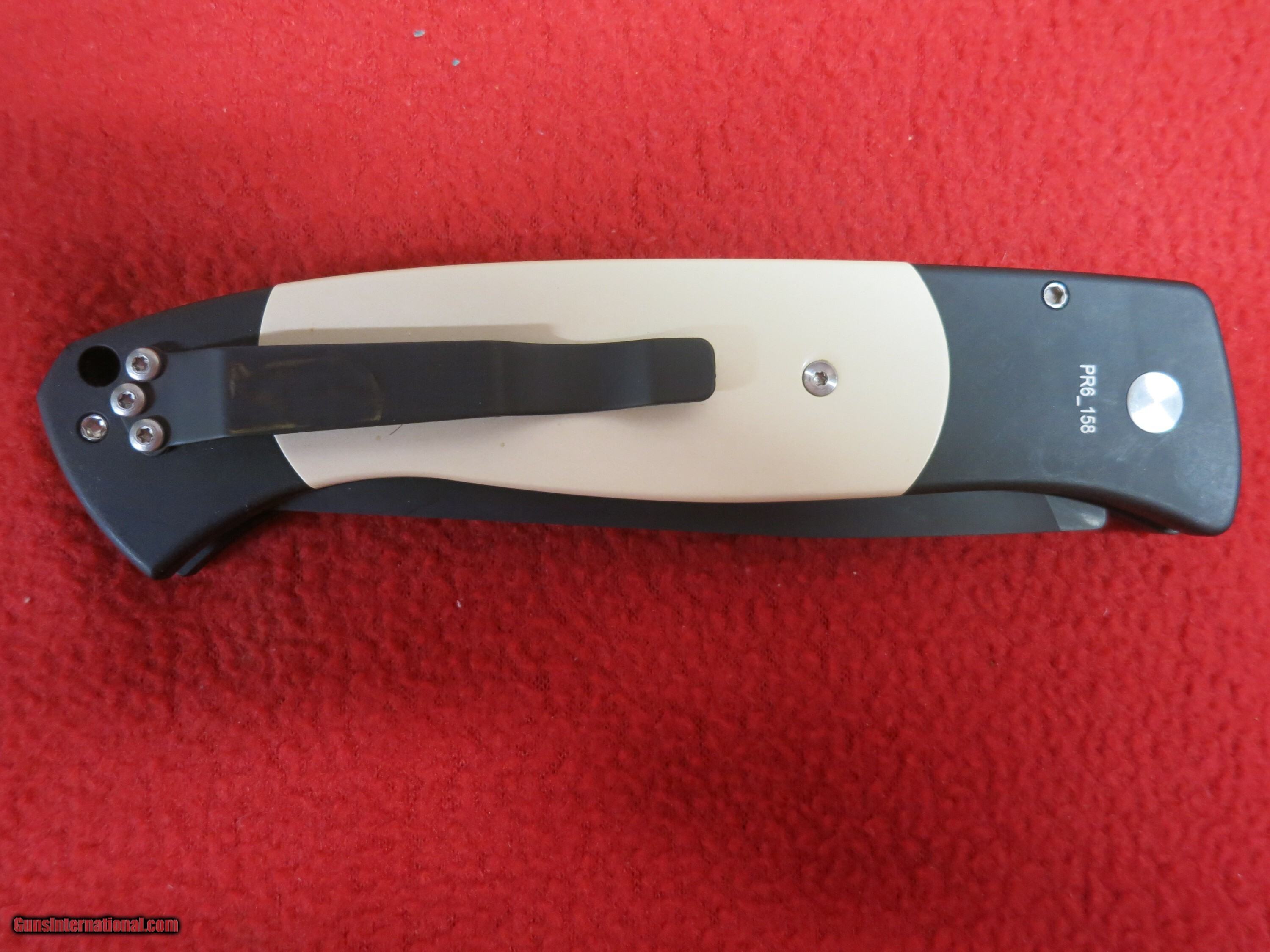 Description: PRO-TECH BREND AUTO # 1 MODEL 1152. NIB. TUXEDO BLACK HANDLE WITH IVORY MICARTA INLAYS. HANDLE MEASURES 6.00." BLADE IS 4.625" LONG WITH PLAIN CUTTING EDGE & CLIP POINT. OVERALL LENGTH IS 10.625." OVER ALL LENGTH IS 10.625." WT. IS 5.68 OZ. HAS POCKET CLIP FOR EASY CARRING & A NICE BELT HOLSTER. AUTOMATIC PUSH BUTTON. THIS IS ONE OF THE FASTEST AUTOS ON THE MARKET & A GREAT TACTICAL KNIFE. DESIGNED BY WALTER BREND. ONLY $285.00 SHIPPED TO YOU. CALL OR E-MAIL WITH QUESTIONS; Price: $285.00 Contact Seller |