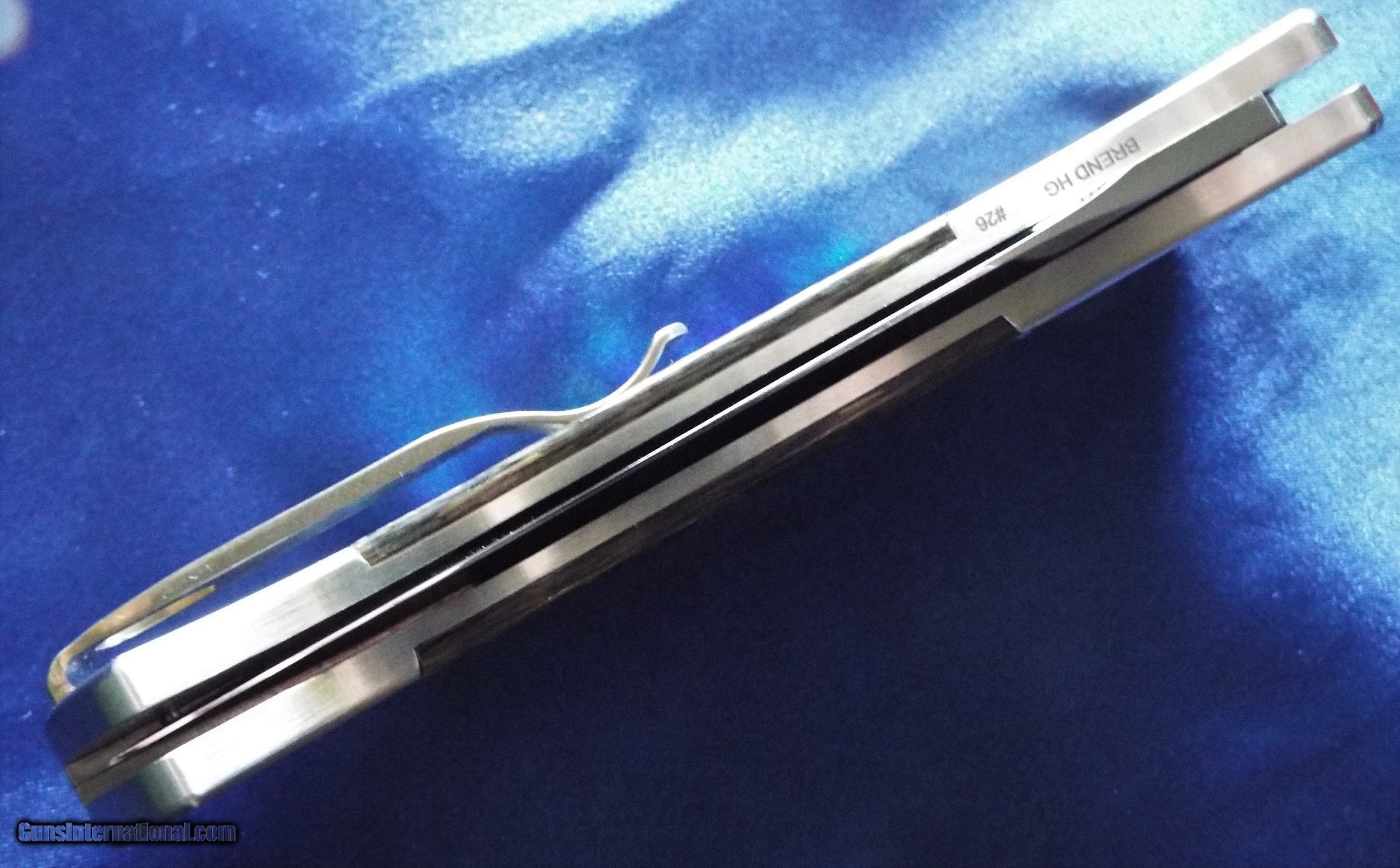 Description: Pro-Tech Medium Brend Auto #3 Custom 416 STAINLESS STEEL with presentation grade Paua ABALONE Inlay~ Walter Brend Hand Ground Mirror Polish Blade The Brend Auto series from Pro-Tech features a phenomenal Walter Brend design brought together with superb Pro-Tech mechanics and execution. . Includes tip up carry pocket clip and lanyard hole. Walter Brend and Pro-Tech logos are engraved on the front of the handle. This custom model features a hand satin finished 416 stainless steel frame with gorgeous presentation grade paua abalone inlays front & back. The rear of frame is etched with the Pro-Tech and Brend logos. Hand ground and mirror polished 154-CM stainless steel blade by the legend Walter Brend himself. Matching abalone inlaid push button. Custom 3D machined titanium pocket clip. The inside of the frame is etched BREND HG #26. Beautiful high class collectors automatic pocket knife by Pro-Tech and Walter Brend! Brand new in Pro-Tech wood presentation display box. Country of Origin: California, USA Date of Origin: June 2019 Condition: Brand New Blade Material: 154-CM Stainless Steel Handle Material: 416 Stainless Steel, Abalone,Blade Style: Clip Point Blade Finish: Walter Brend Mirror Polish Edge Type: Standard Model/Pattern: Medium Brend Auto #3 Knife Type: Automatic Folder Lock Type: Button Lock Blade Length: 3-3/4" Handle Length: 5" Overall Length: 8-3/4" Weight: 7.5 oz NIB (MSRP $3500) ABSOLUTELY STUNNING ~ PICTURES DO NOT DO THIS BEAUTY JUSTICE! (Hard to photograph do to the highly reflective nature of the knife)SHIPPING is $12 (extra if insurance is required) NO INTERNATIONAL SHIPPING!.DEALER ITEM ~ NEVER SOLD~NEVER CARRIED~ NEVER SHARPENED For purchase please call Erica / Self Defense Inc. 772-349-0334 (Florida) SOLD |