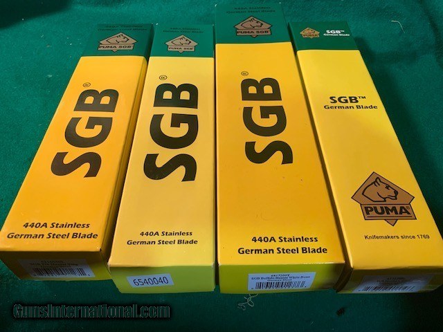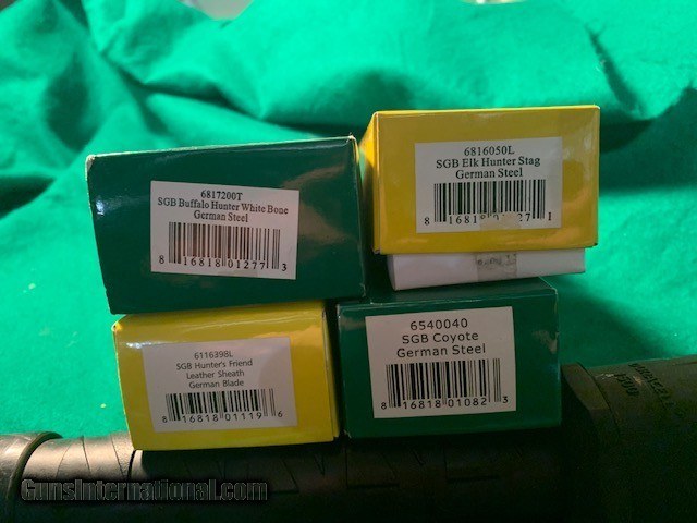 Description: PUMA knives - Brand new in their boxes. 1-Elk Hunter Stag,2- Coyote Stag, 3-Buffalo Hunter white bone,4- Hunter Friend. $300.00 FIRM plus shipping. For more info call Rick at 973-478-5066. SOLD |