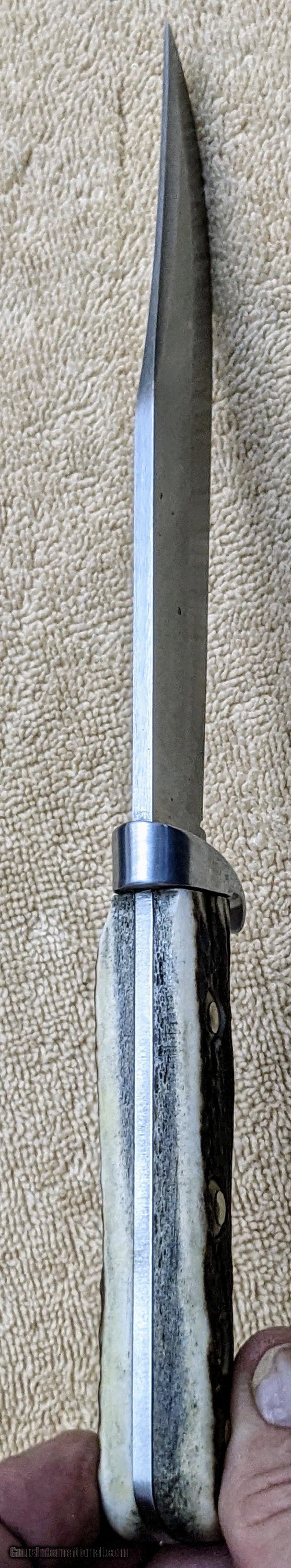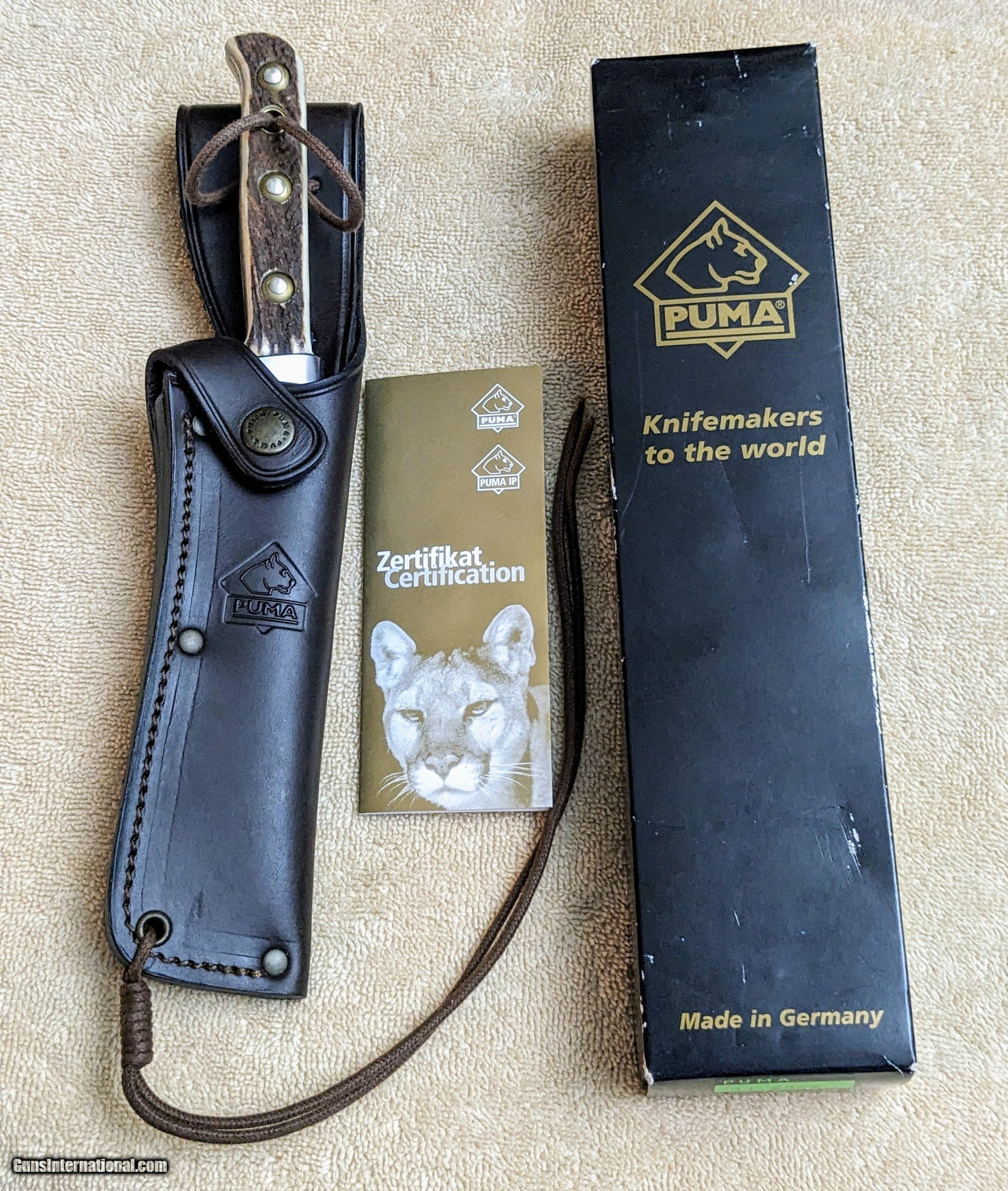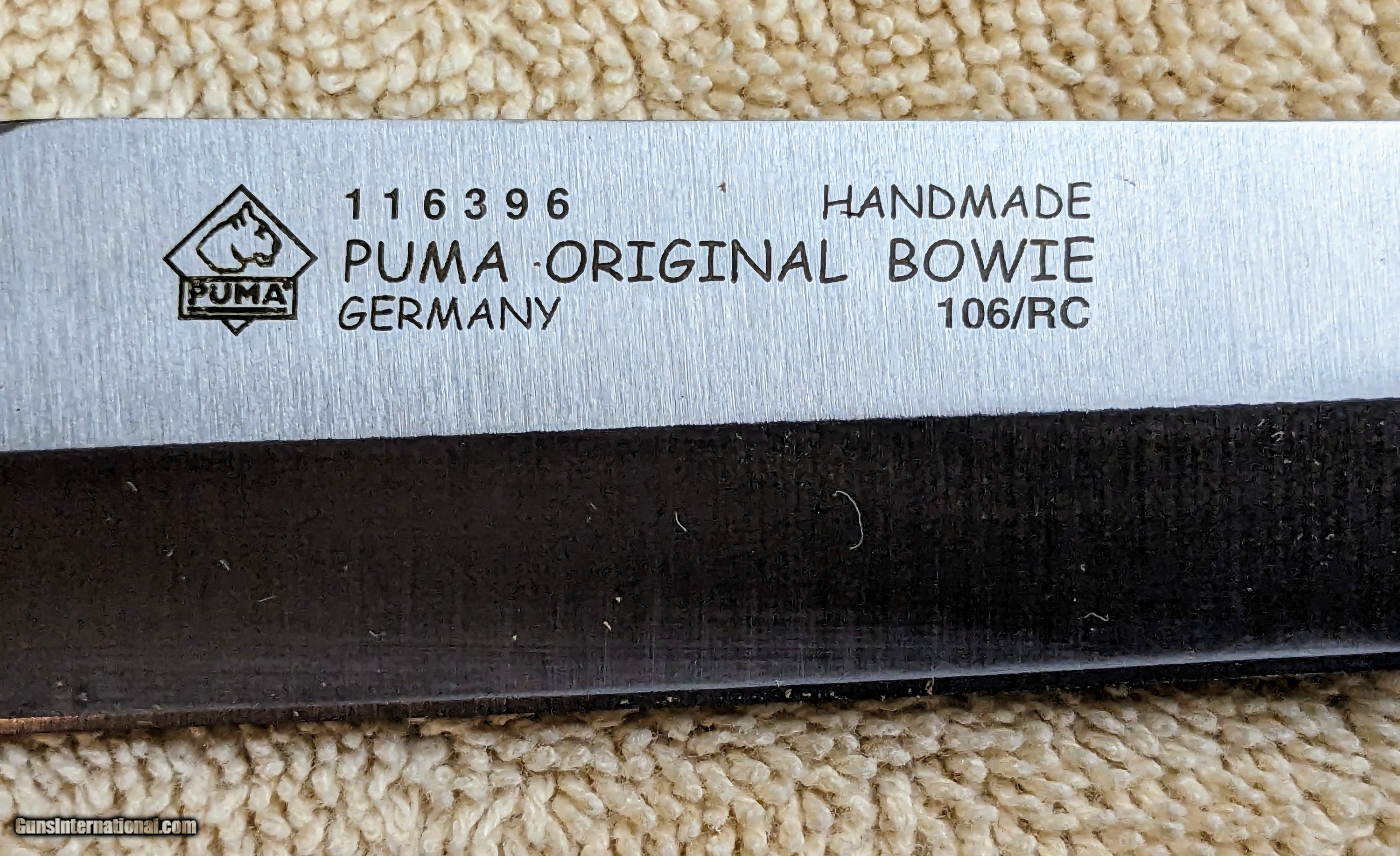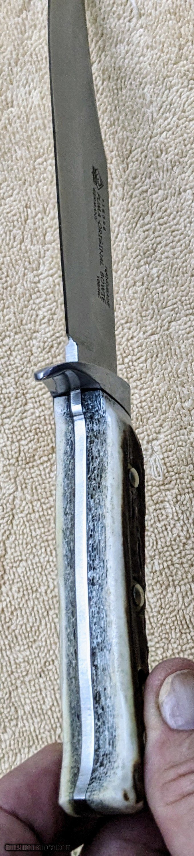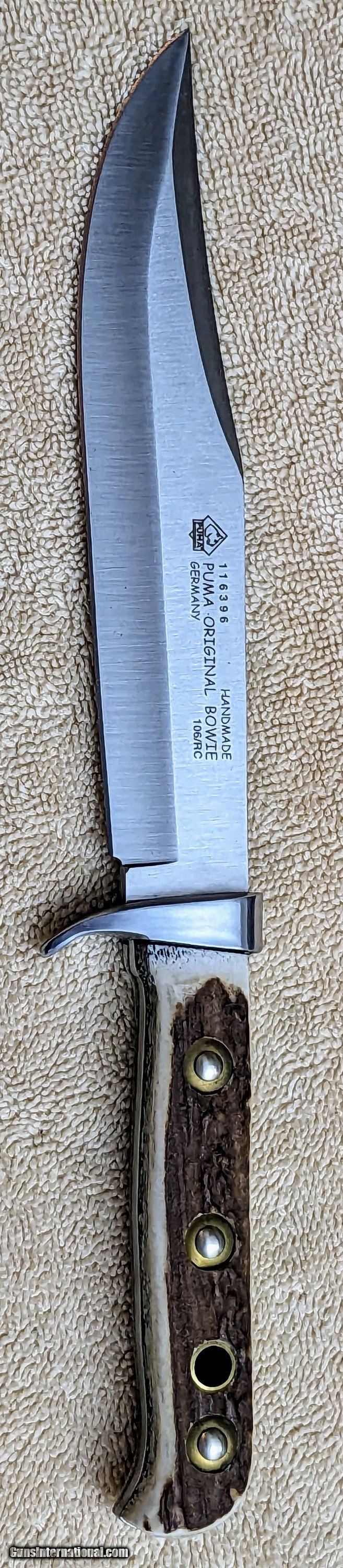 Description: New in box Puma Original Bowie with Certication pamplet. 6.5 inch blade 11 inches overall, stag grip. Price incudes shipping, no cc fees! SOLD |