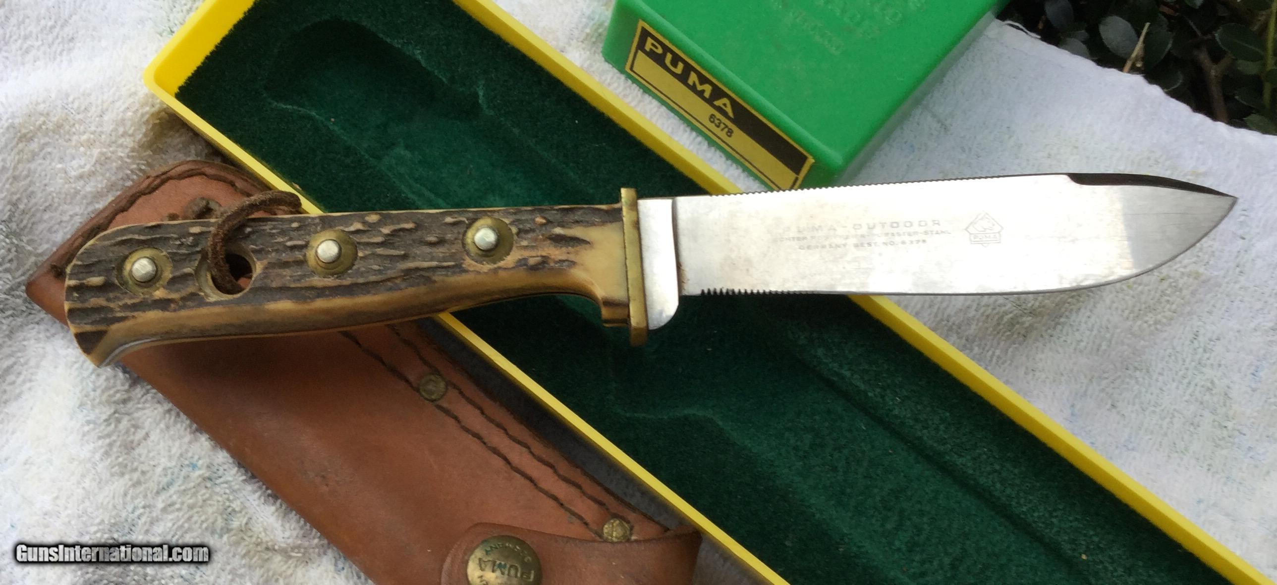 lightly used puma Outdoor with box and sheath from the 80's. Look at pics, ask questions. Shipping is 12.00.