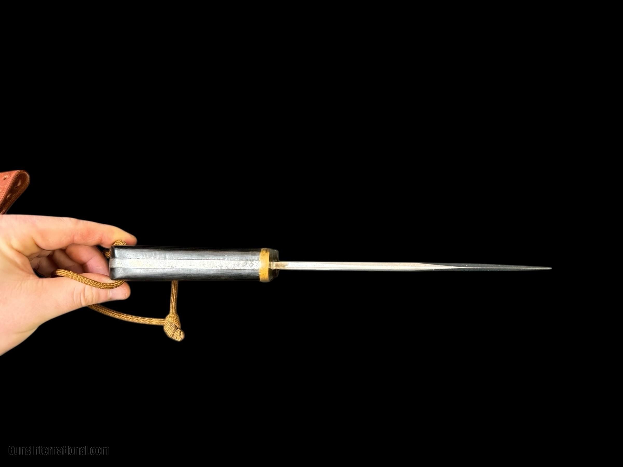 Description: 1967 Randall Model 14 Attack carried by Silver Star recipient Neil L Ferrell in Vietnam. Purchased from his estate in the town he grew up in. Excellent condition knife with stone included and modern Randall sheath. Knife was made in Solingen Germany and special ordered by Neil L Ferrell before he went to Vietnam. There is a bridge named after him in his hometown, and this is an excerpt from an article about the man himself: ”Requesting the Division of Highways to name bridge number 44-36-14.61 (44A079) locally known as the Looneyville Bridge, carrying WV Route 36 over Pocatalico River in Roane County, the "U. S. Air Force Major Neil L. Ferrell Memorial Bridge". Whereas, United States Air Force Major Neil L. Ferrell was born on March 11, 1930, in Left Hand, the son of Harry W. Ferrell and Orva E. (Snodgrass) Ferrell; and Whereas, Major Ferrell graduated from Spencer High School with the Class of 1946, and attended Potomac State Jr. College and West Virginia University; and Whereas, Major Ferrell enlisted in the U. S. Air Force in 1951 (Korean War). He graduated from Aviation Cadet Program in 1953 as a 2nd Lieutenant and rated pilot. From 1953 to 1959 he was stationed in England and Germany. In 1959, he was selected as Combat Crew Commander in B-47 bombers in Strategic Air Command. He was stationed in Japan in 1965, advancing to Chief of Plans and Programs for the Headquarters, 39th Air Division; and Whereas, In 1966 Major Ferrell volunteered for duty in Vietnam and organized the 5th Air Commando Squadron. In 1967, he was reassigned to Military Airlift Command as Aircraft Commander in C-141 "Starlifter." In 1968, he returned to Vietnam as Forward Air Controller and was assigned to 4th Infantry Division, Pleiku, as Air Liaison Officer to the 3rd Brigade. He returned to the United States in 1969 and was assigned back to Military Airlift Command at McChord Air Force Base in Washington until his retirement in 1971; and Whereas, Major Ferrell was awarded many medals and ribbons, including The Silver Star, The Bronze Star and The Distinguished Flying Cross; and Whereas, After his retirement, Major Ferrell worked for, and retired from, Pace Pipeline as a pilot, spending two years helping build roadways in Nigeria, again as a pilot. He also worked as a private pilot; and Whereas, Major Ferrell was a well-respected member of the community. He was a member of Flat Fork Baptist Church. He served on and was active in many community and service organizations, some of which included the Roane County Solid Waste Authority; the local VFW post; the American Legion; the Board of Roane County Family Health Care and the Brushy Fork Institute; and Whereas, Major Ferrell was instrumental in establishing the Clover Roane Volunteer Fire Department, with donating time in both forming the station and the physical construction of the building. He also served as a founding firefighter and member of the department. Major Ferrell was a gun enthusiast. He taught gun safety classes and concealed weapon permit classes for those in his community and never charged for this service. He was an asset to his community and someone people turned to for advice and answers to questions. He is greatly missed by all those who knew him; and Whereas, Major Ferrell passed away at home on January 18, 2017. He is survived by his wife, Judy K. Ferrell; daughter, Sarah Ferrell Horwich and son-in-law, Mark E. Horwich of Spencer, and grand-children, Pierce and Leven Horwich of Papillion, Nebraska; and Whereas, Major Ferrell was laid to rest in the Ferrell Cemetery in Looneyville on January 21, 2017; and Whereas, Naming the Looneyville Bridge in Roane County, the "U. S. Air Force Major Neil L. Ferrell Memorial Bridge” is an appropriate recognition of his distinguished service and contributions to his country, state, community and Roane County; therefore, be it“ $3500 shipped. We accept credit/debit plus 3%, checks via priority mail or 2nd day air, and cash Price: $3,500.00 Buy Now Contact Seller |